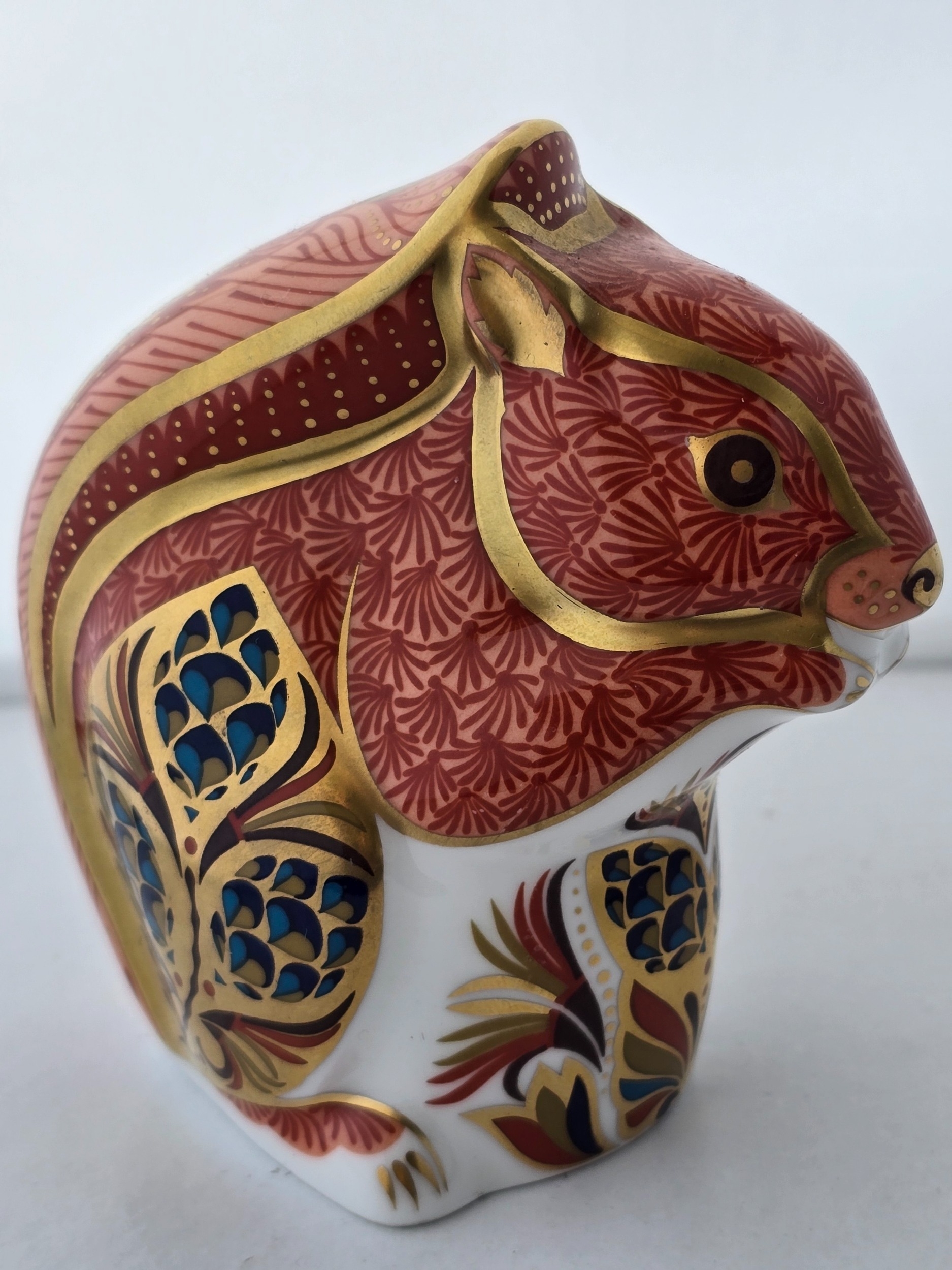 Royal Crown Derby Red Squirrel ceramic paperweight. Gold RCD stopper - First quality. Excellent condition. Boxed.