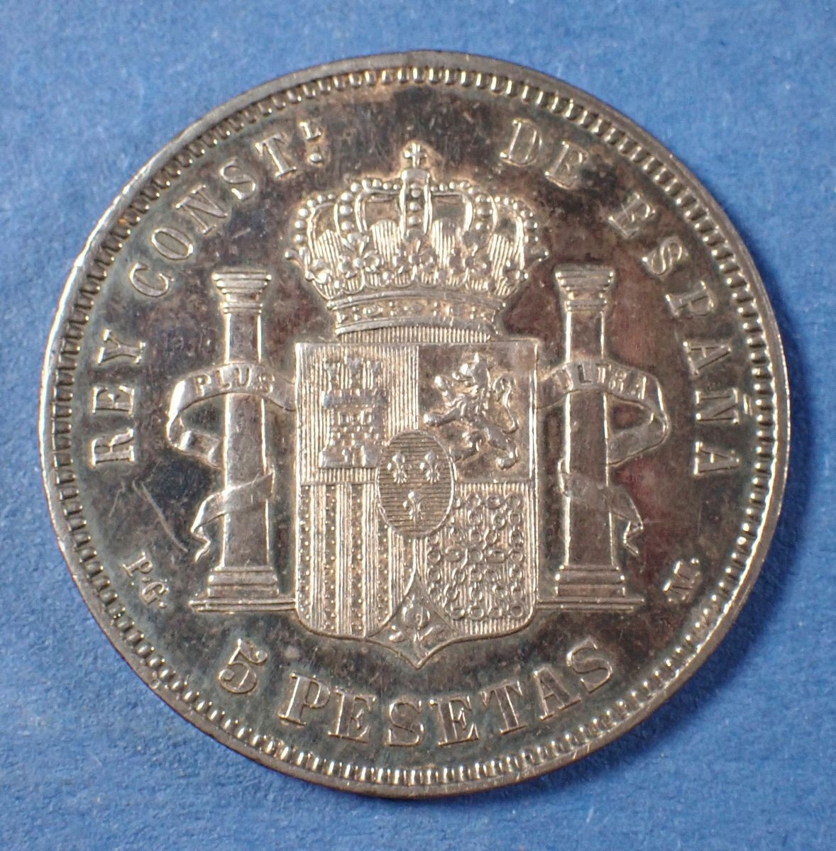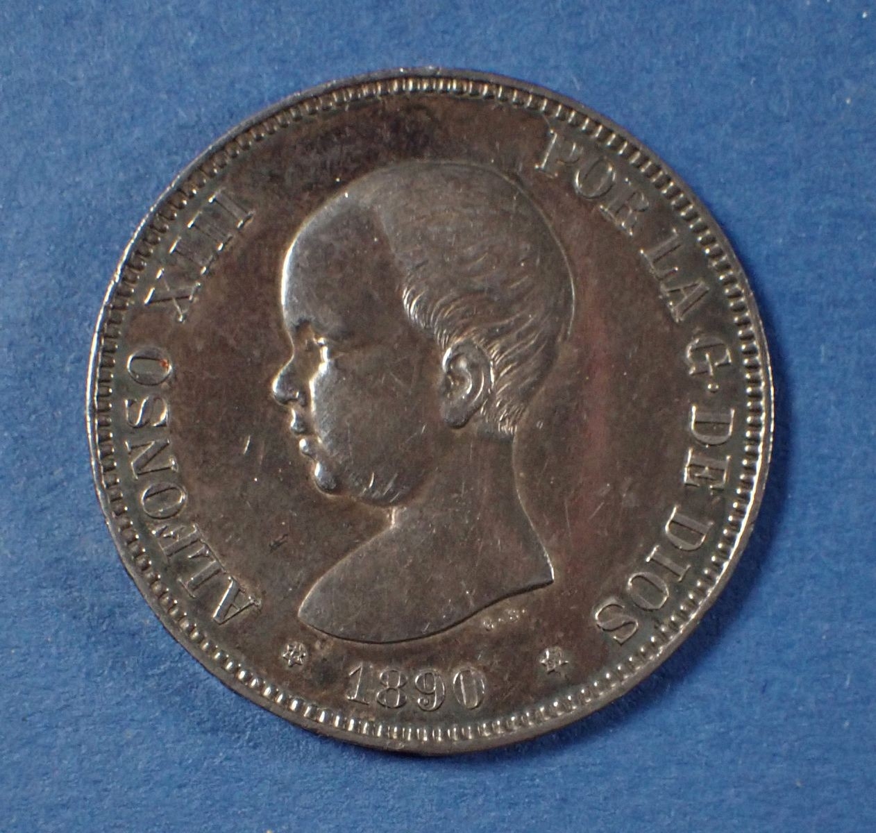 A Spanish Alfonso XIII 1890 5 pesetas .900 silver - Condition: VF - EF
