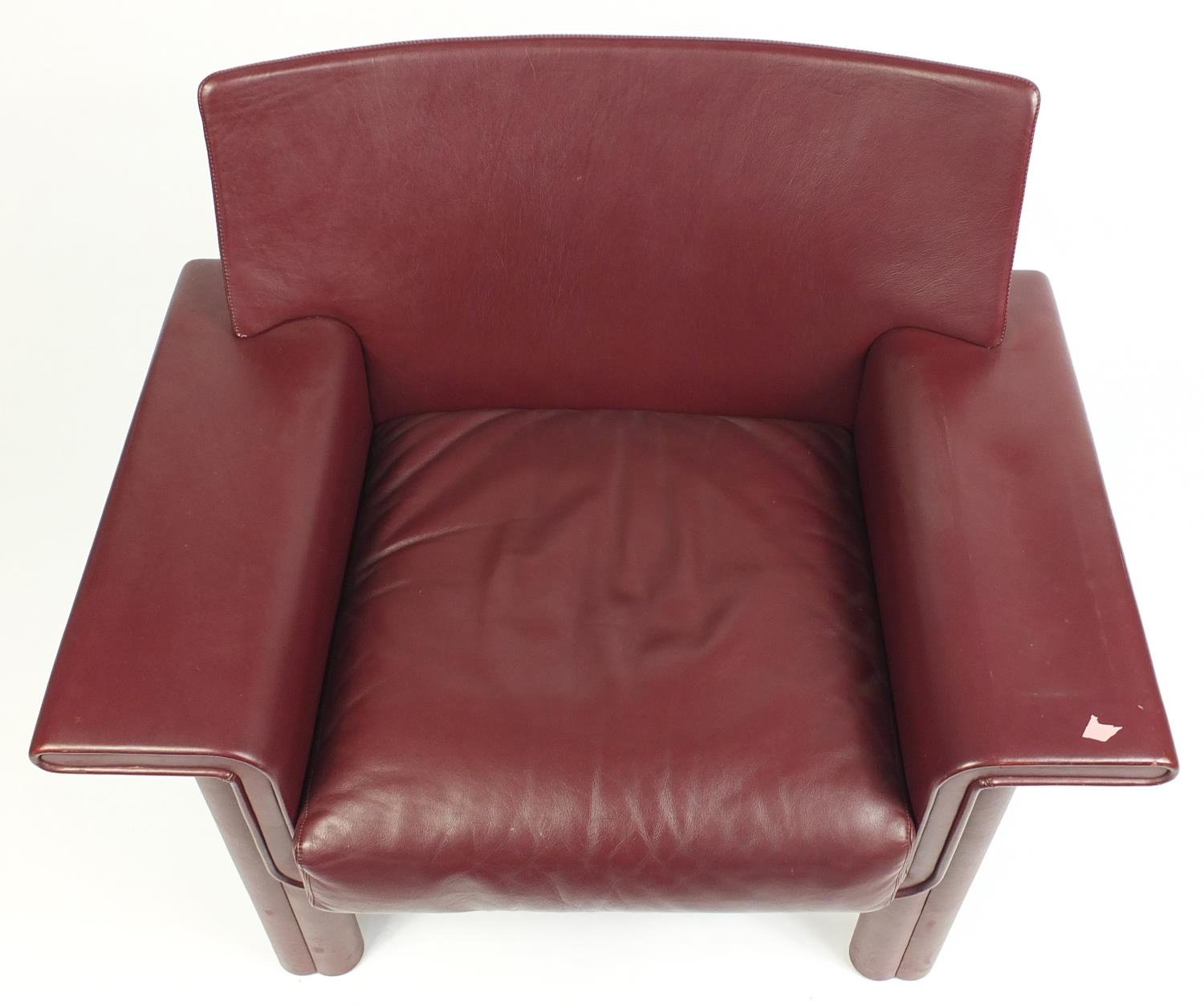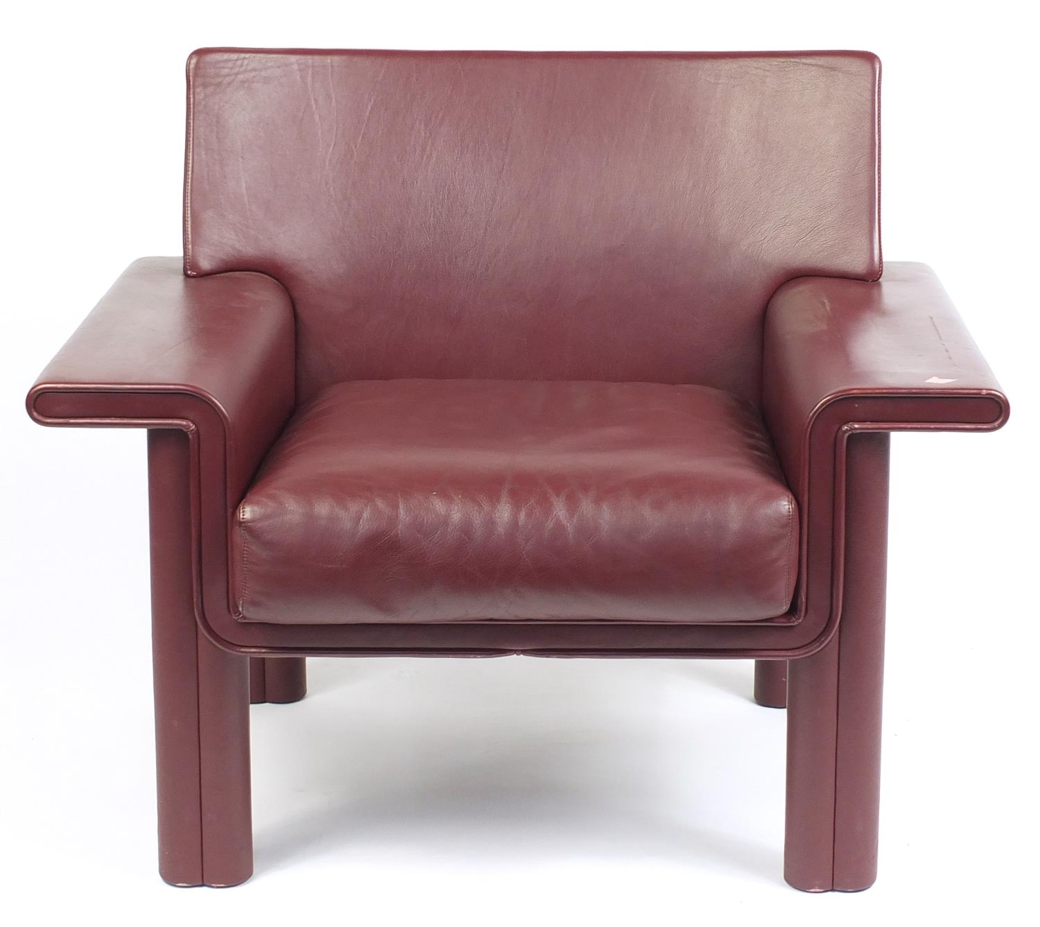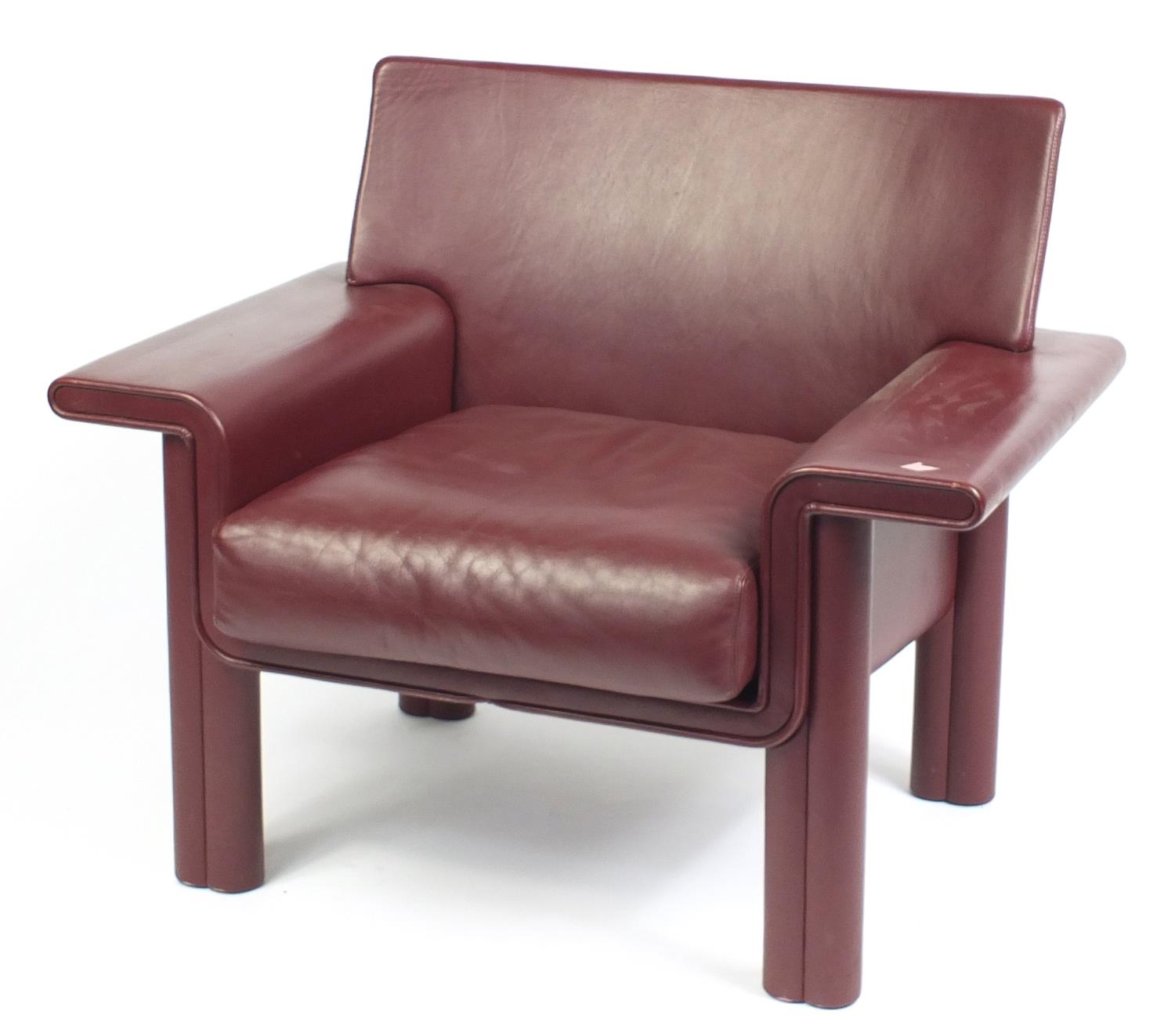 Afra and Tobia Scarpa for Meritalia, Italian burgundy leather Cornelia armchair, 77cm H x 95cm W x 60cm D, the seat height 45cm