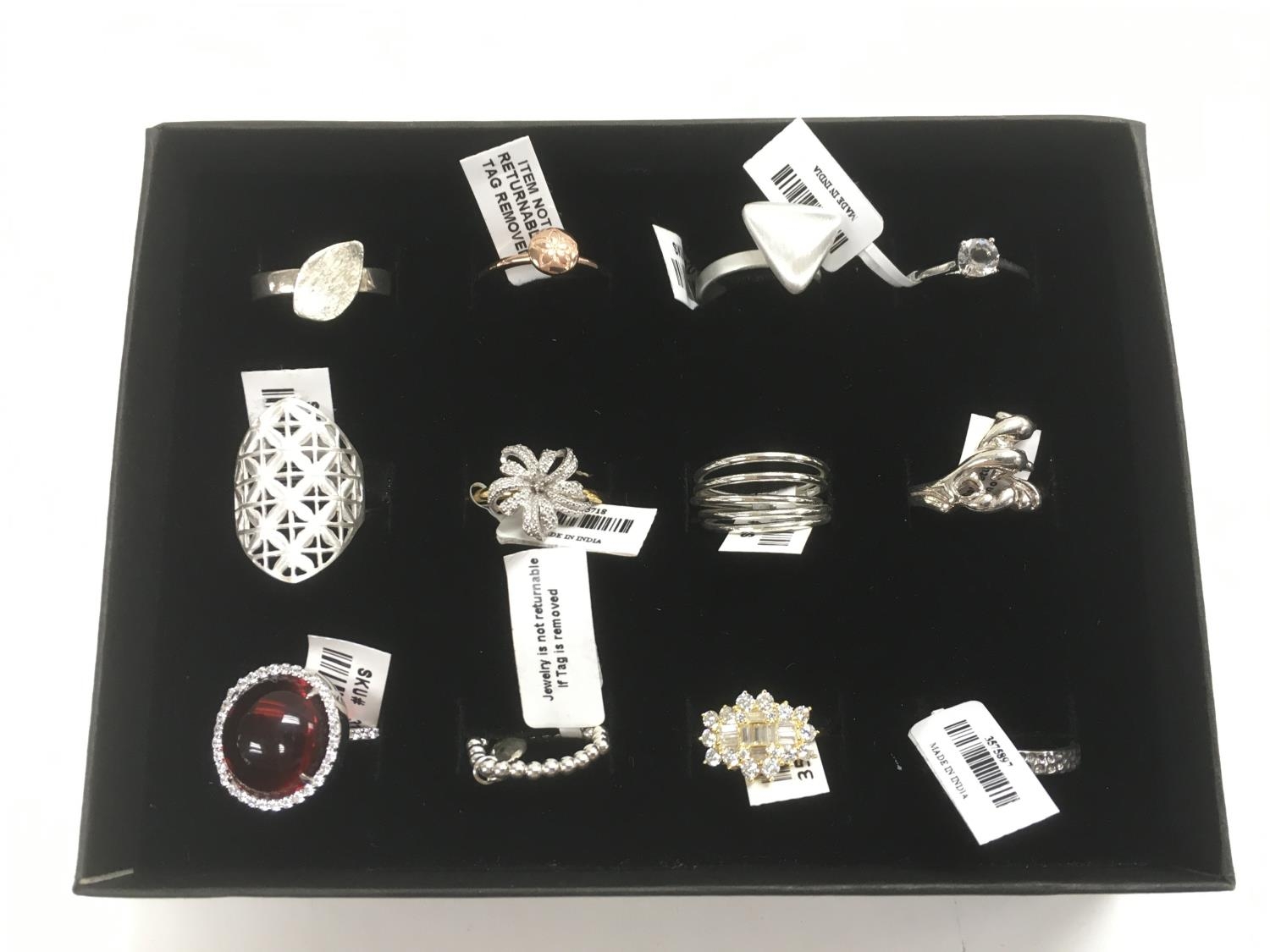 A collection of 12 new silver rings.