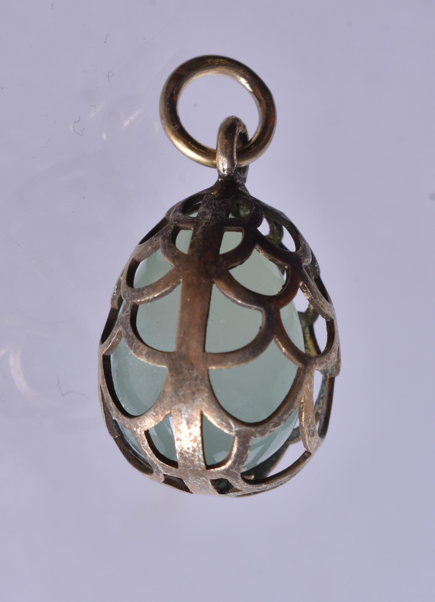 A Silver Gilt Encased Jade Pendant. Stamped 88, 2.8cm x 1.4cm, weight 5.2g