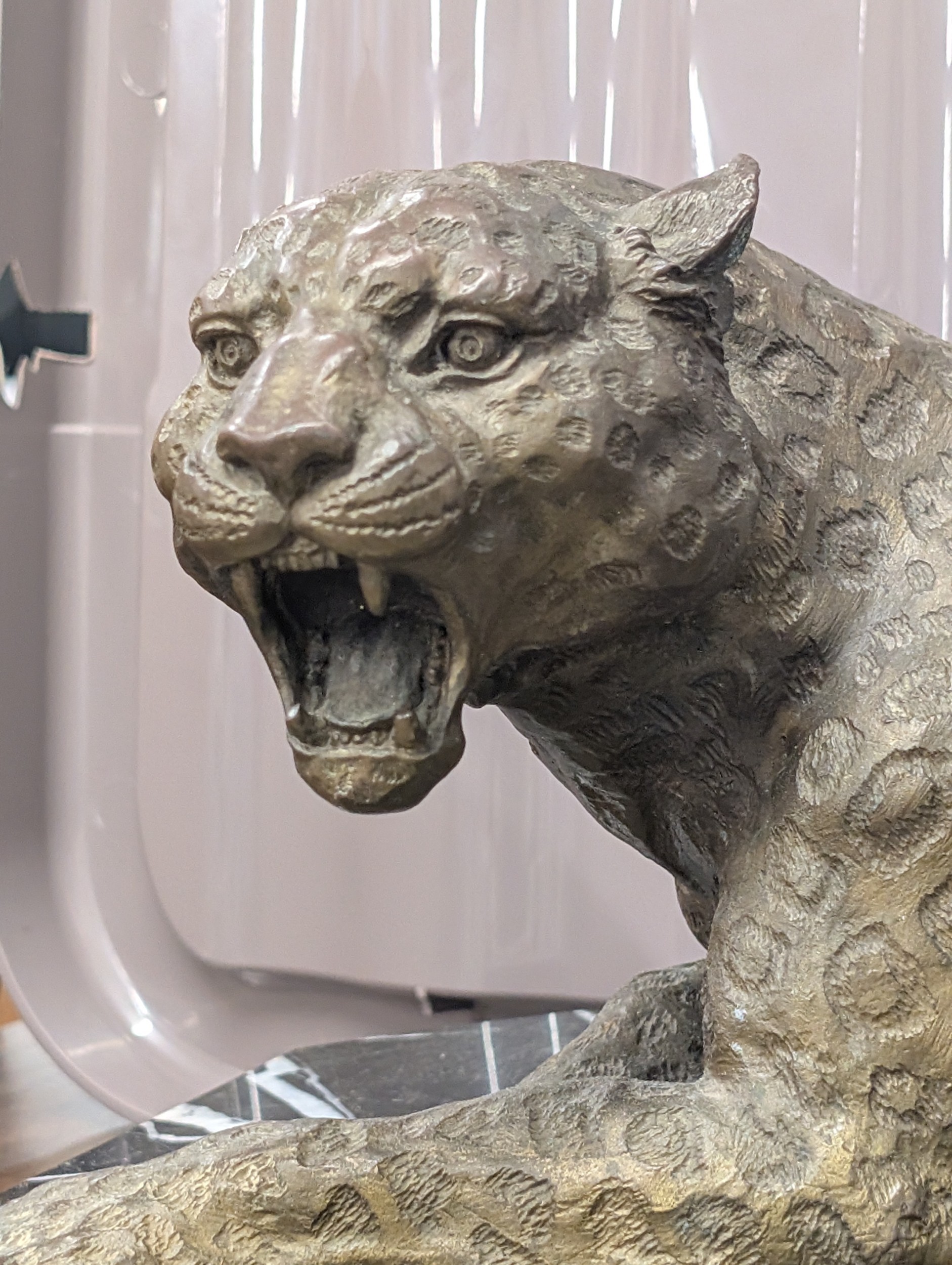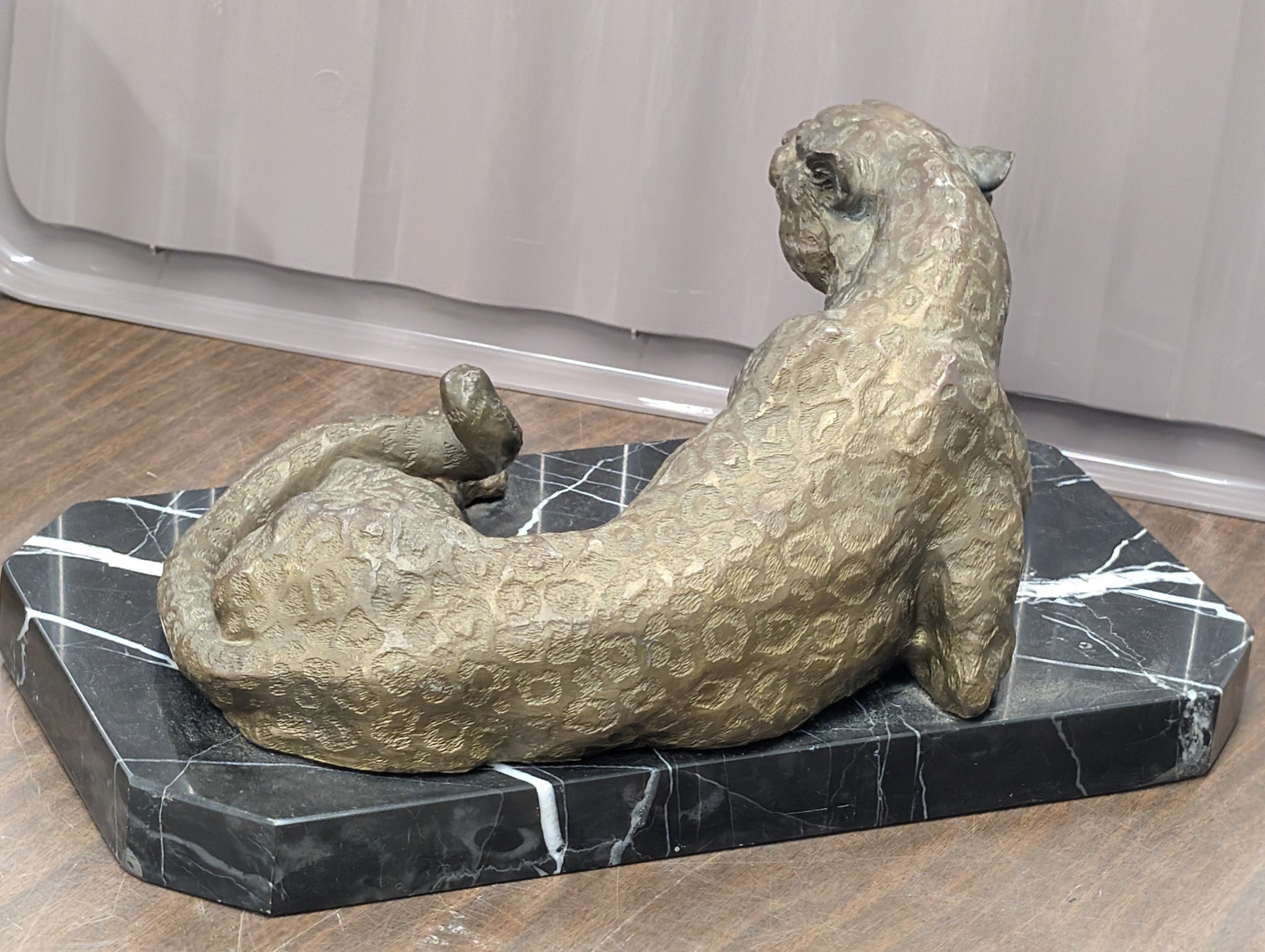 Jaguar Bronze Sculpture on 14.75 x 8" Marble Base