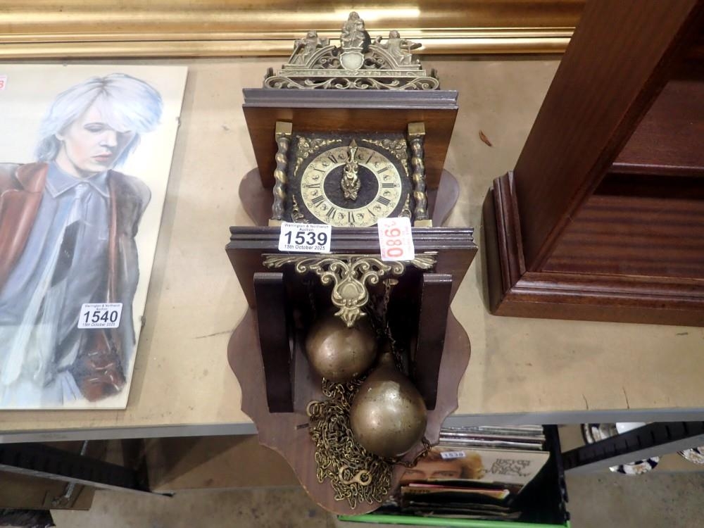 Dutch wall clock with brass weights. Not available for in-house P&P