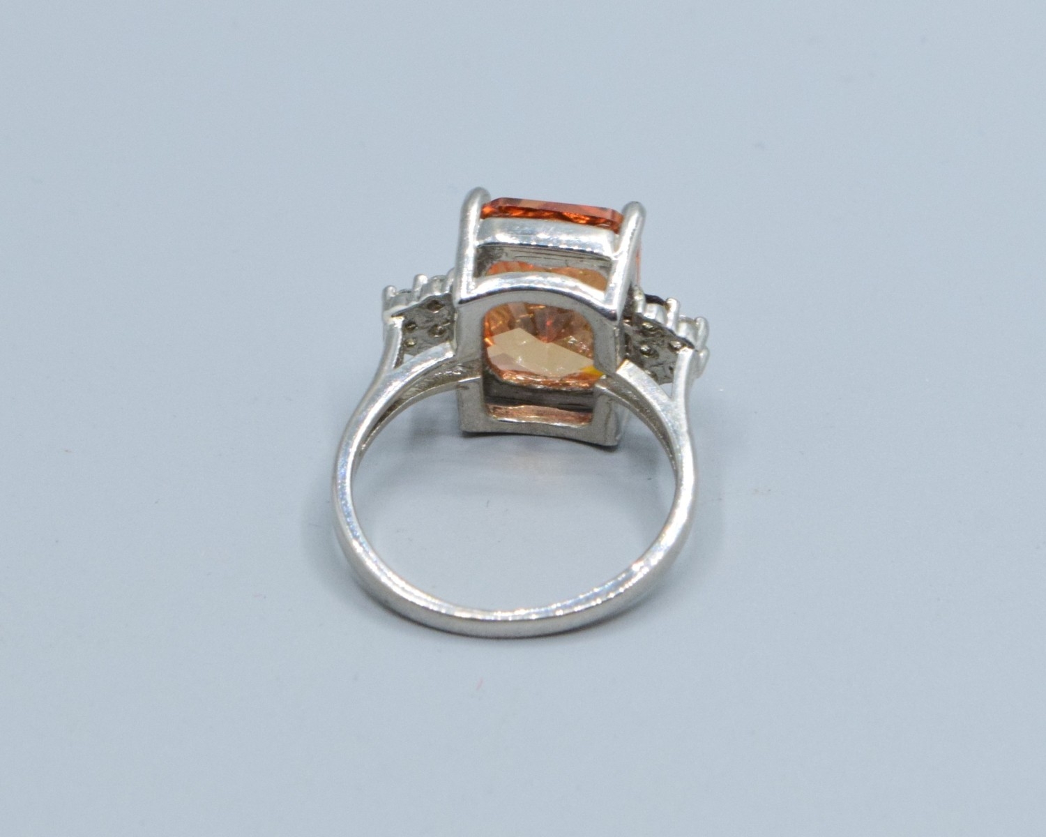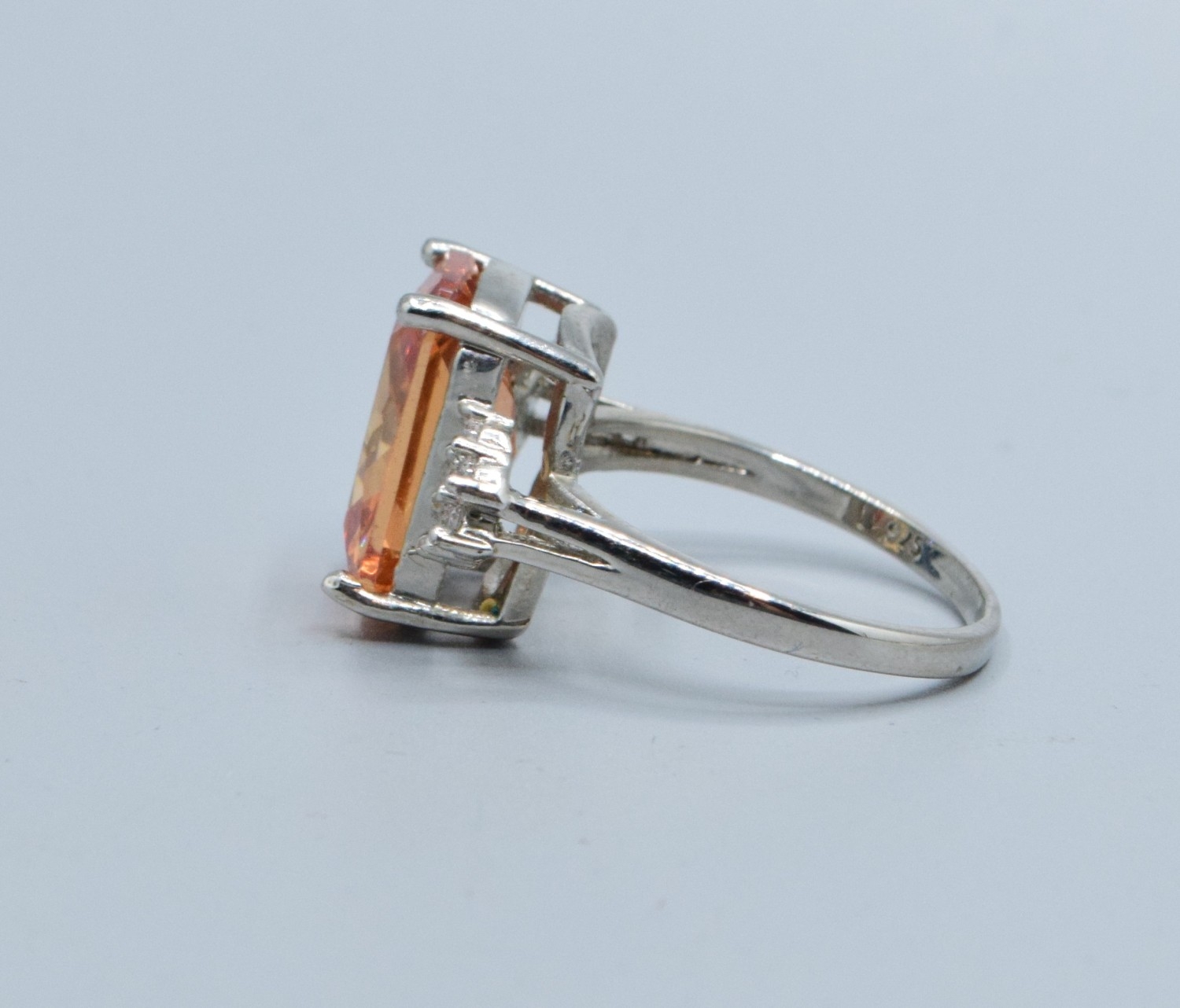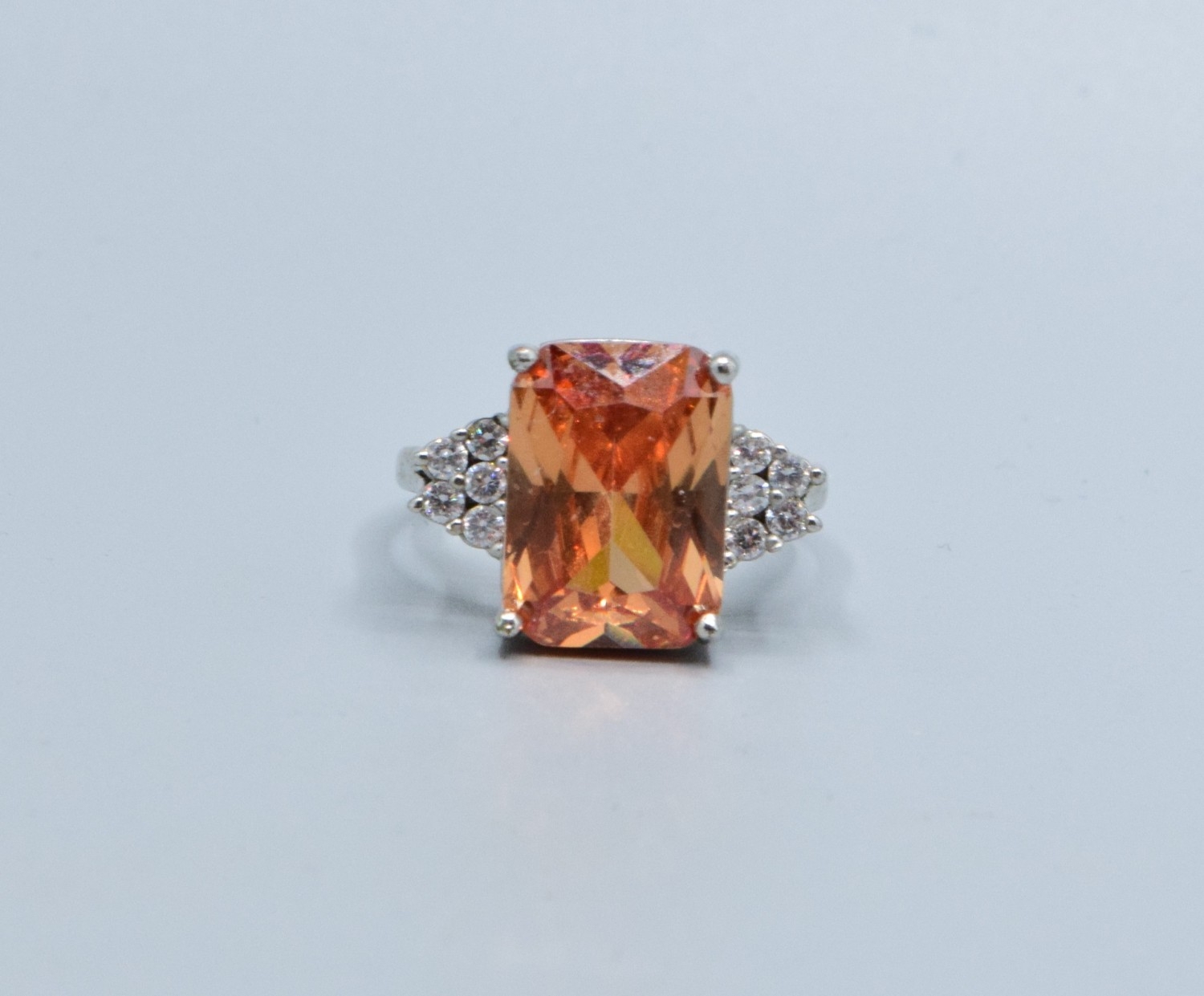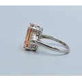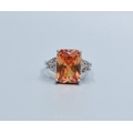 925 silver ladies Pink Topaz and clear gem stone decoration rectangular face statement ring size P