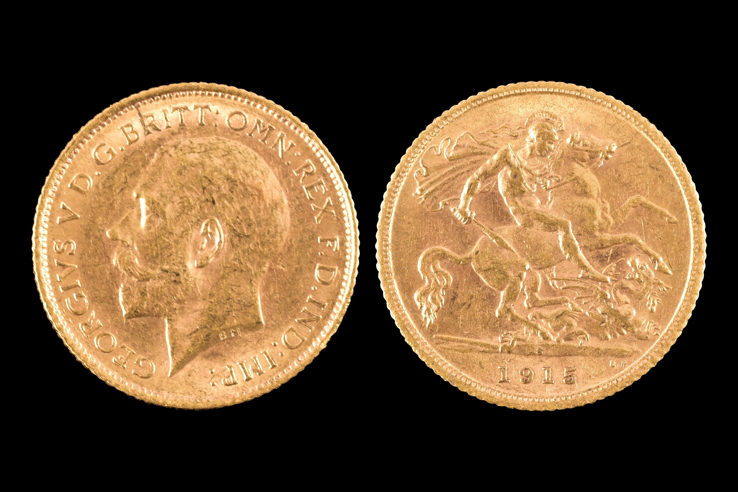 A George V 1915 gold half sovereign, 4 grams, in presentation box.