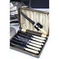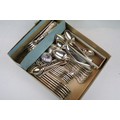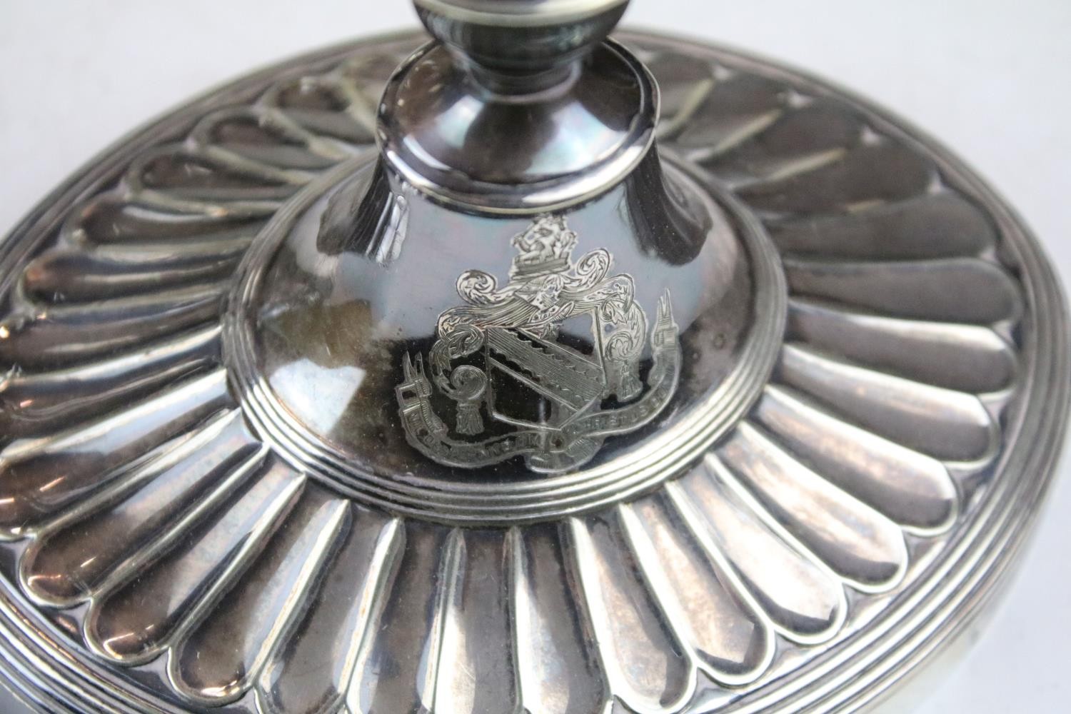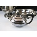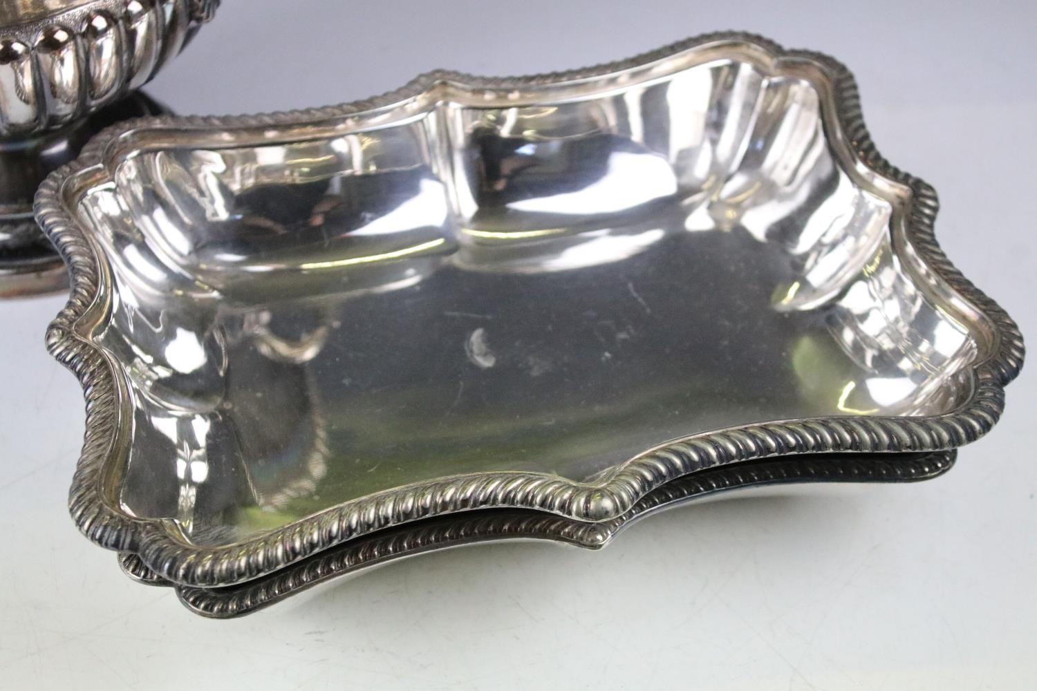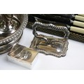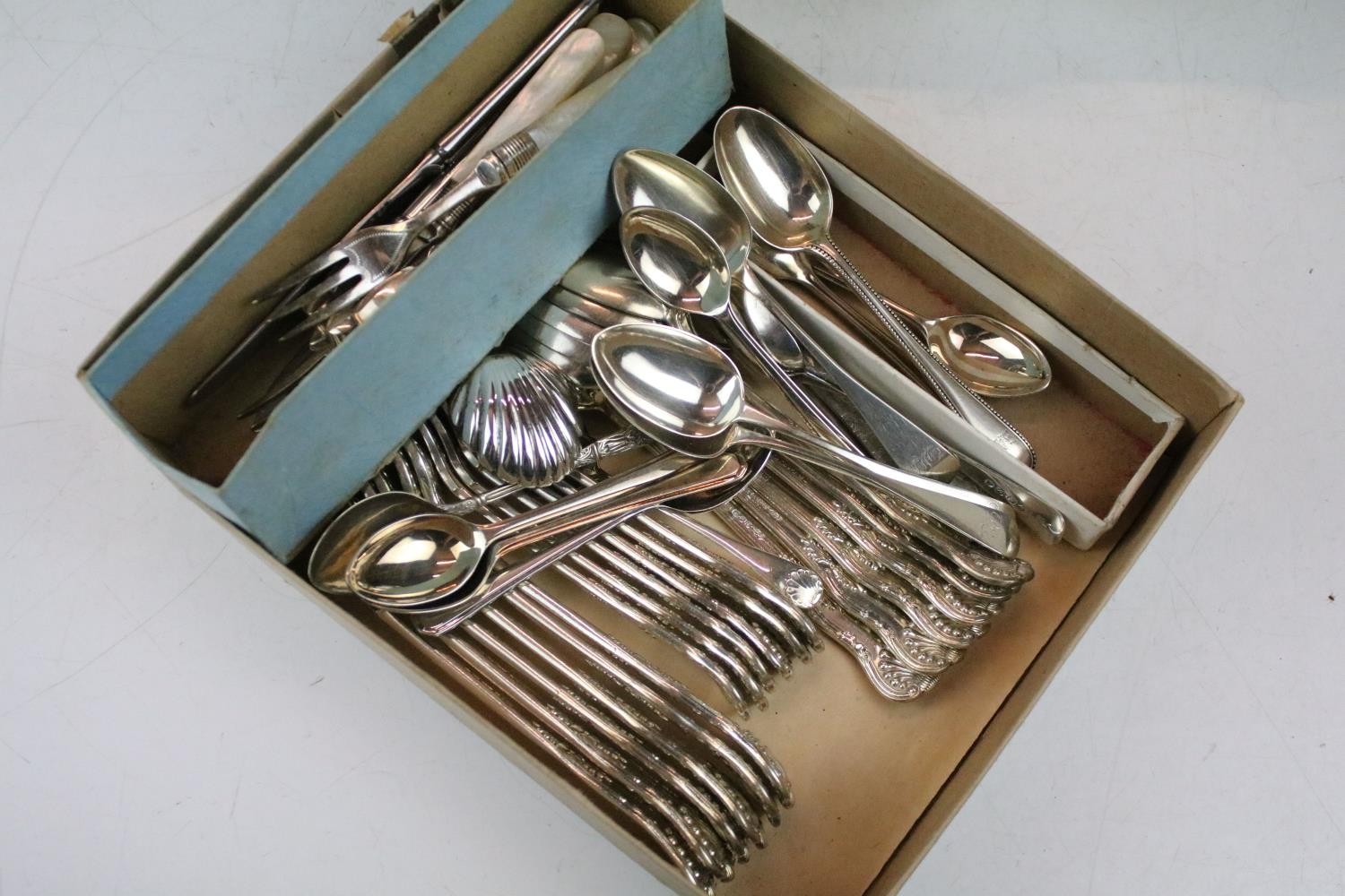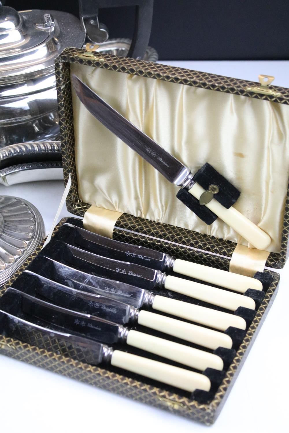 Collection of silver and silver plated items to include a Georgian silver hallmarked tea caddy spoon, three 19th Century silver hallmarked teaspoons, a silver hallmarked spill vase, small silver hallmarked box, twin handled ice bucket, pair of wine coasters, pair of candlestick holders, teapot, lidded tureen etc.