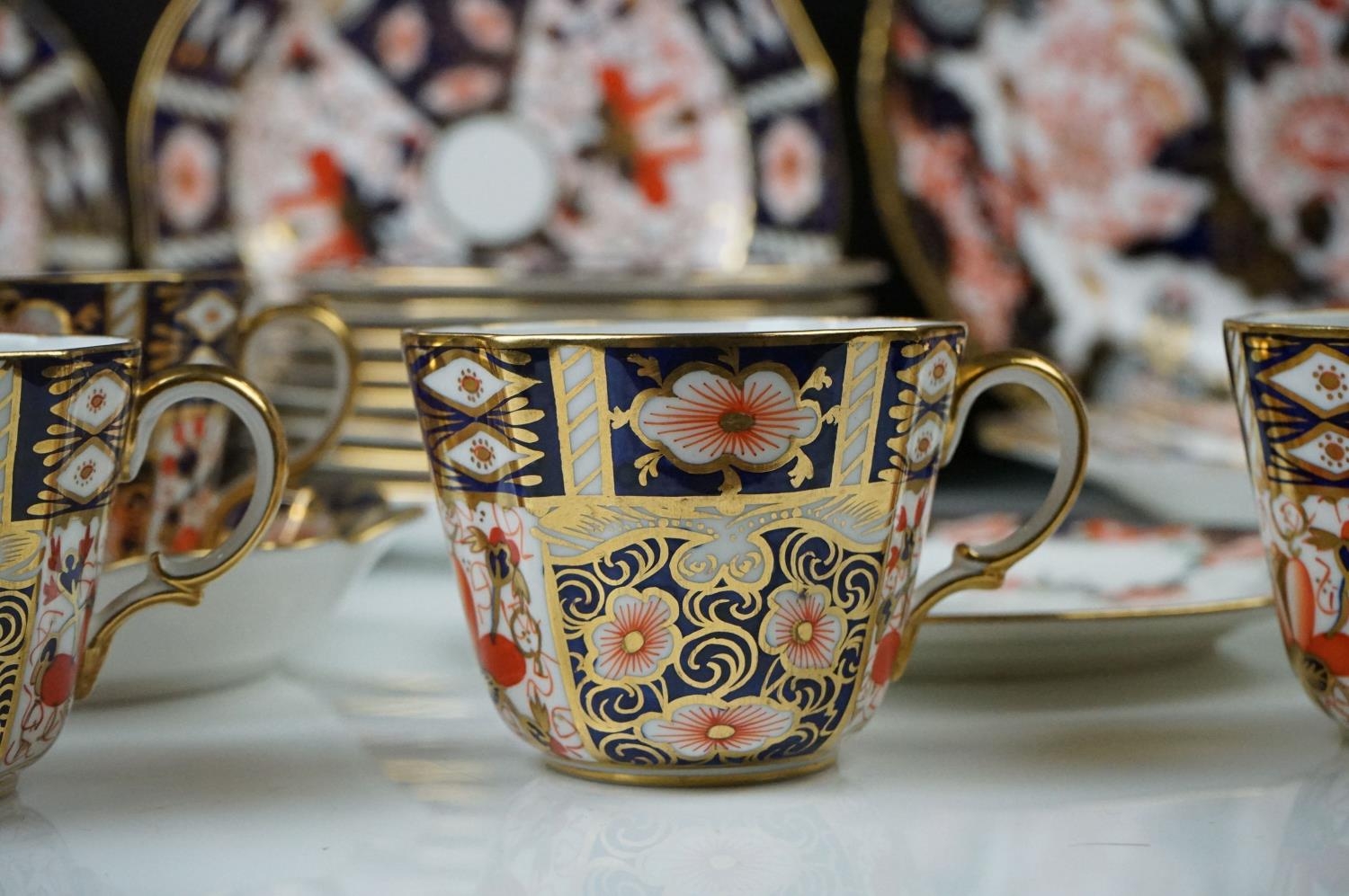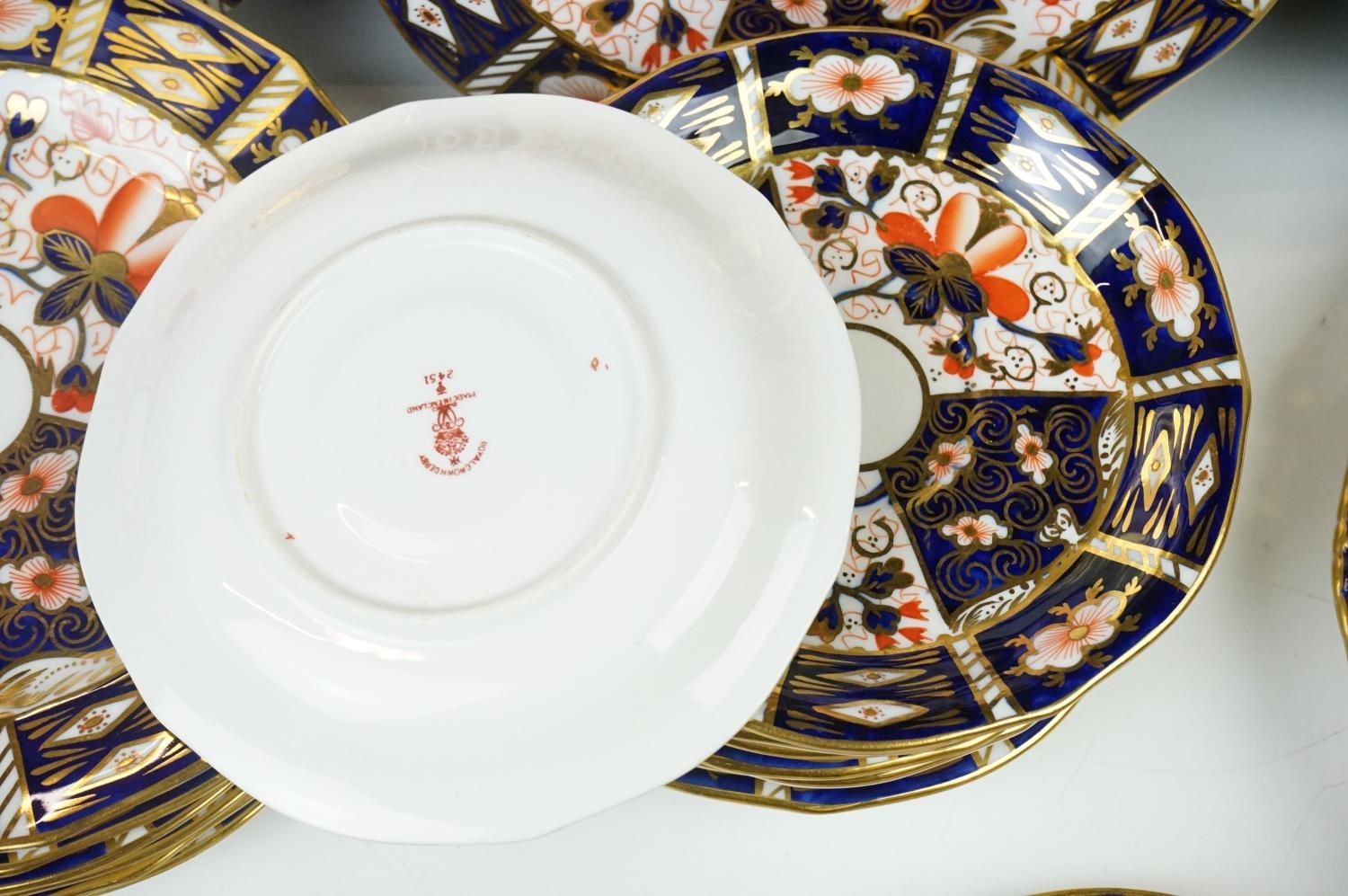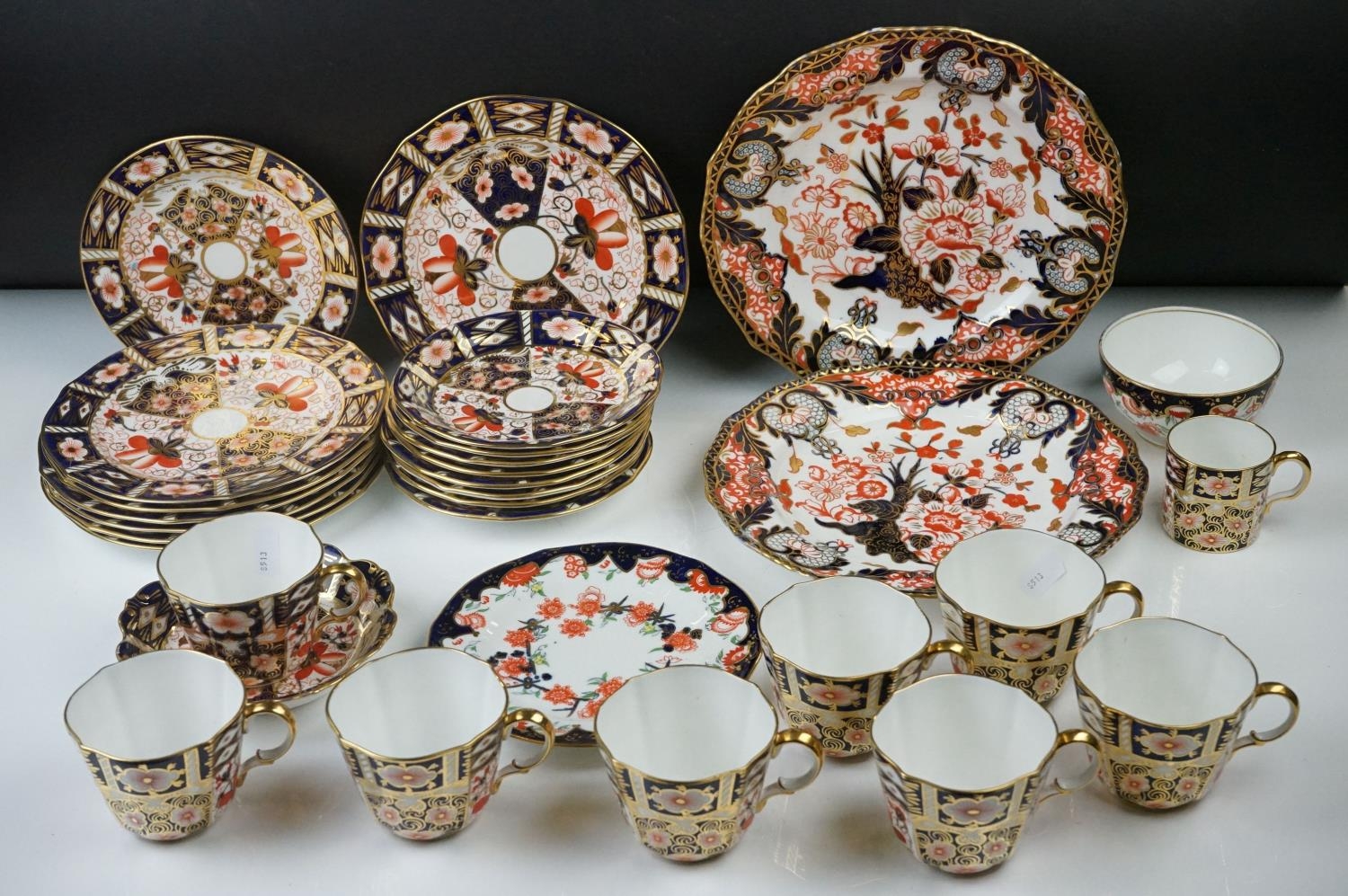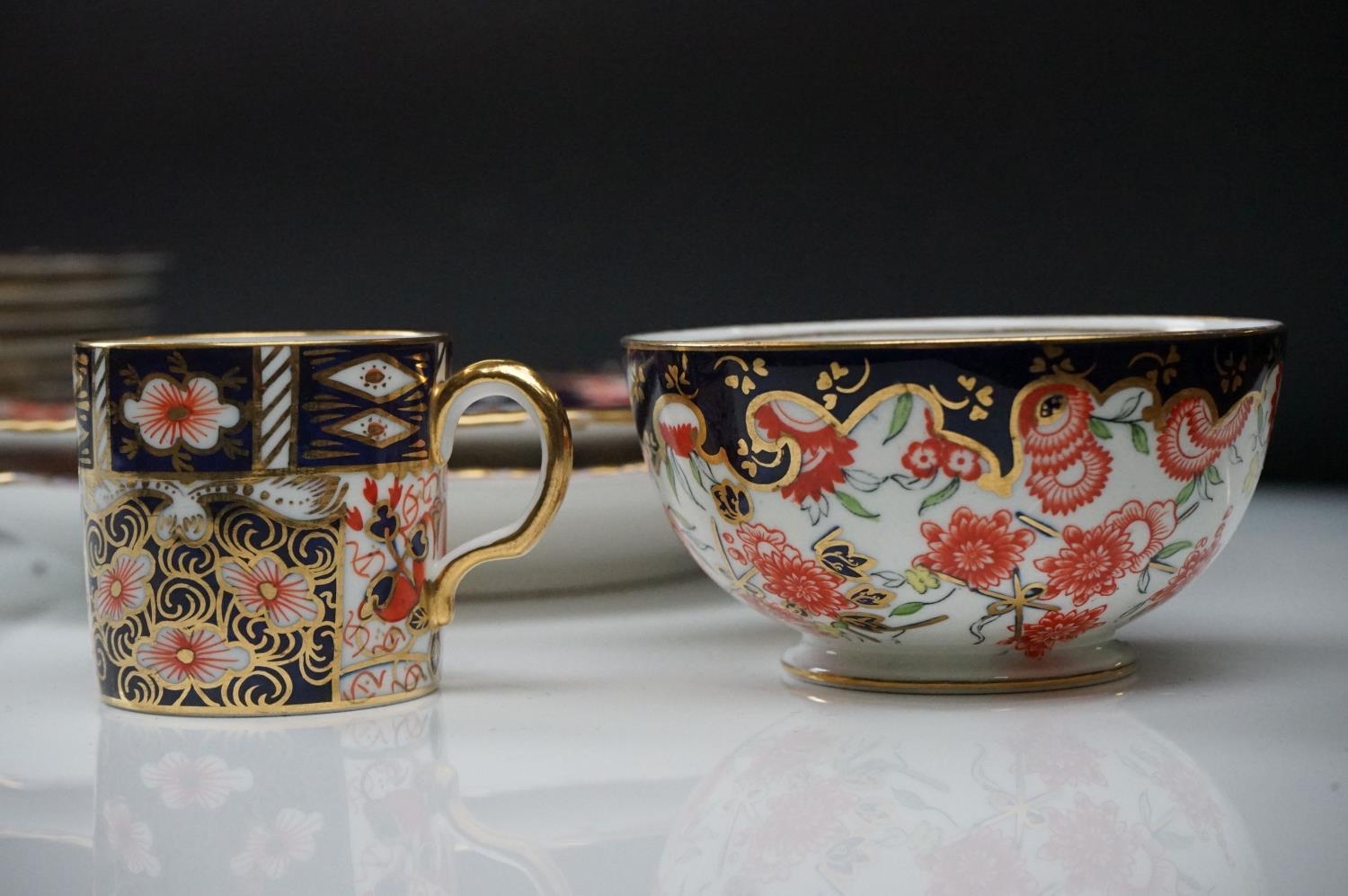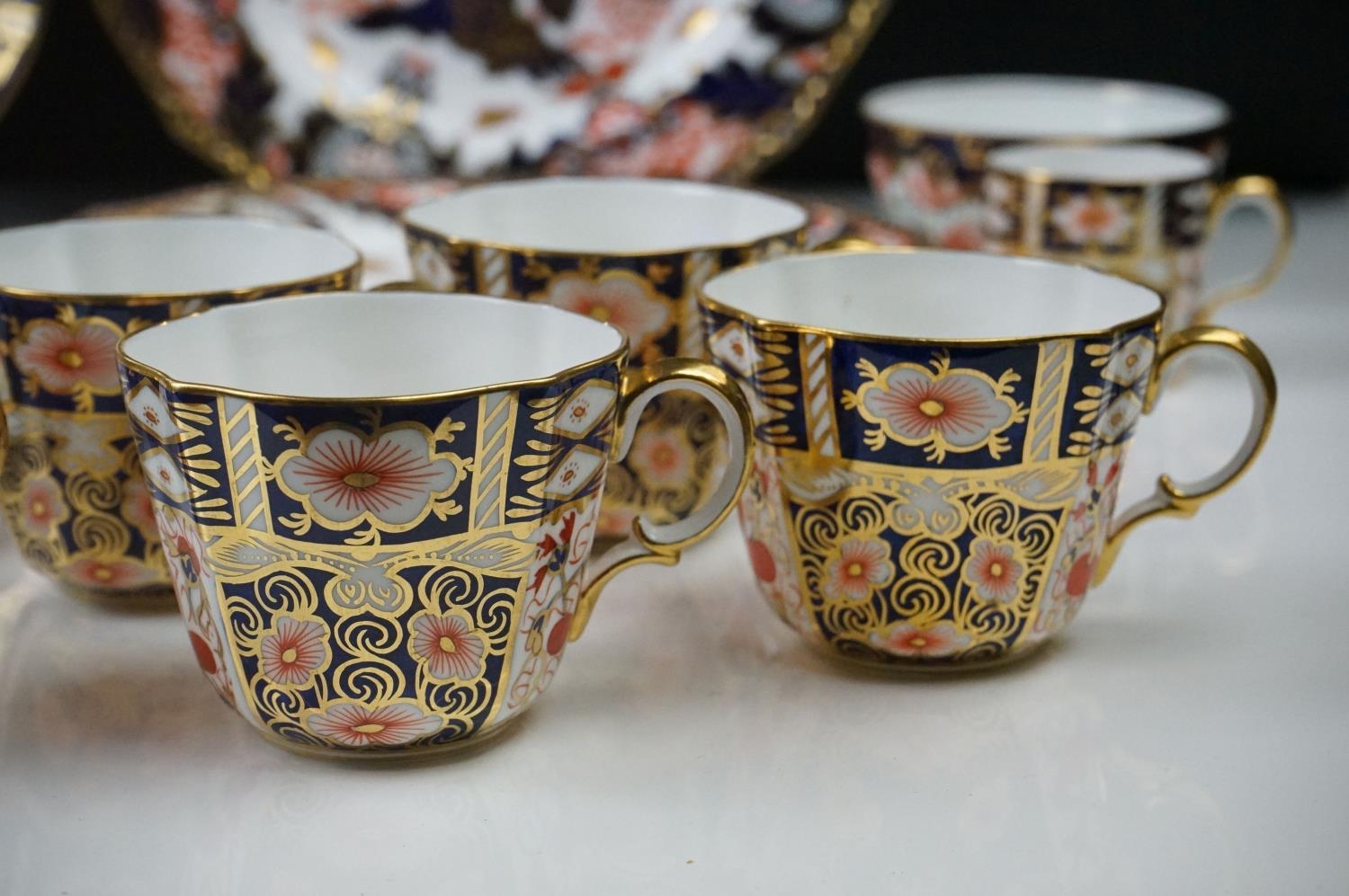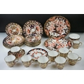 Collection of Royal Crown Derby Imari 2451 pattern Tea ware including Eight Tea Cups and Eight Saucers, one 6" tea plate, seven 7" tea plates, coffee can and a saucer plus two further Imari 9" plates and another Royal Crown Derby Plate and Sugar Bowl
