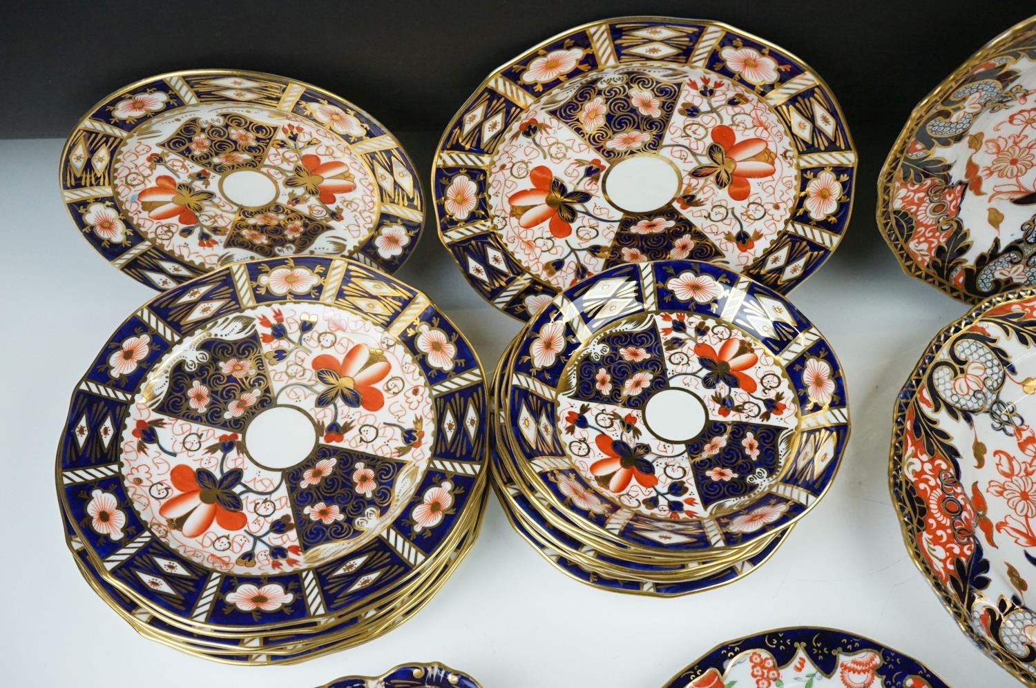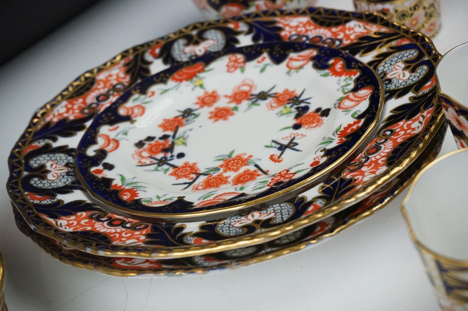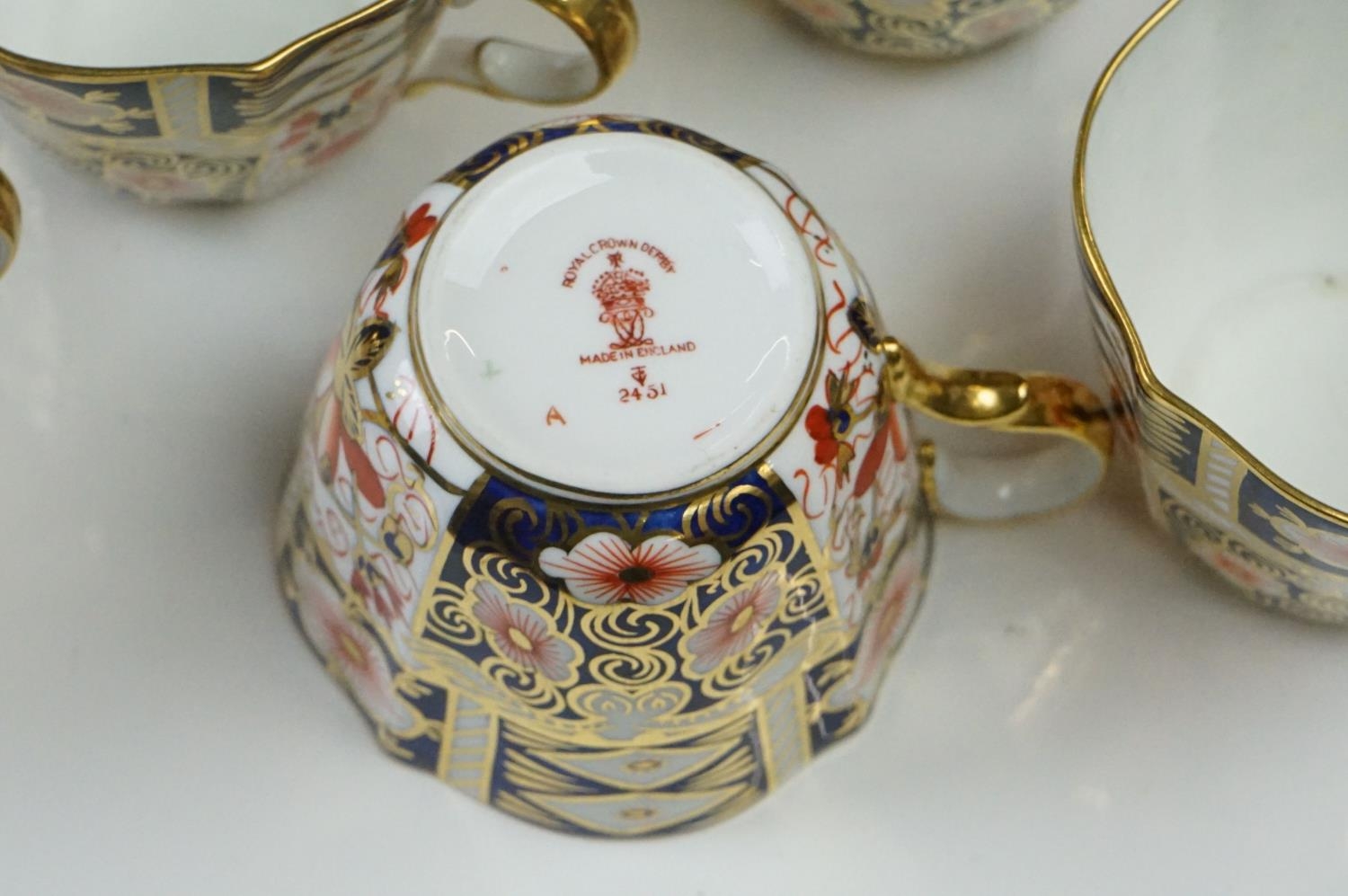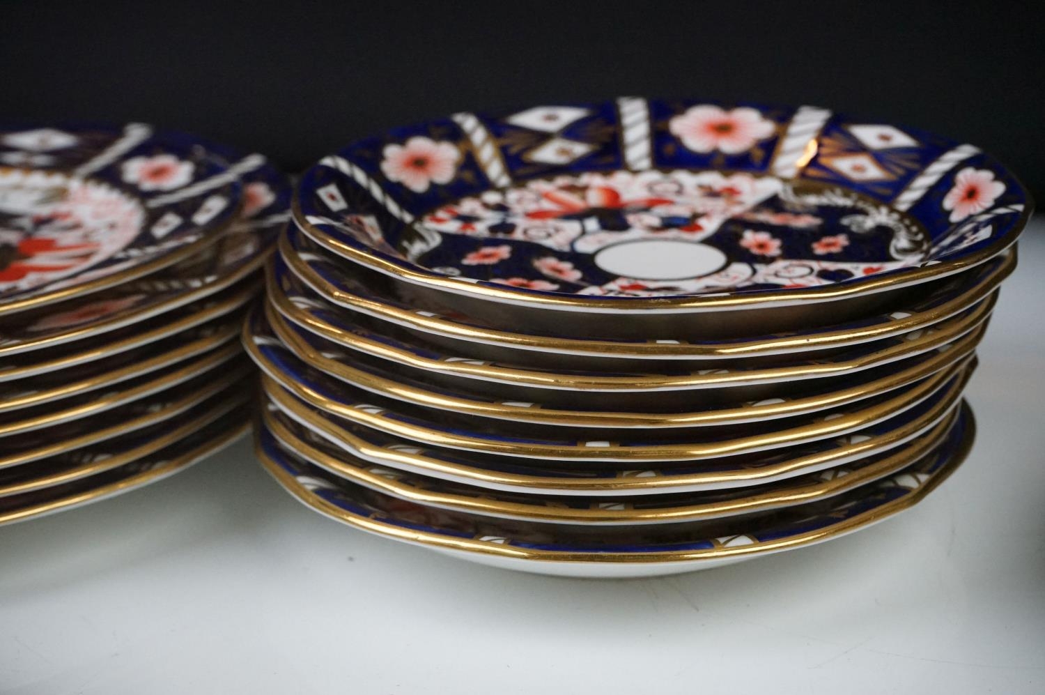Collection of Royal Crown Derby Imari 2451 pattern Tea ware including Eight Tea Cups and Eight Saucers, one 6" tea plate, seven 7" tea plates, coffee can and a saucer plus two further Imari 9" plates and another Royal Crown Derby Plate and Sugar Bowl
