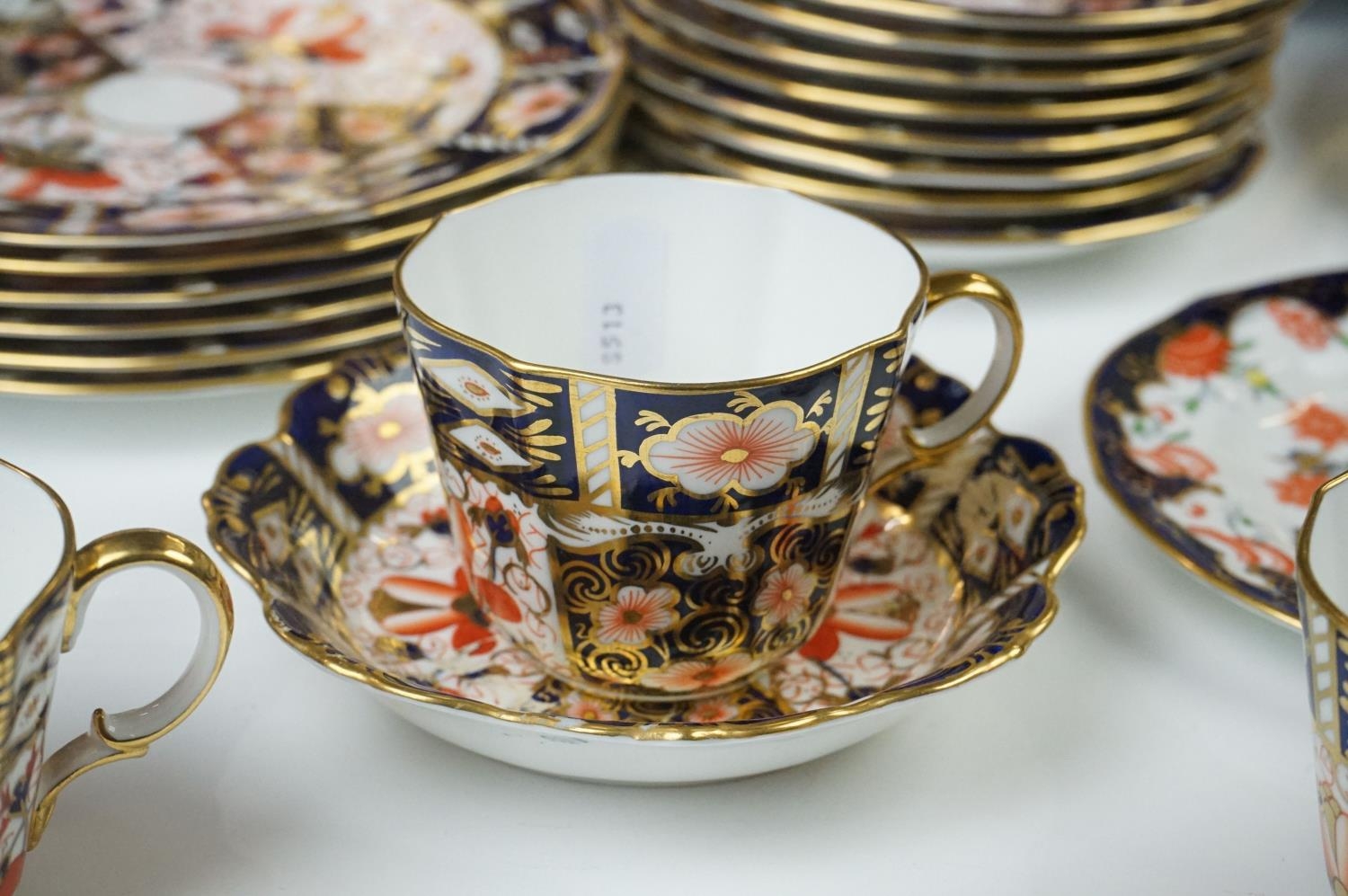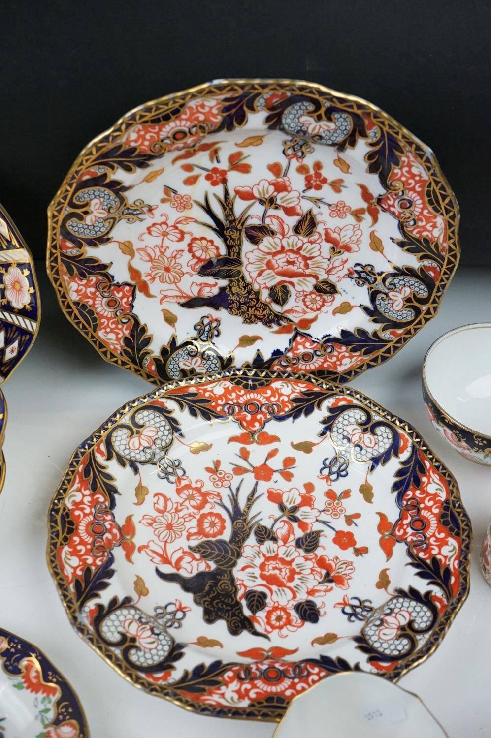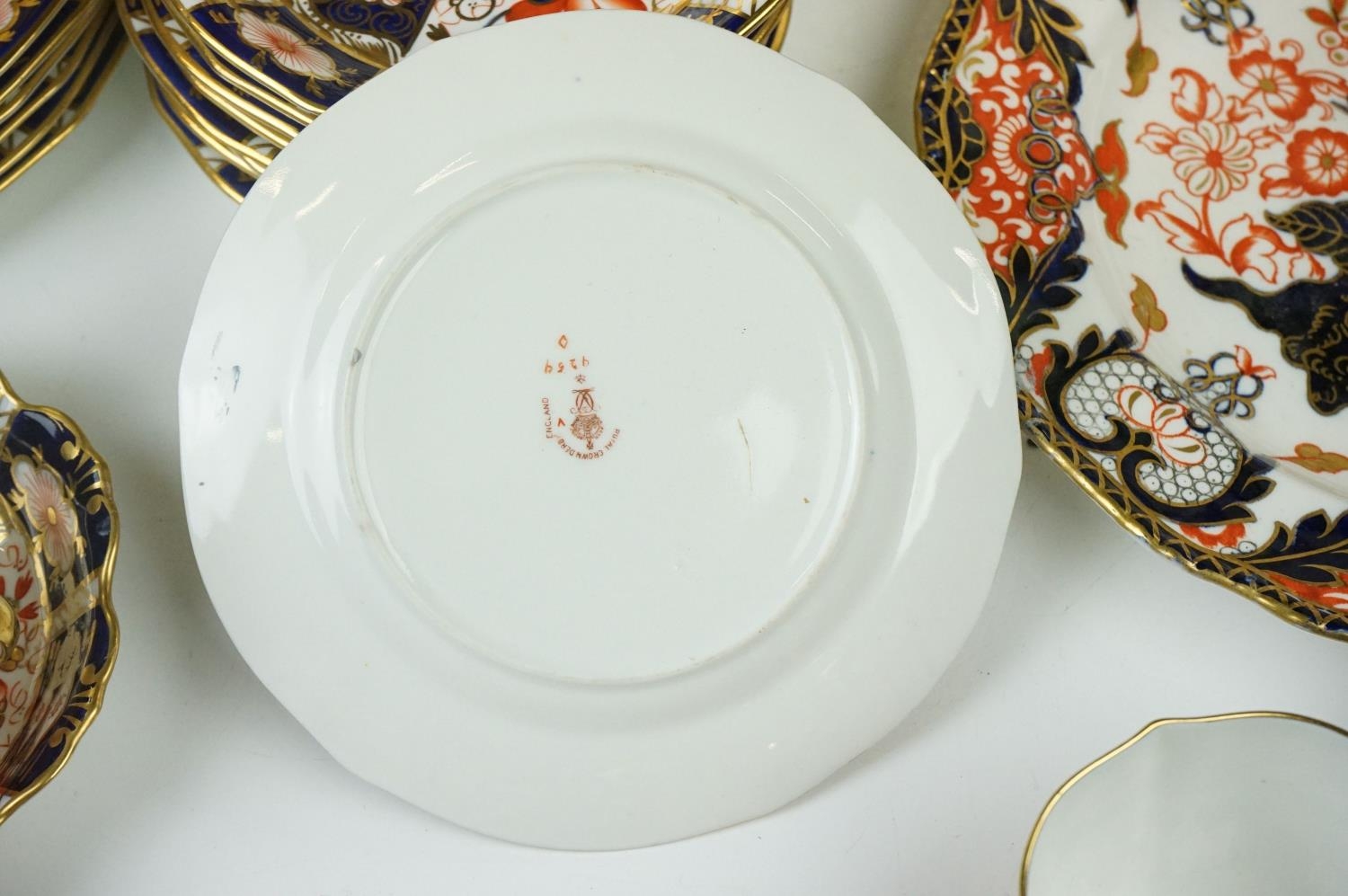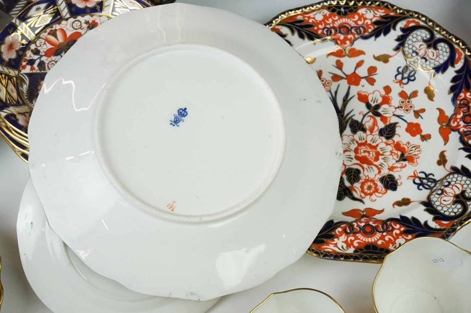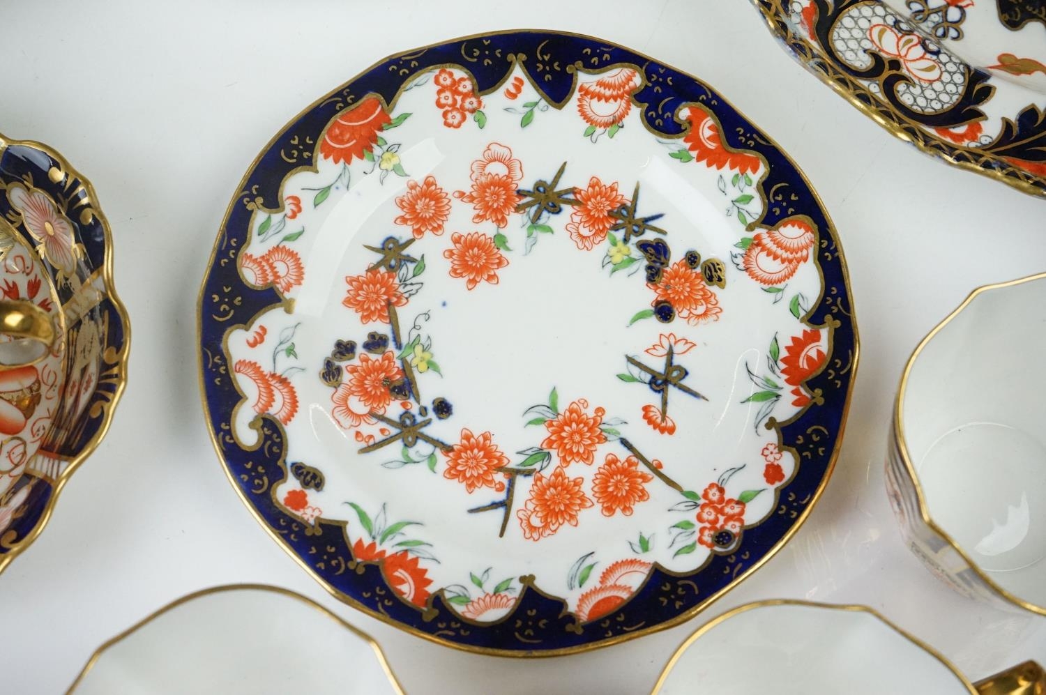 Collection of Royal Crown Derby Imari 2451 pattern Tea ware including Eight Tea Cups and Eight Saucers, one 6" tea plate, seven 7" tea plates, coffee can and a saucer plus two further Imari 9" plates and another Royal Crown Derby Plate and Sugar Bowl