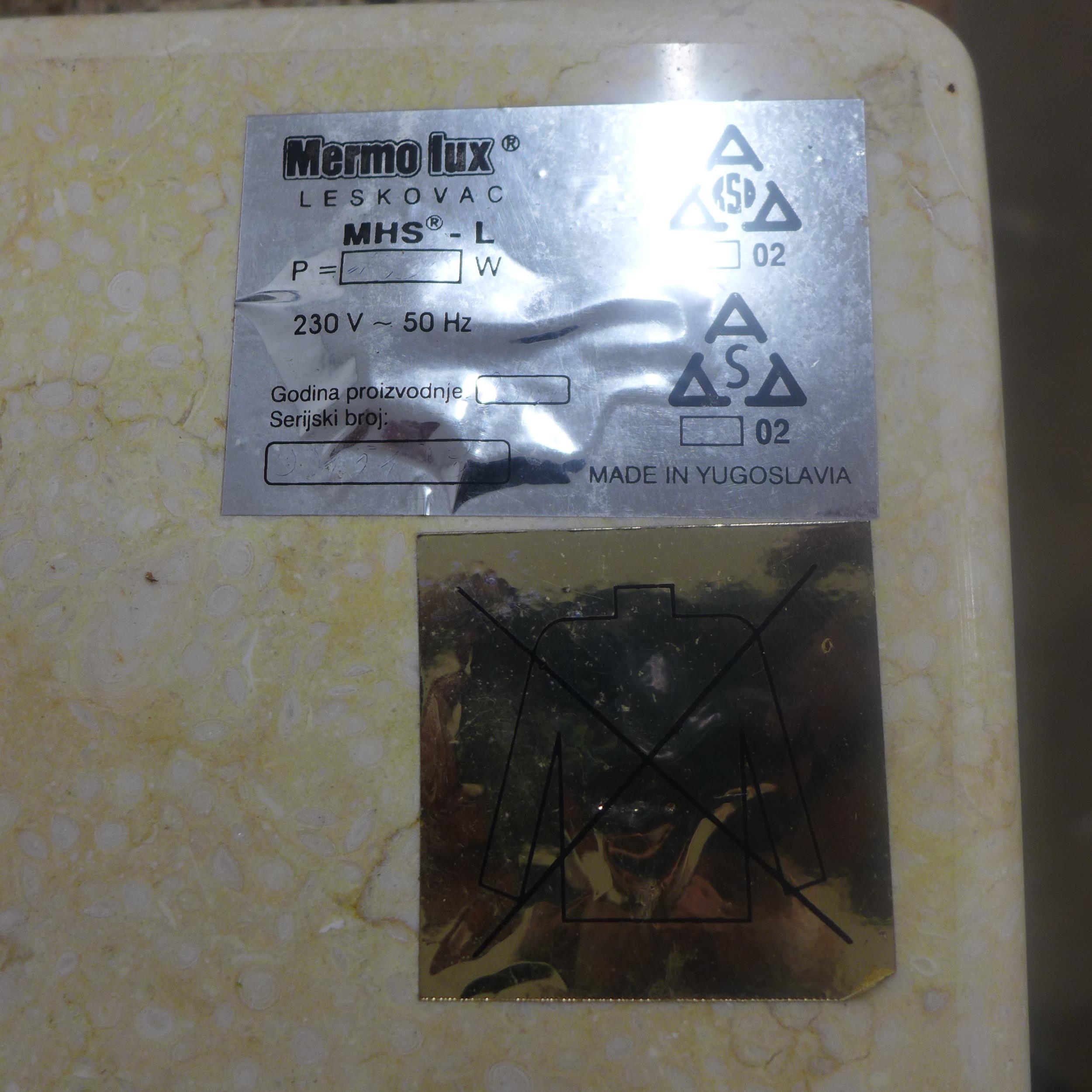 A 120cm x 40cm Mermo-Lux Leskovac marble radiator (230V) with wall brackets and fixings