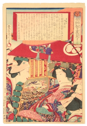 TOYOHARA KUNICHIKA (1835-1900) The Wife of Tokugawa Lenari, from the series of The Back Garden of Tokugawa Shogun 1879, woodblock print on paper, 37.25cm x 25.5cm.