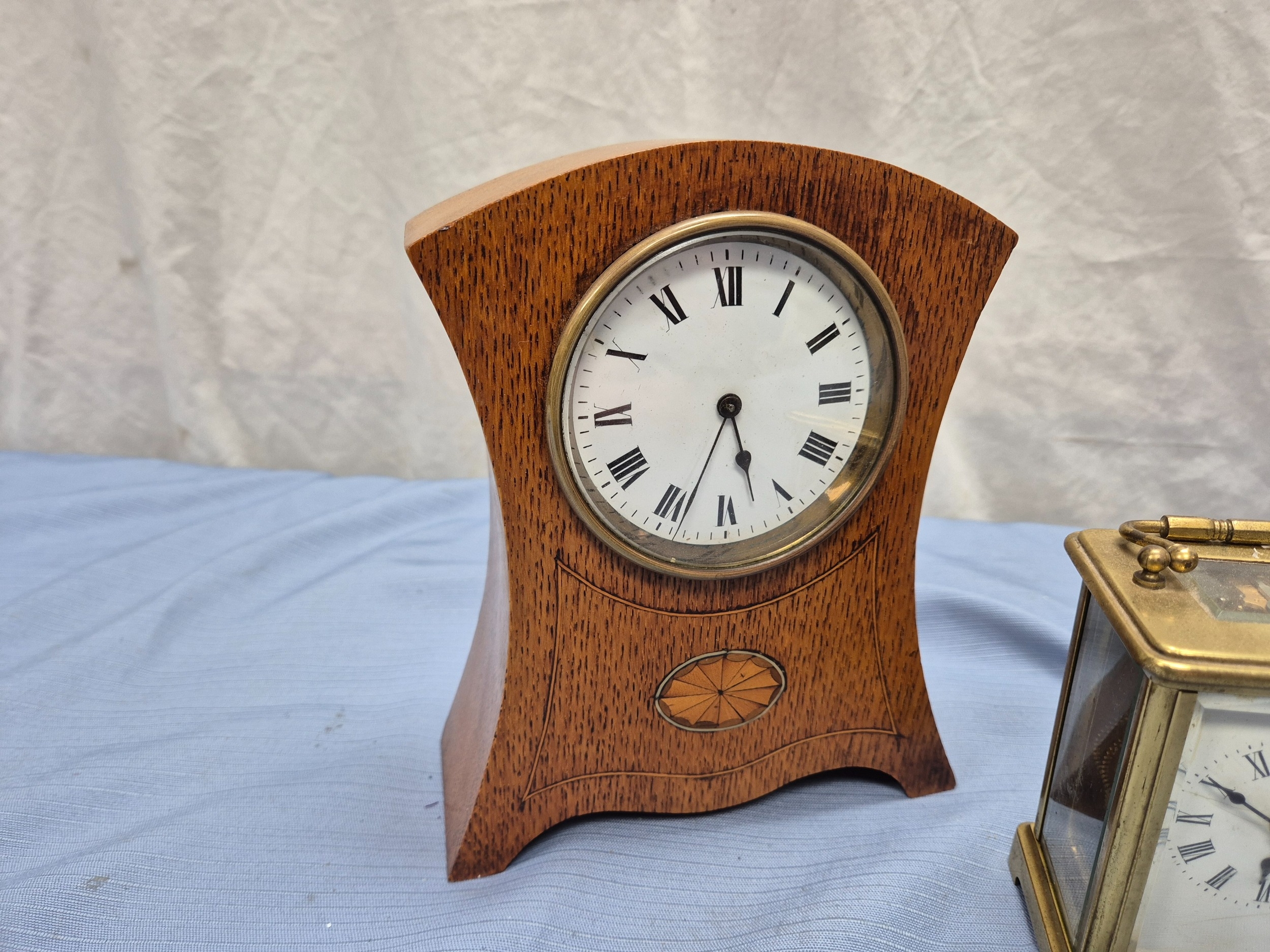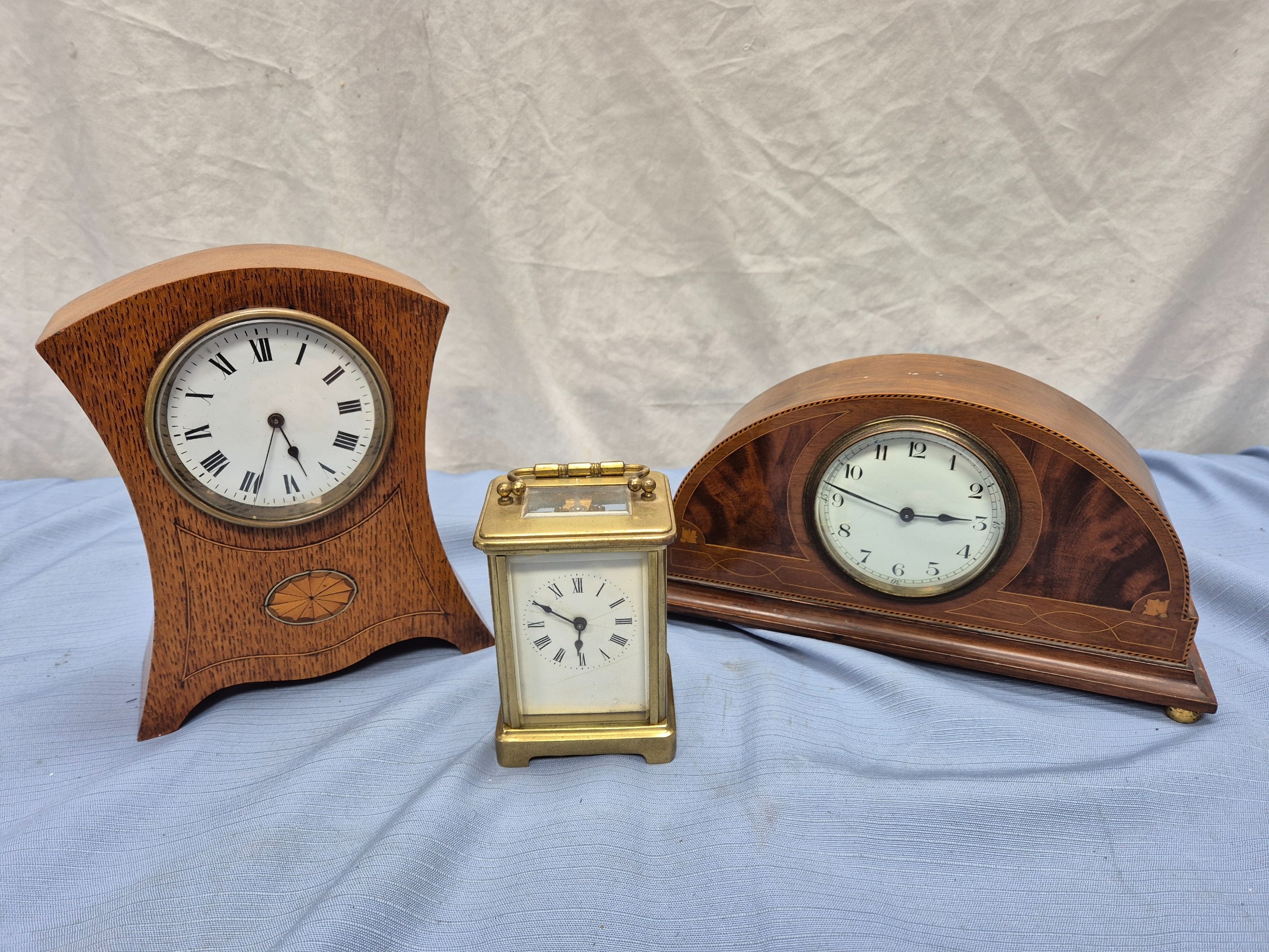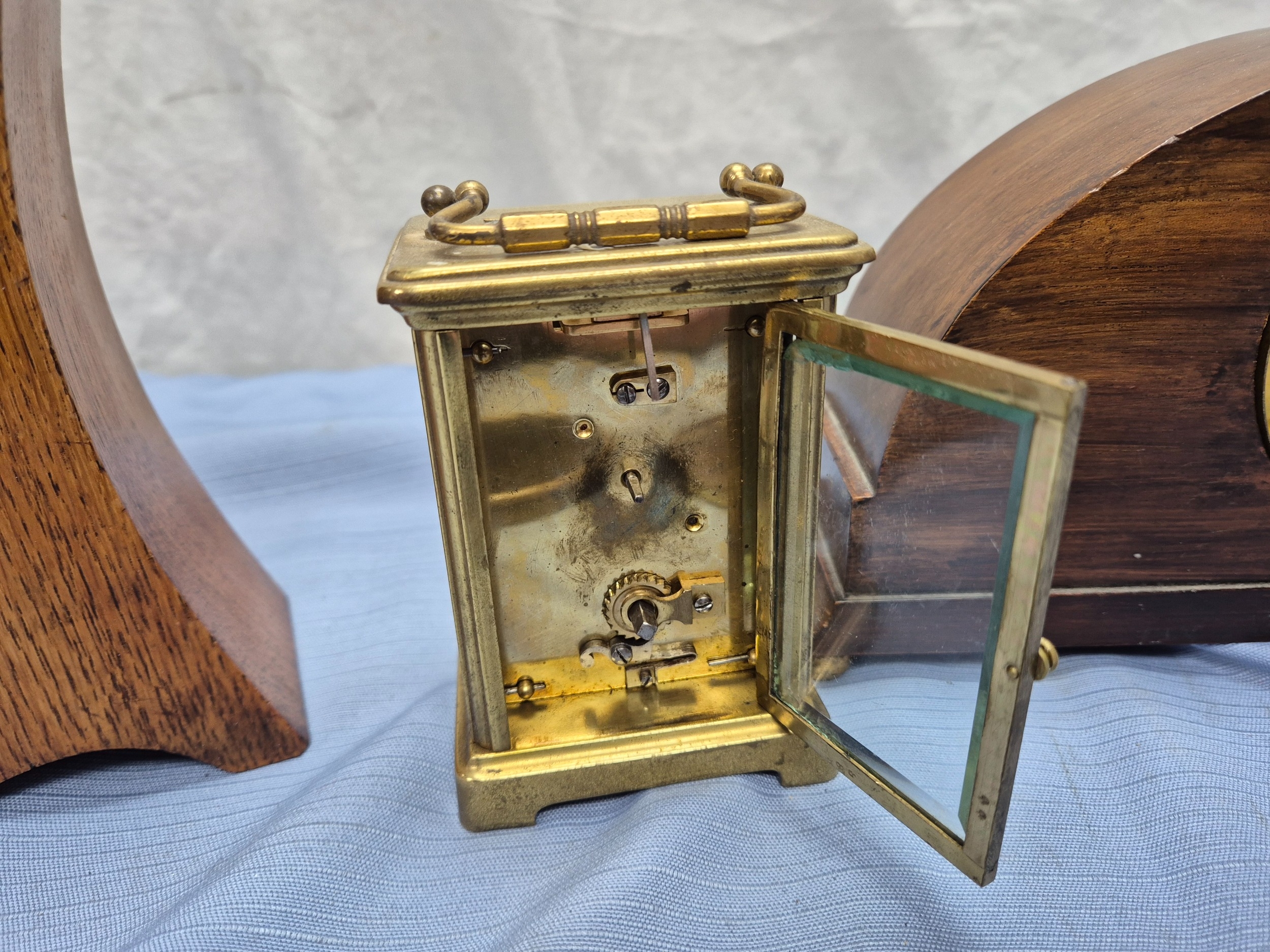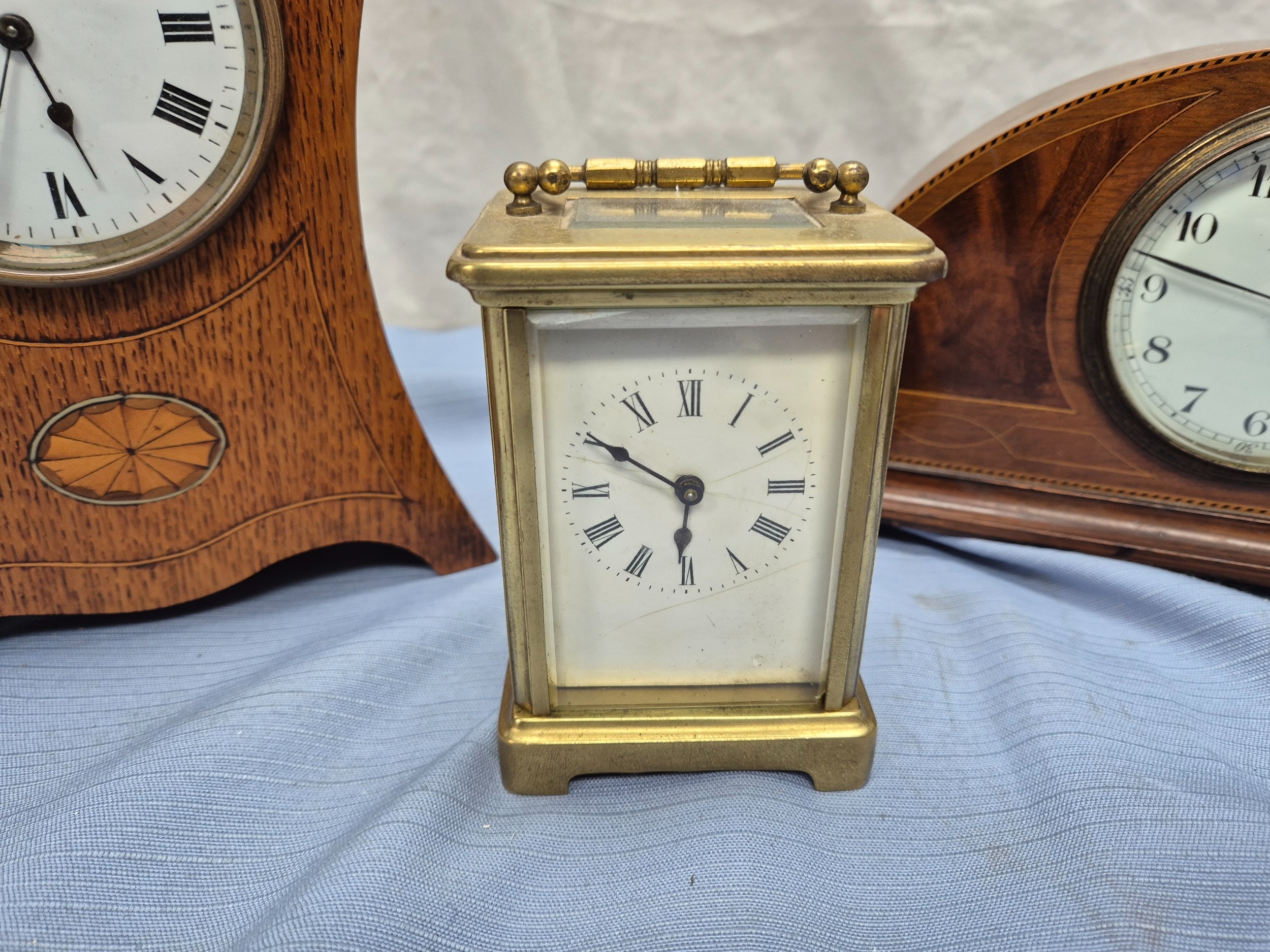 Two Vintage French Mantel Clocks together with a Brass Carriage Clock
