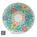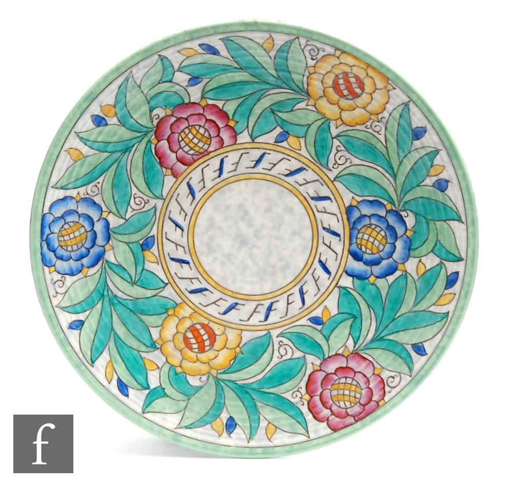 A 1930s Crown Ducal charger decorated in the Persian Rose 4040 pattern designed by Charlotte Rhead, printed mark, diameter 31.5cm.