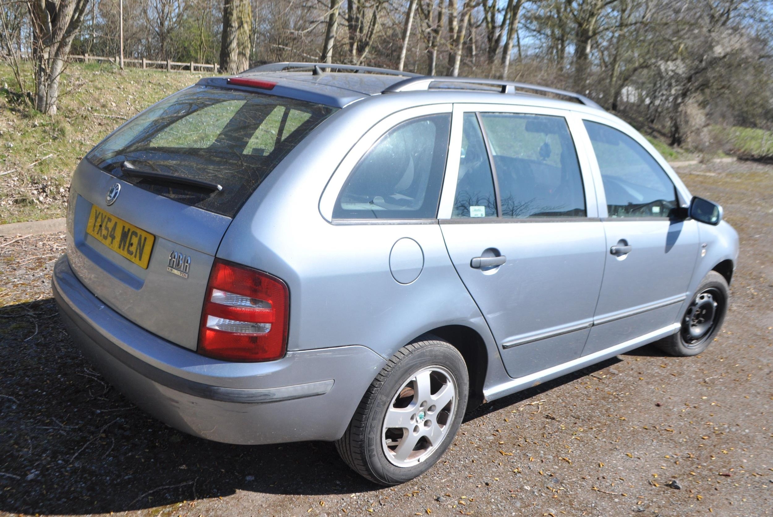A 2004 SKODA FABIA ELEGANCE TDi FIVE DOOR ESTATE CAR IN GREY, with a 1896cc diesel engine, six speed manual gearbox, V5c present, first registered 30/09/2004 with number plate YX54 WCN, two former keepers, odometer reads 131,389 miles (unwarranted but previous MOTs correspond) two key fobs, MOT expired July 2024. Condition Report: starts and drives, rust on bodywork, electric windows drivers side not working (new mechanism in rear of car) p brakes grinding, slight knock to front suspension PLEASE NOTE: BUYERS PREMIUM IS CHARGED AT 10% + VAT ON THIS LOT PLUS ANY ONLINE PLATFORM CHARGES
