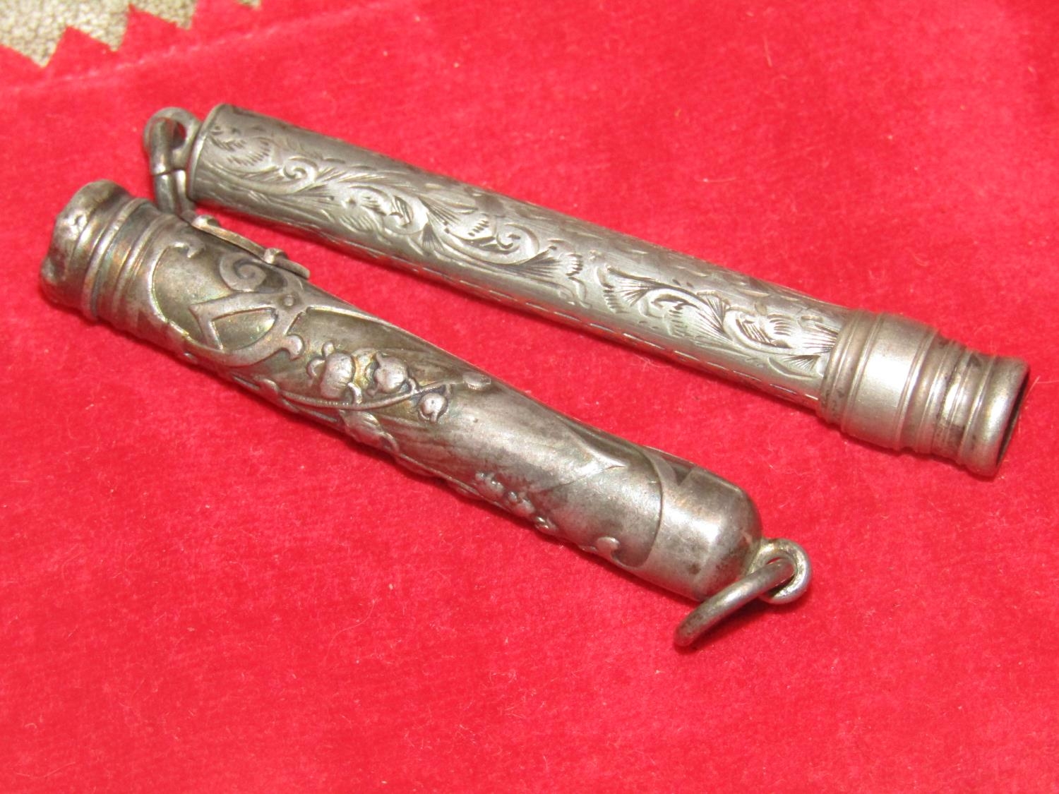 Two Victorian Solid Silver Pencil Cases with Chased Decoration