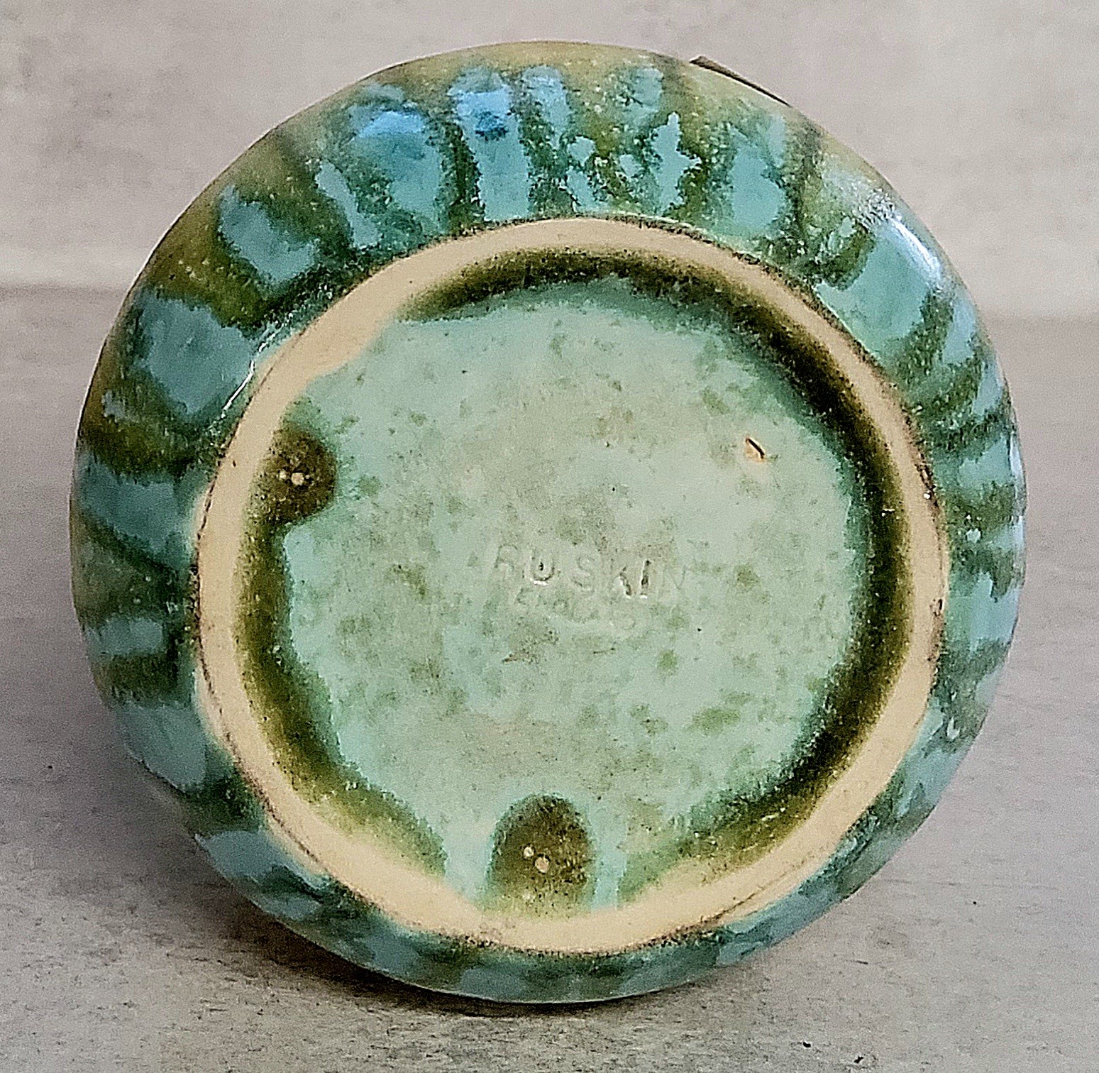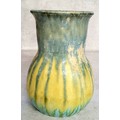 A Ruskin Pottery Crystalline Vase, green and yellow glaze, impressed RUSKIN ENGLAND, 15.5cms high c.1930