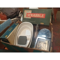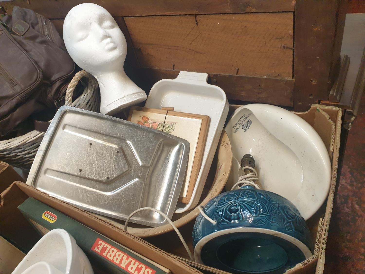 Box to Include Polystyrene Mannequin Head, Bed Slipper, Table Lamp, Large Wash Bowl etc.