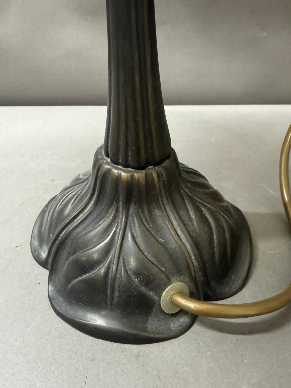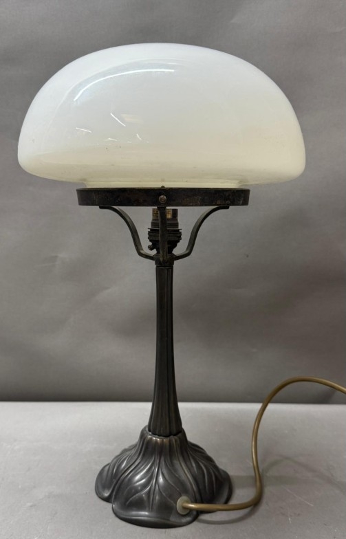 An Art Nouveau style Mushroom table lamp with opaque white glass shade