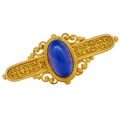 ANTIQUE REVIVAL LAPISLAZULI BROOCH, in 18 ct. gold. Set with a central oval cabochon cut lapis lazuli. The brooch further decorated with granulation and twisted rope border. W. 3.2 cm. 3.5 grams.