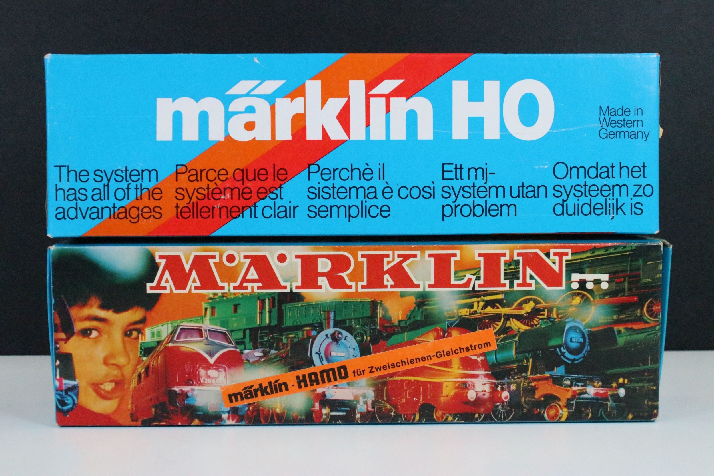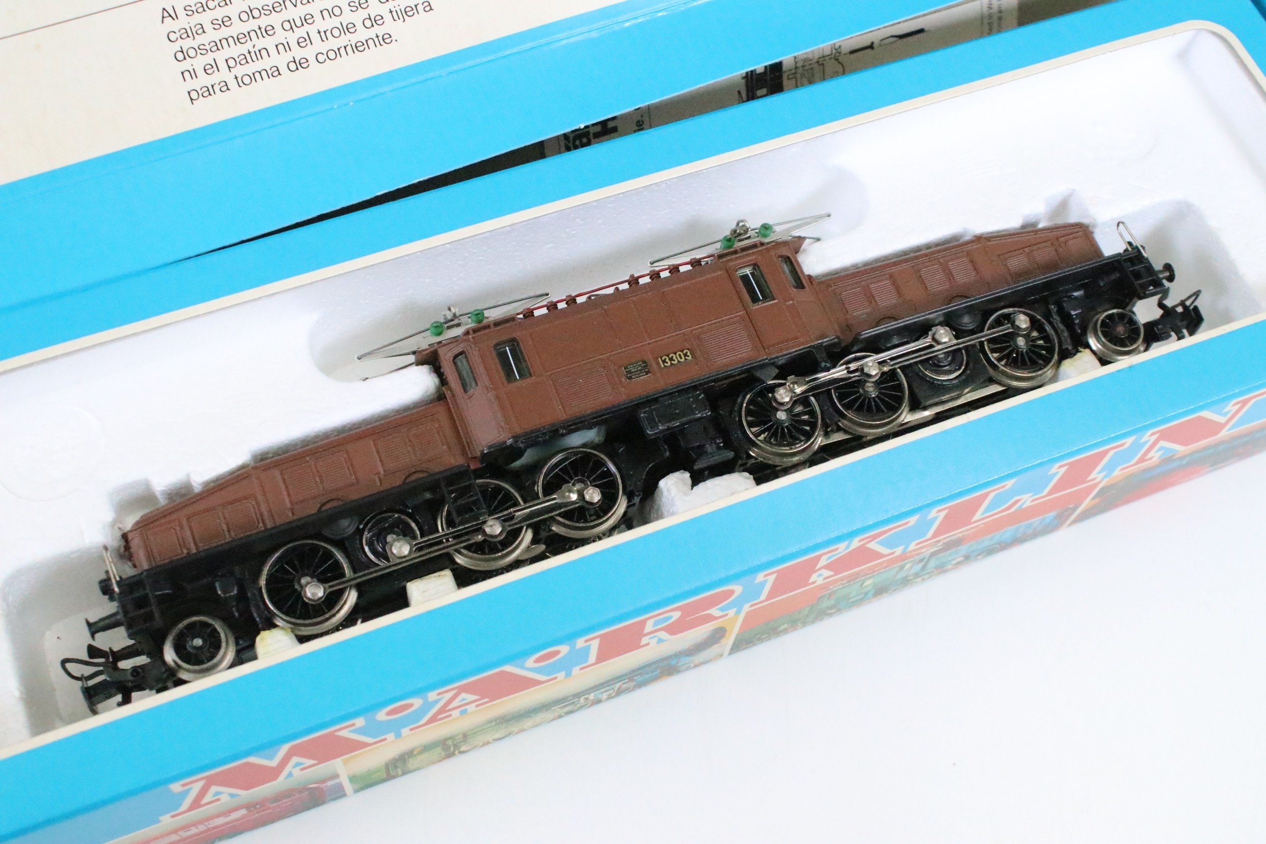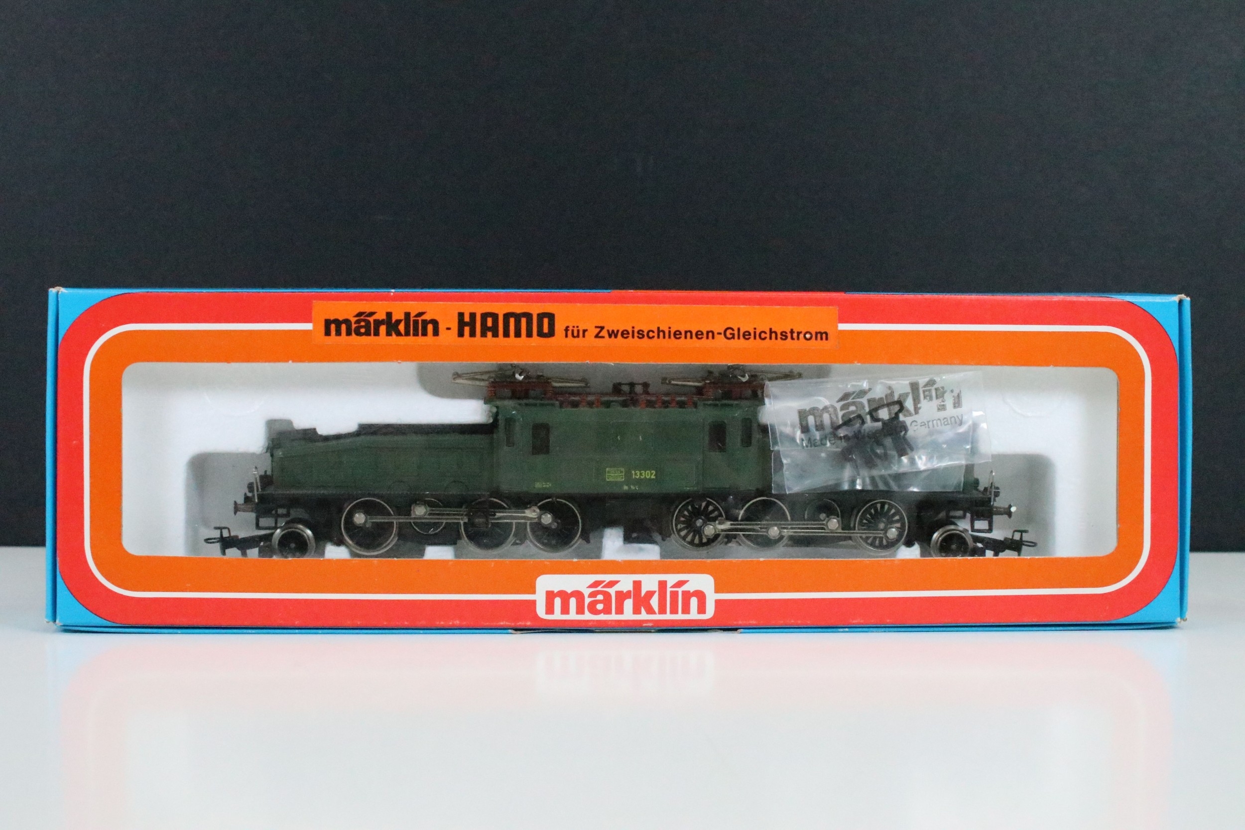 Two boxed Marklin HO gauge HAMO 8356 locomotives to include variants 13302 in green and 13303 in brown