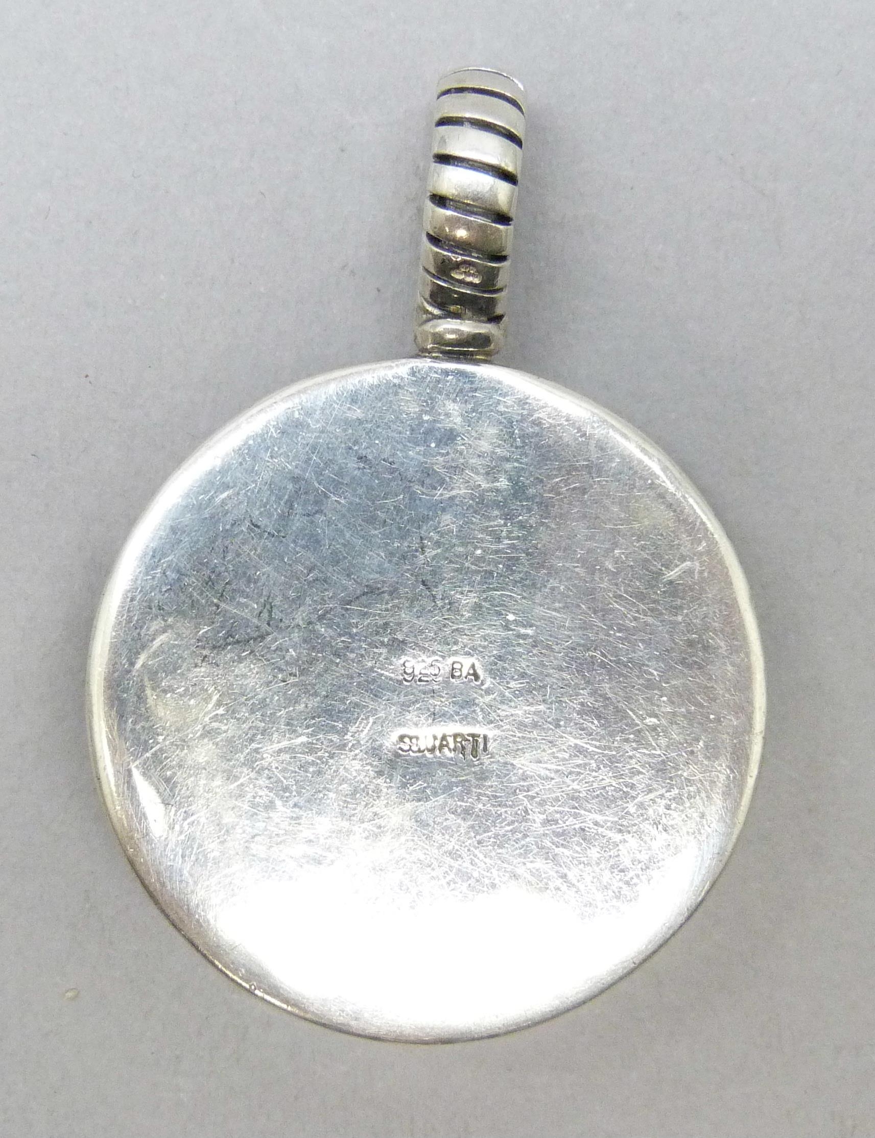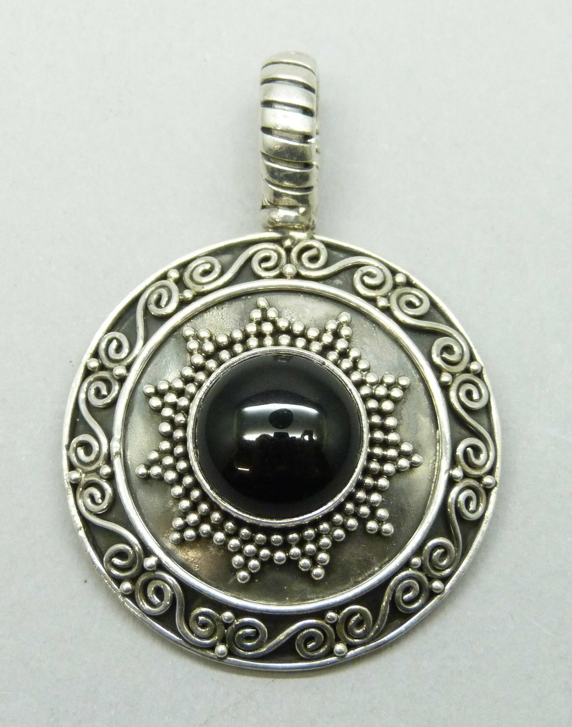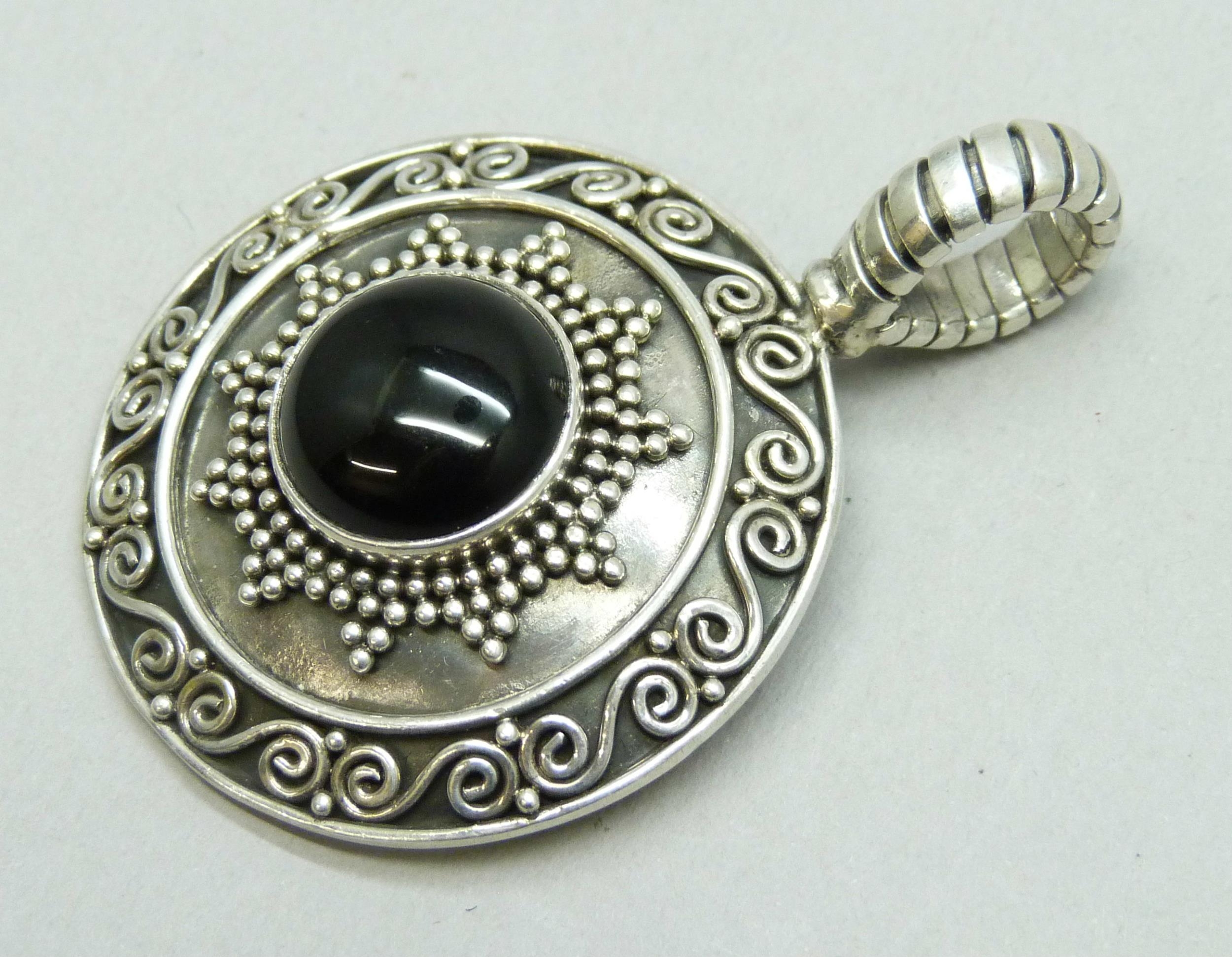 A large Suarti silver pendant set with a cabochon onyx stone, hallmarked, 22g, 5.5cm including bail