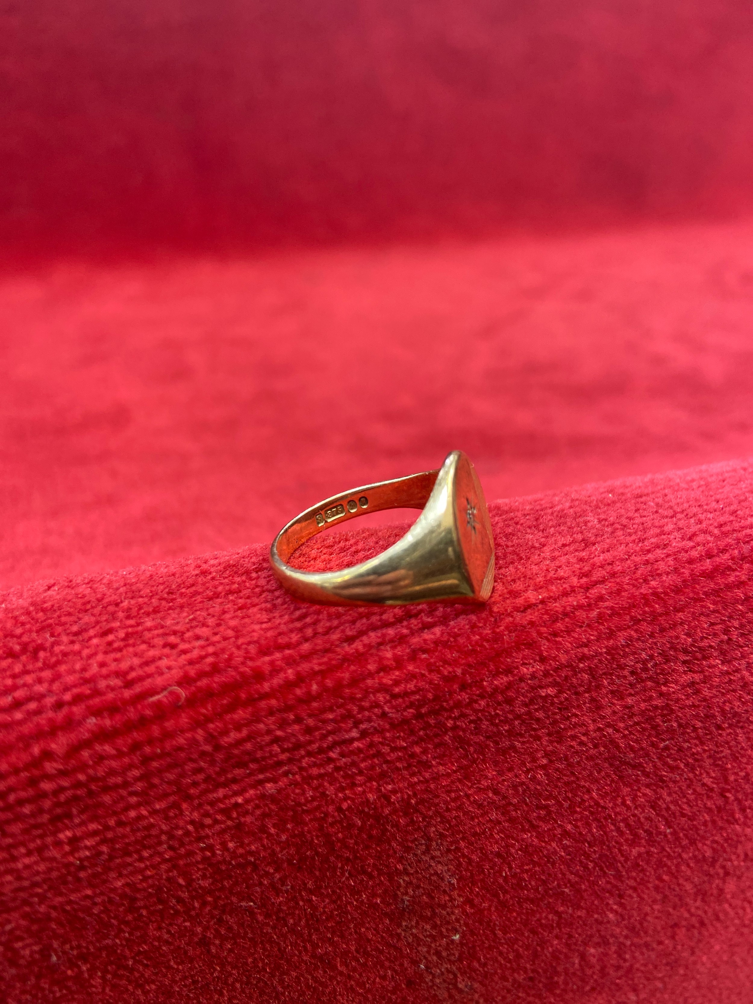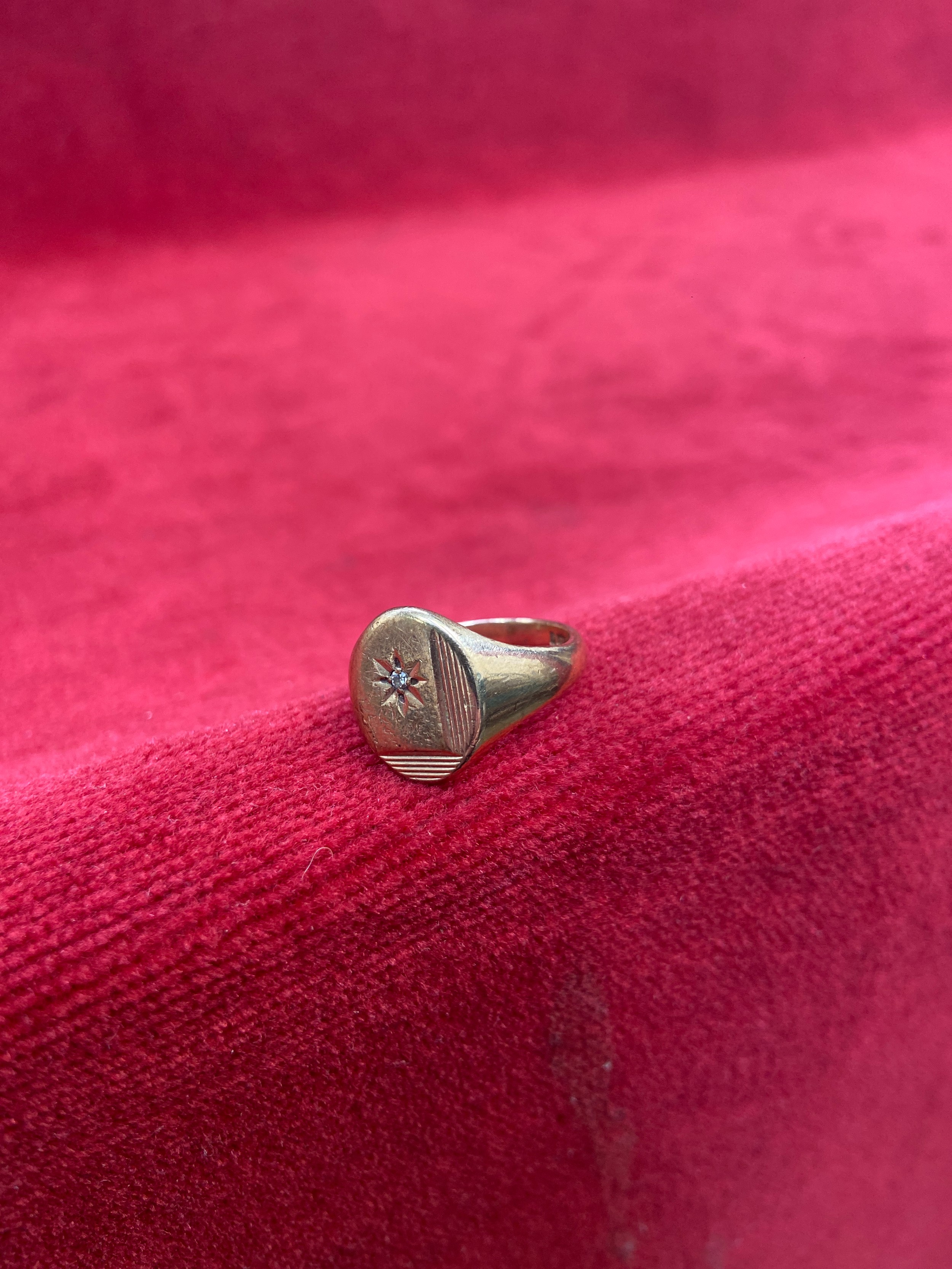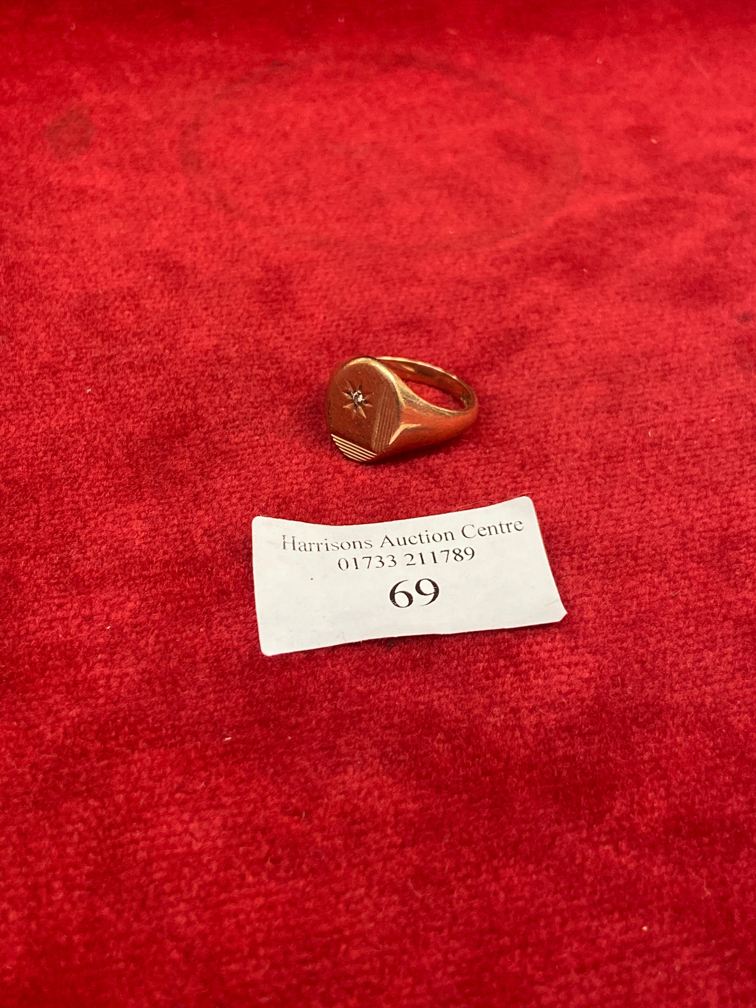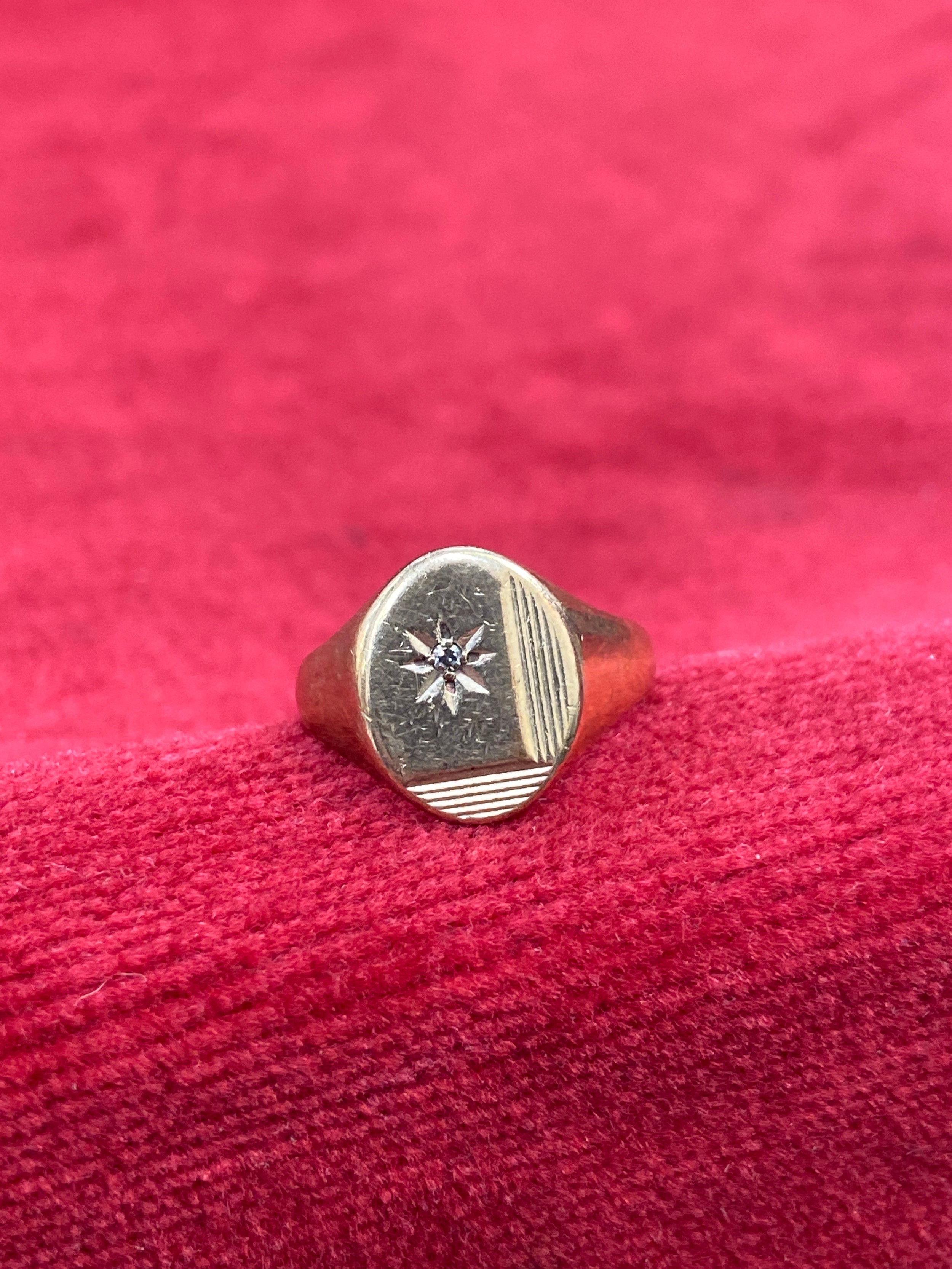 A vintage 9ct gold signet ring set with a diamond - London hallmarks 1964. Size R 6.3 grams