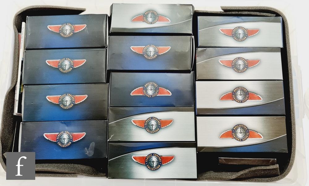 Thirty one Atlas Editions Classic Coaches Collection diecast models, all boxed, together with related books. (qty)