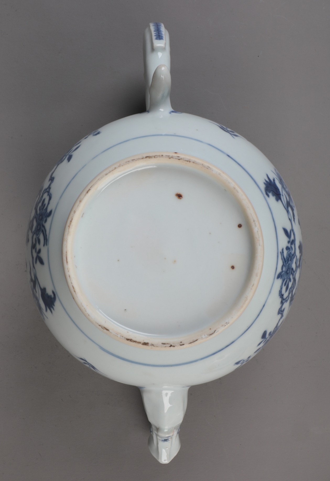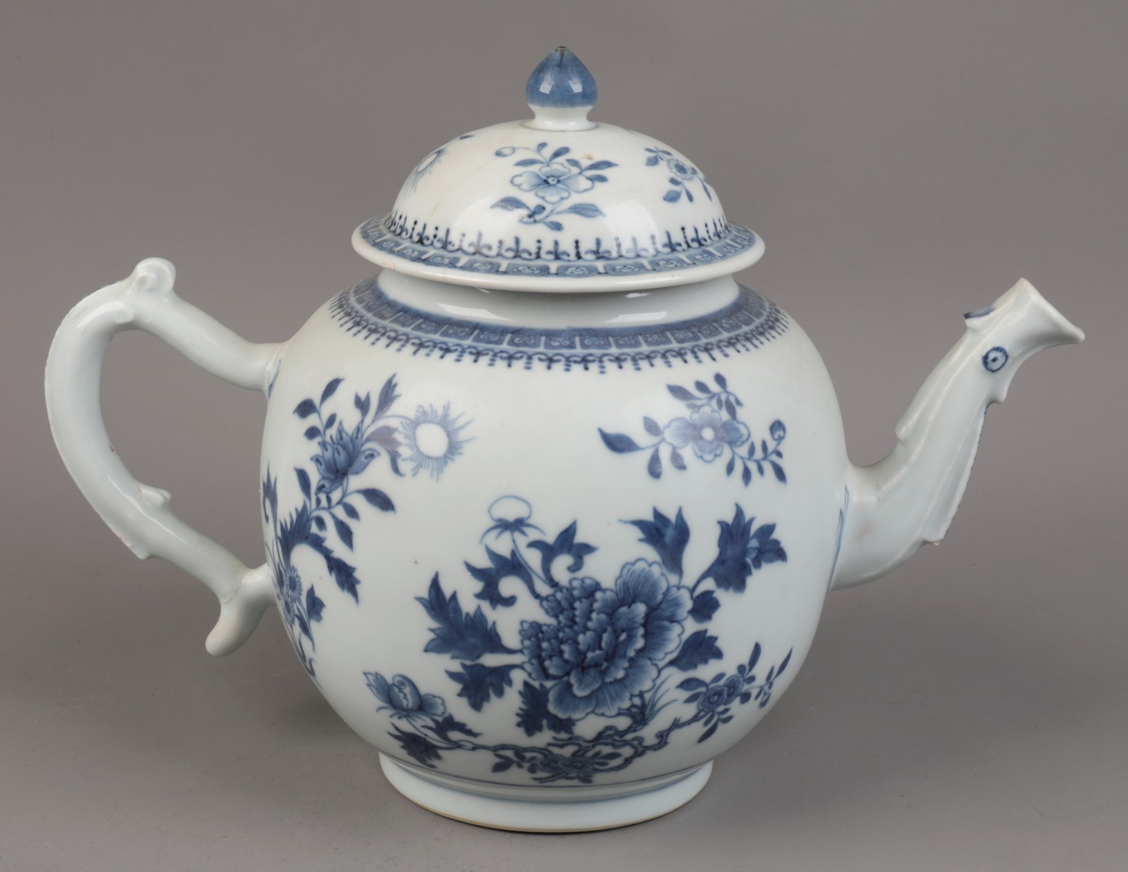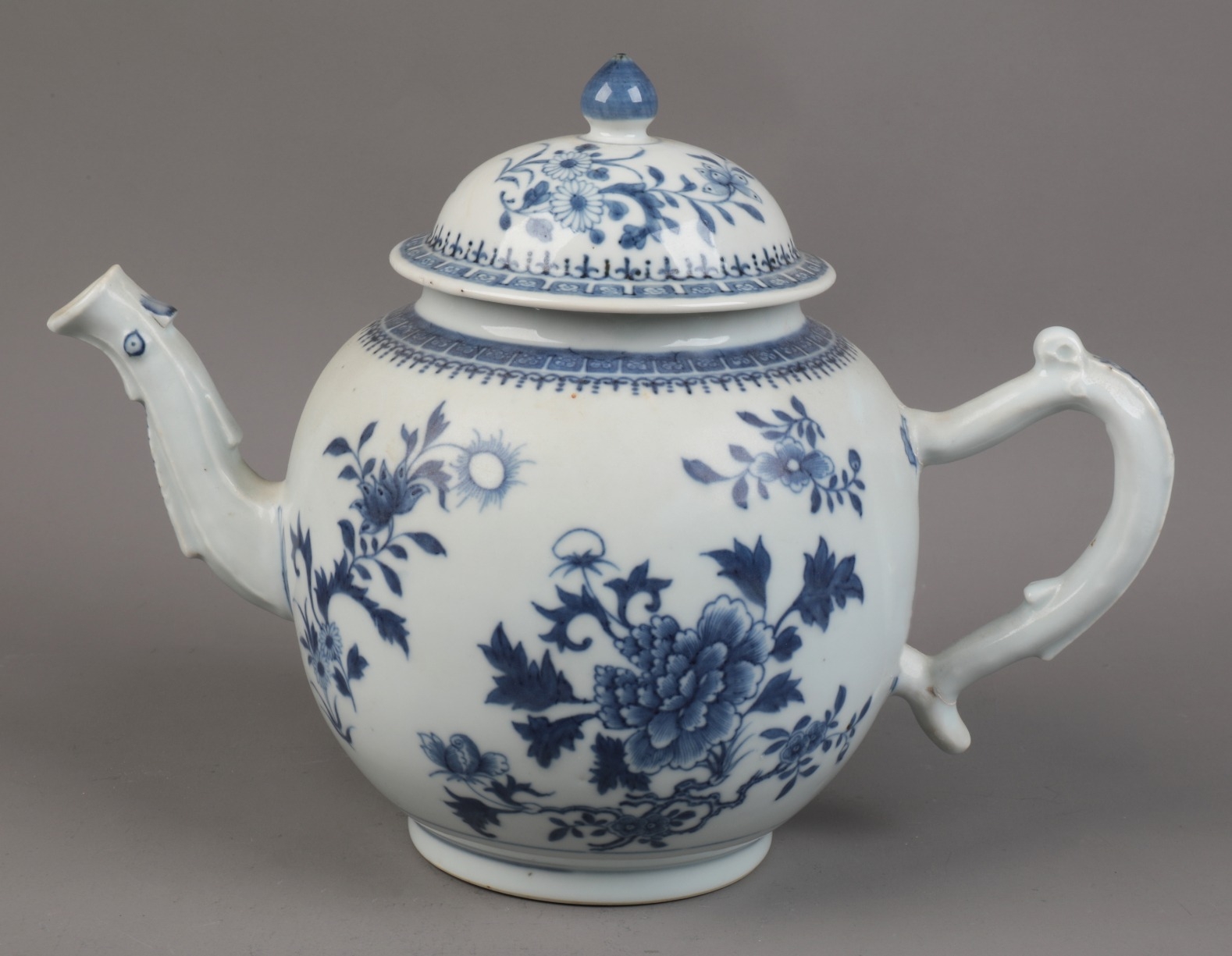 A CHINESE EXPORT PORCELAIN BLUE AND WHITE TEAPOT19th century, of large globular form, decorated throughout with blossoming foliage, 21.5cm high