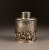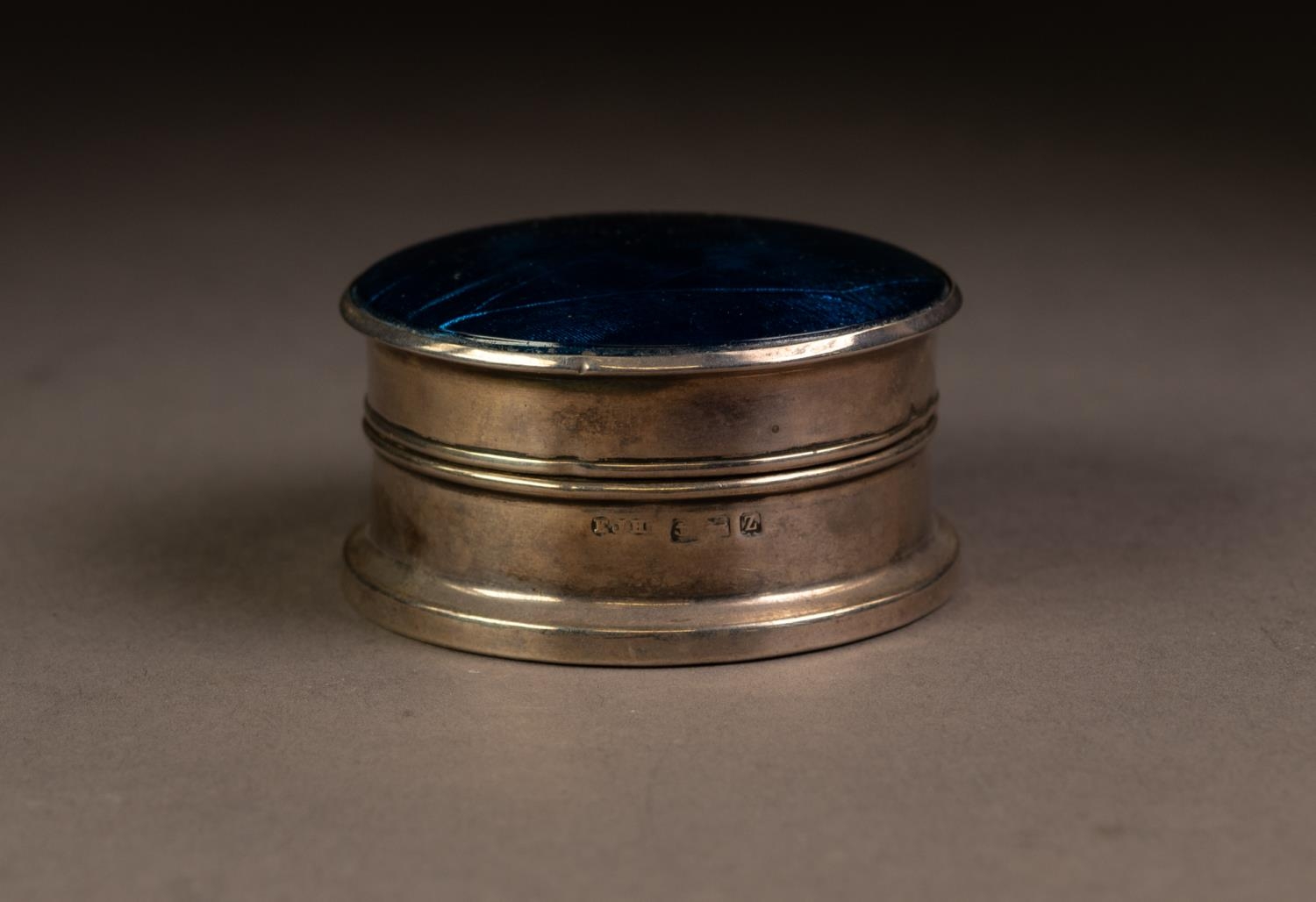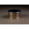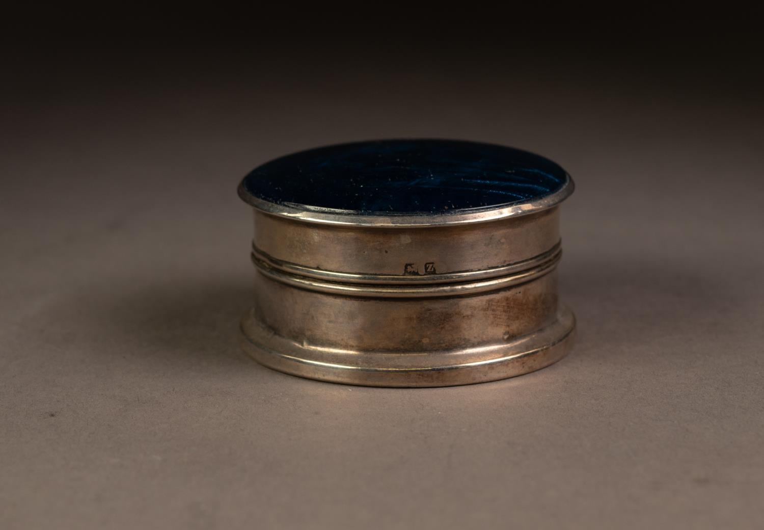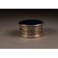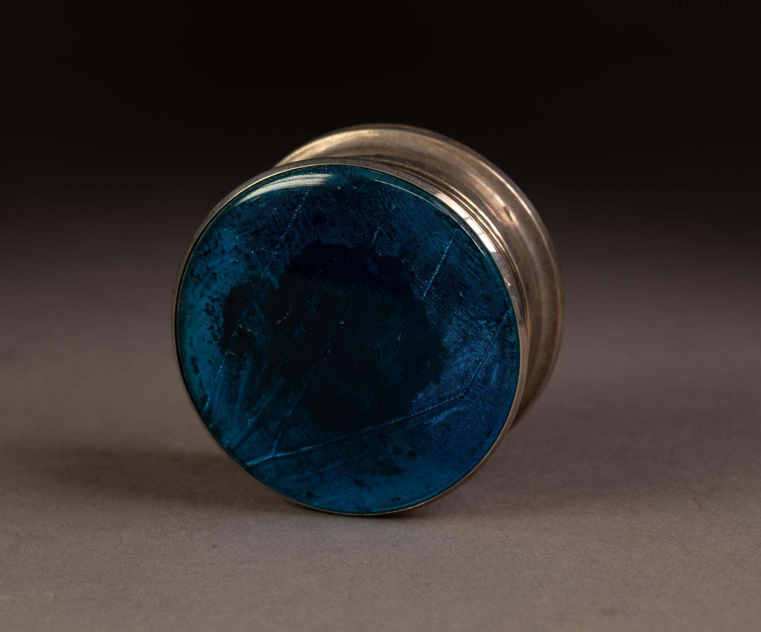 GEORGE V BUTTERFLY WING AND SILVER TRINKET BOX, of cylindrical form with domed cover and wood insert to the base, 1 ¼” (3.2cm) high, 2 ½” (6.4cm) diameter, Birmingham 1924, 1.7oz gross