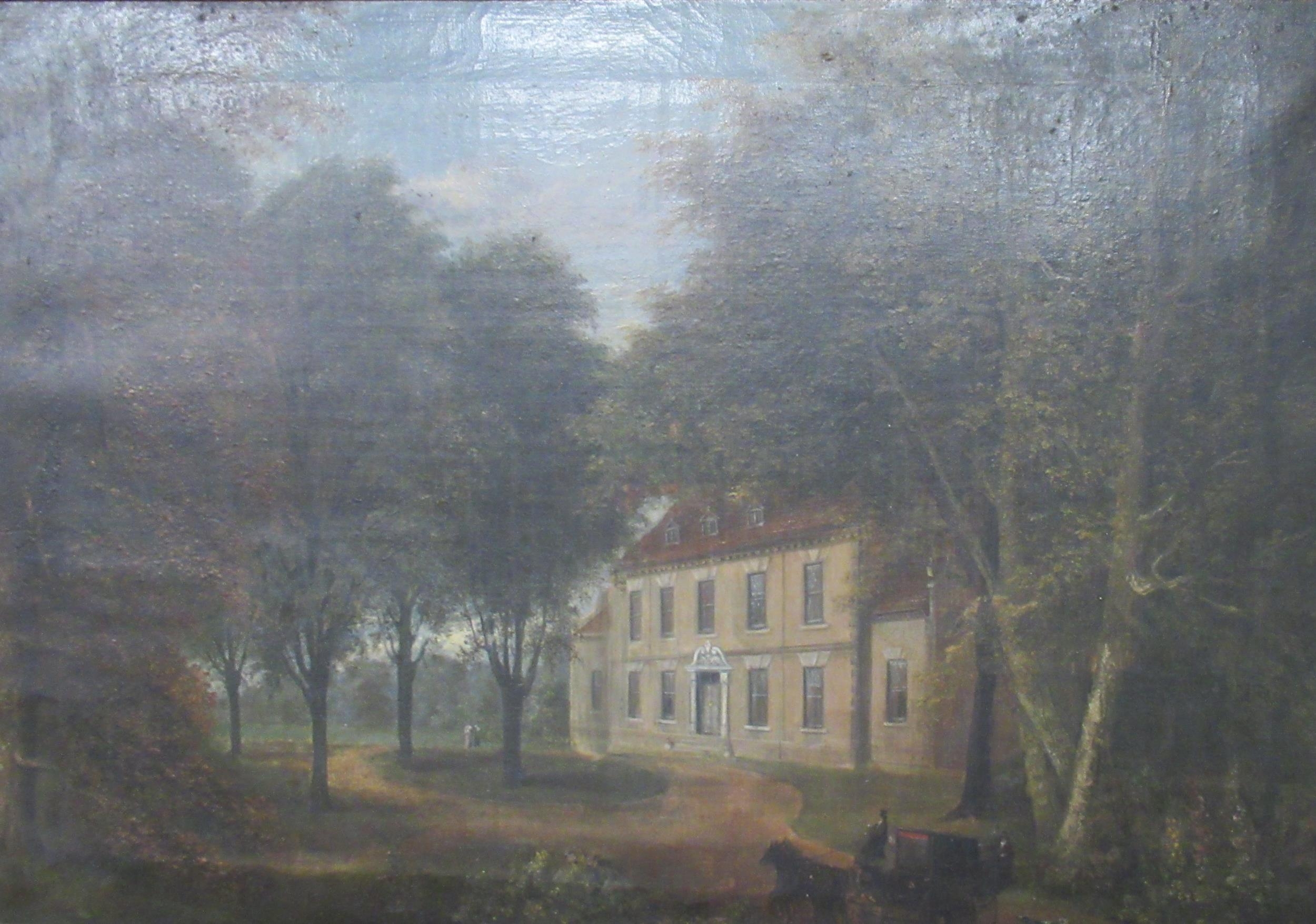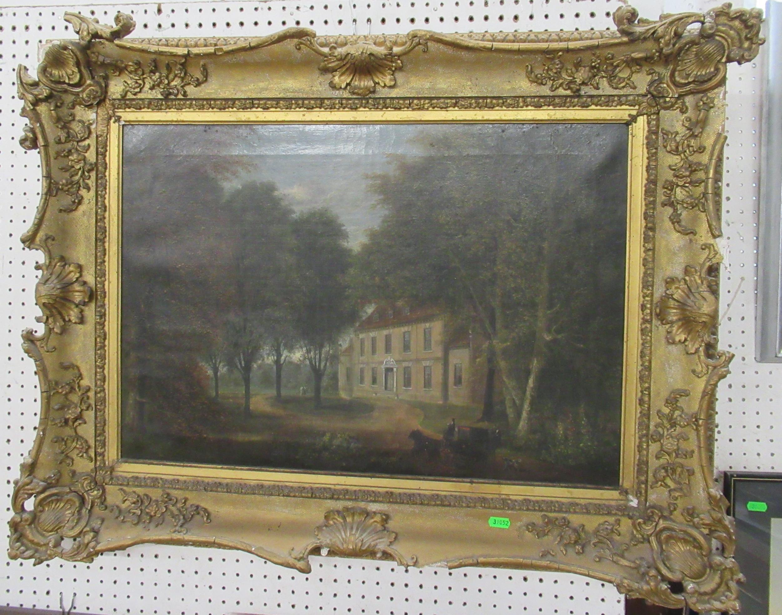 A 19th century oil on canvas, view through trees to a house, 17.5ins x 25ins
