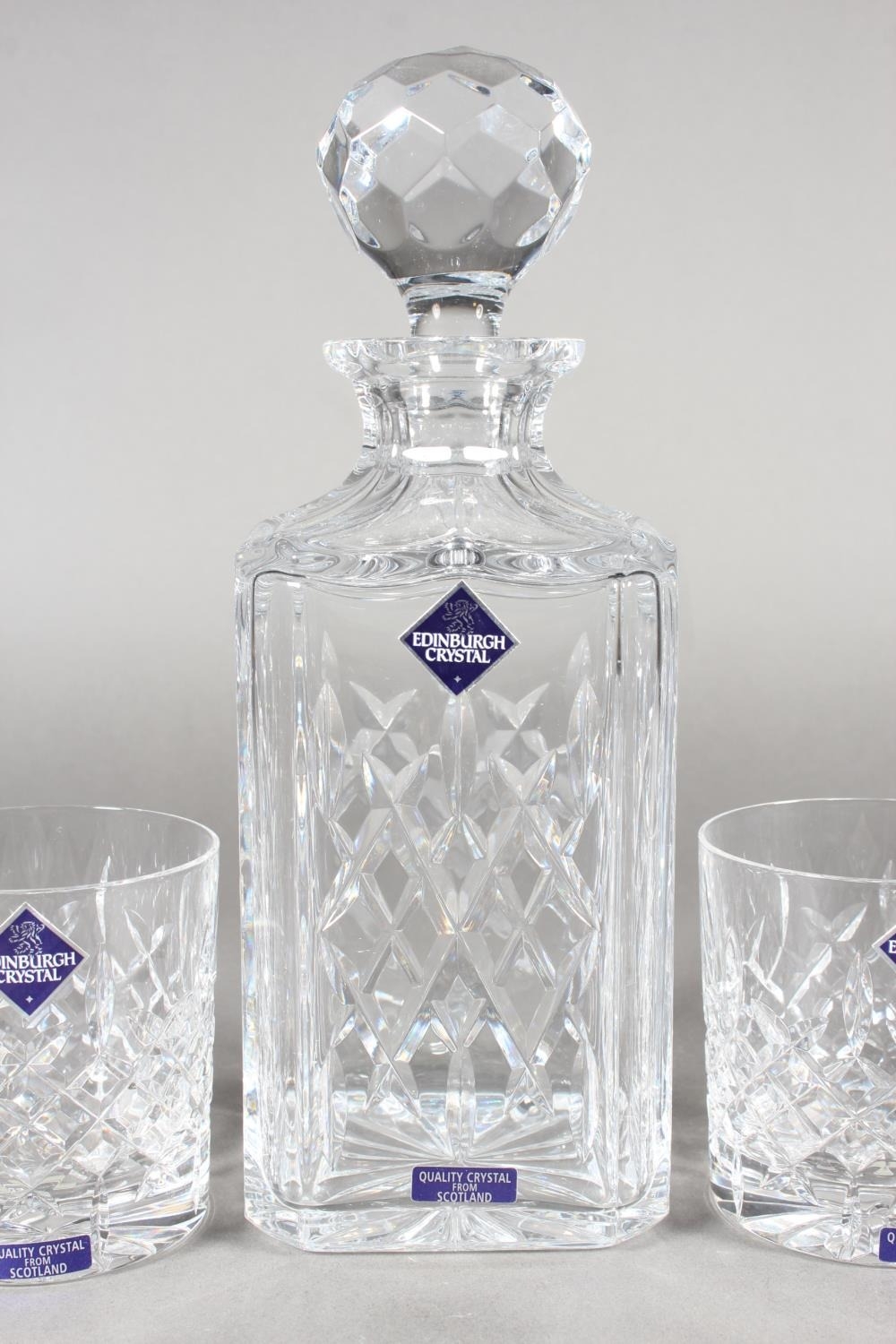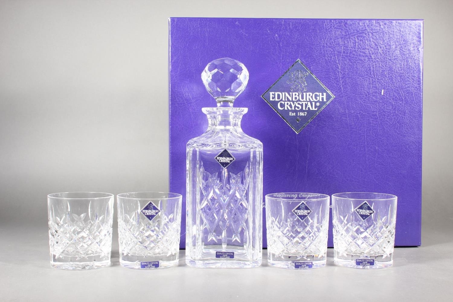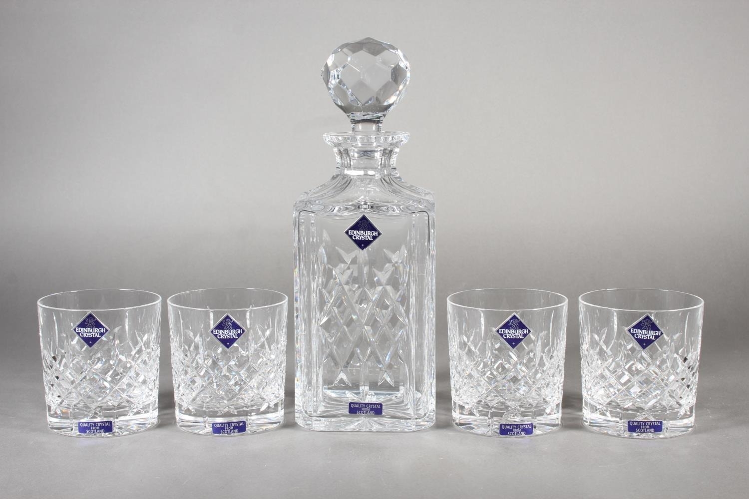 Edinburgh crystal boxed set comprising decanter and four tumblers.