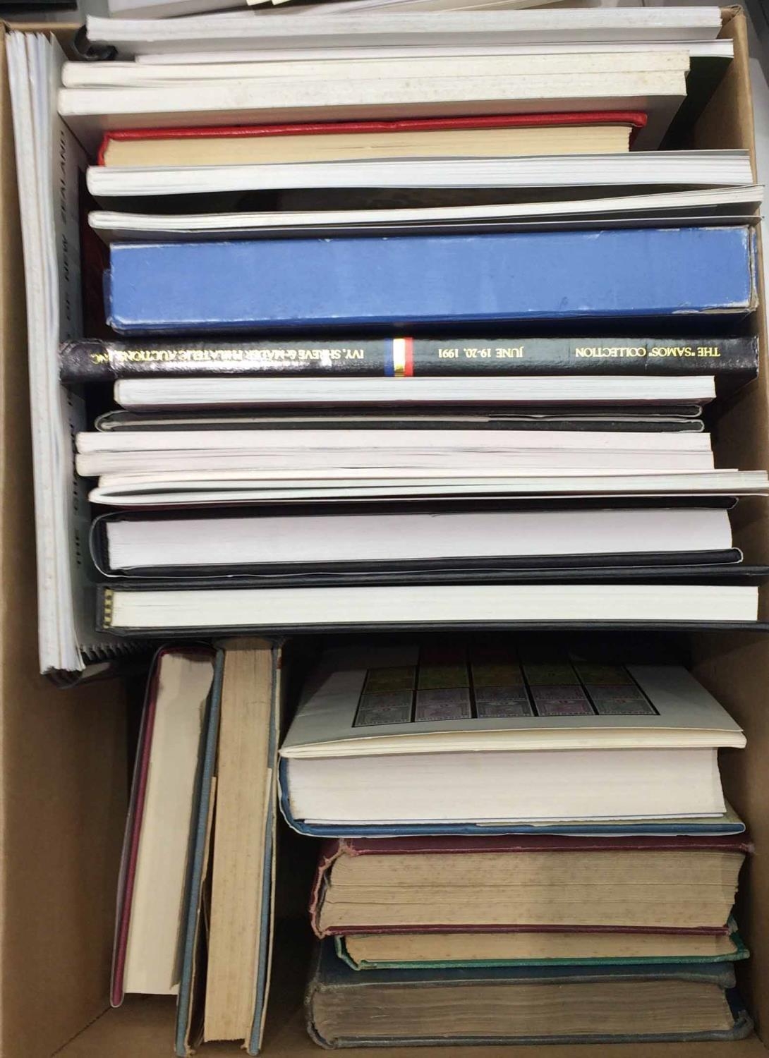 BRITISH EMPIRE: One box containing auction catalogues (mainly named sales), and some handbooks inc. Handstruck Postage Stamps of the Empire by Lowe 1938-39, The Encyclopaedia of British Empire Postage Stamps Vol. 1 by Lowe second edition, Postage Stamps of the Falkland Islands by Grant 1952 and The Chalon Issues of New Zealnd by Lynch vol. 1 5th edition 2005. (27 items)