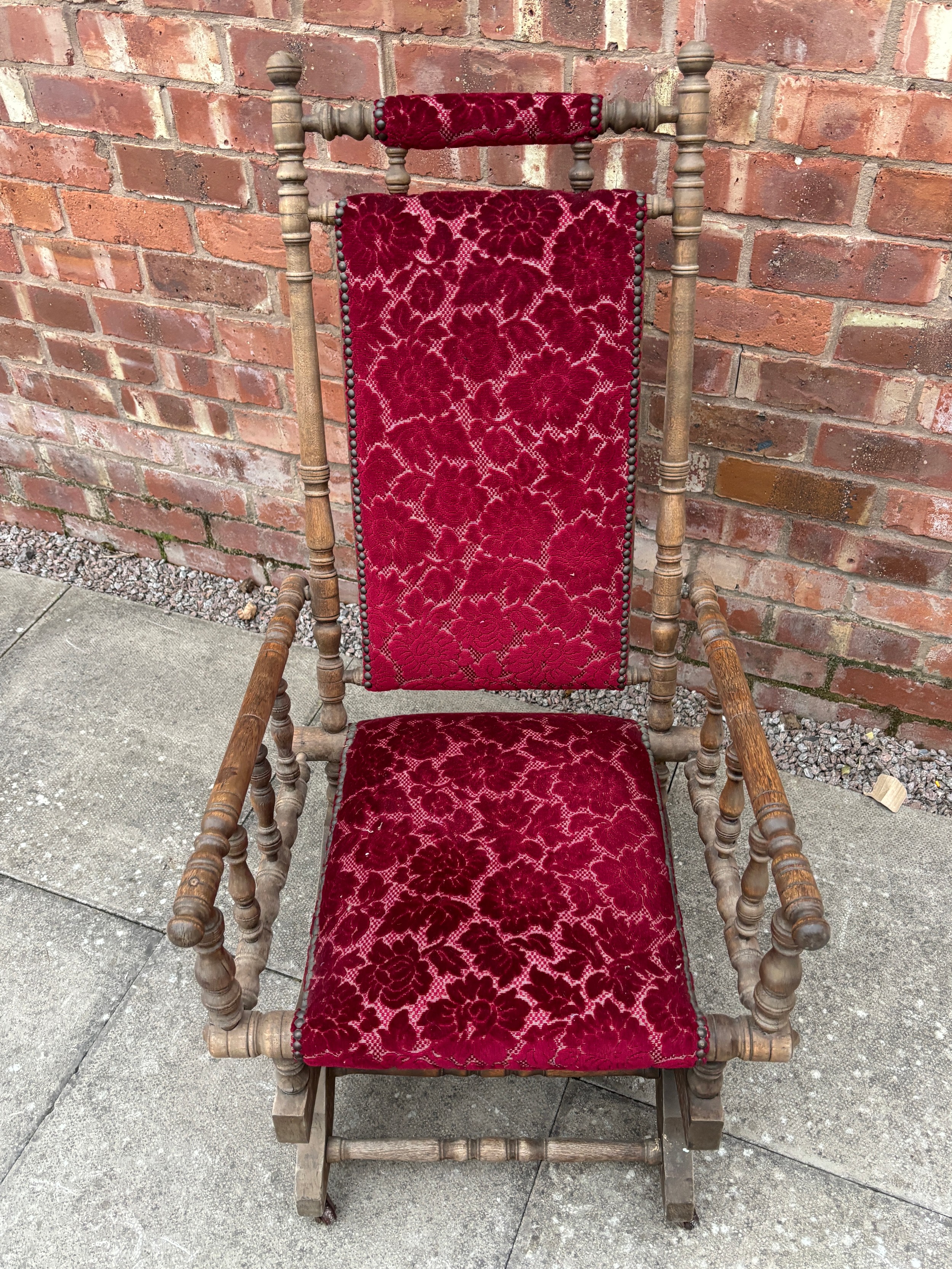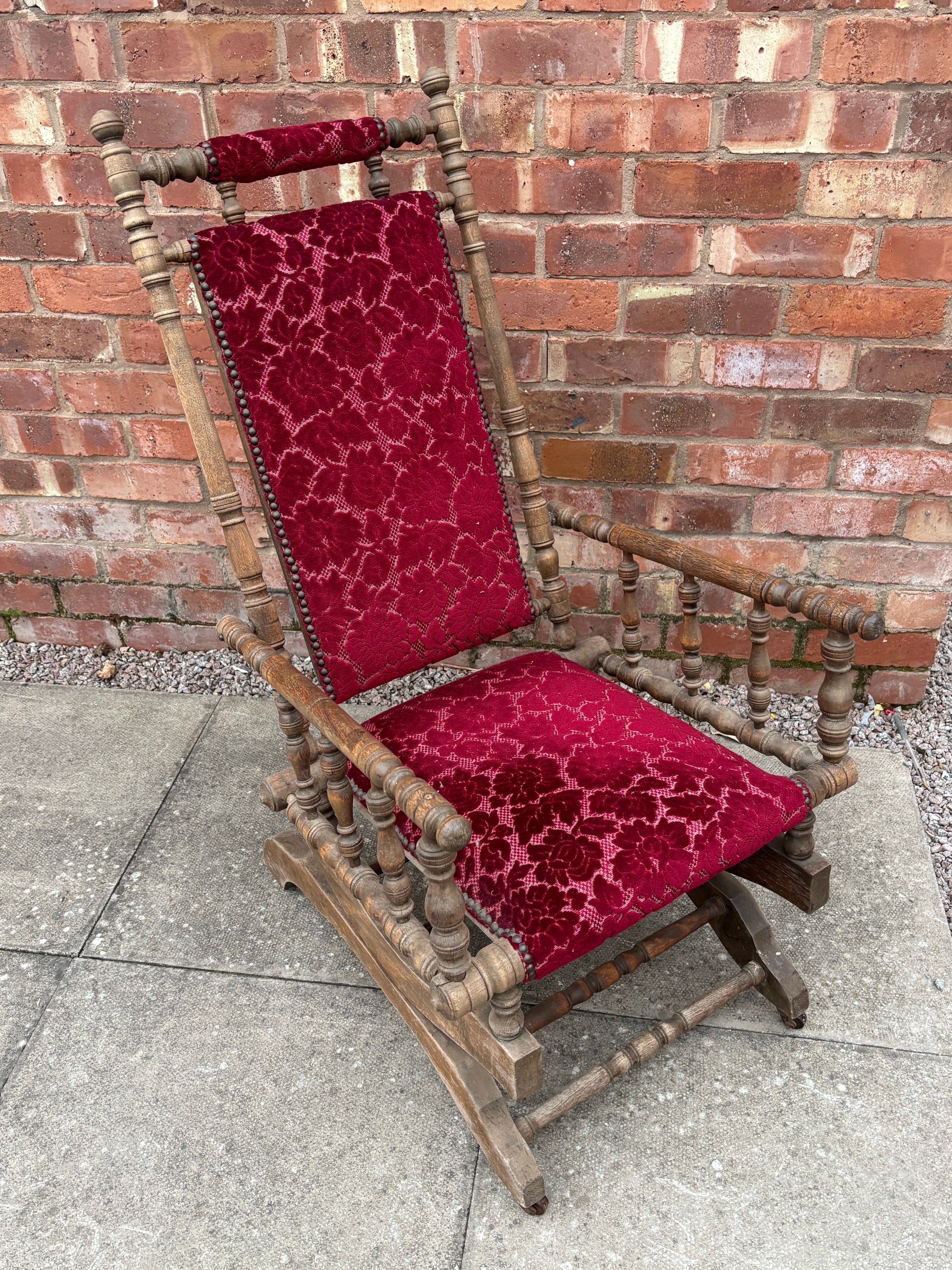 19TH CENTURY TURNED BEECH COLONIAL STYLE ROCKING ARMCHAIR
