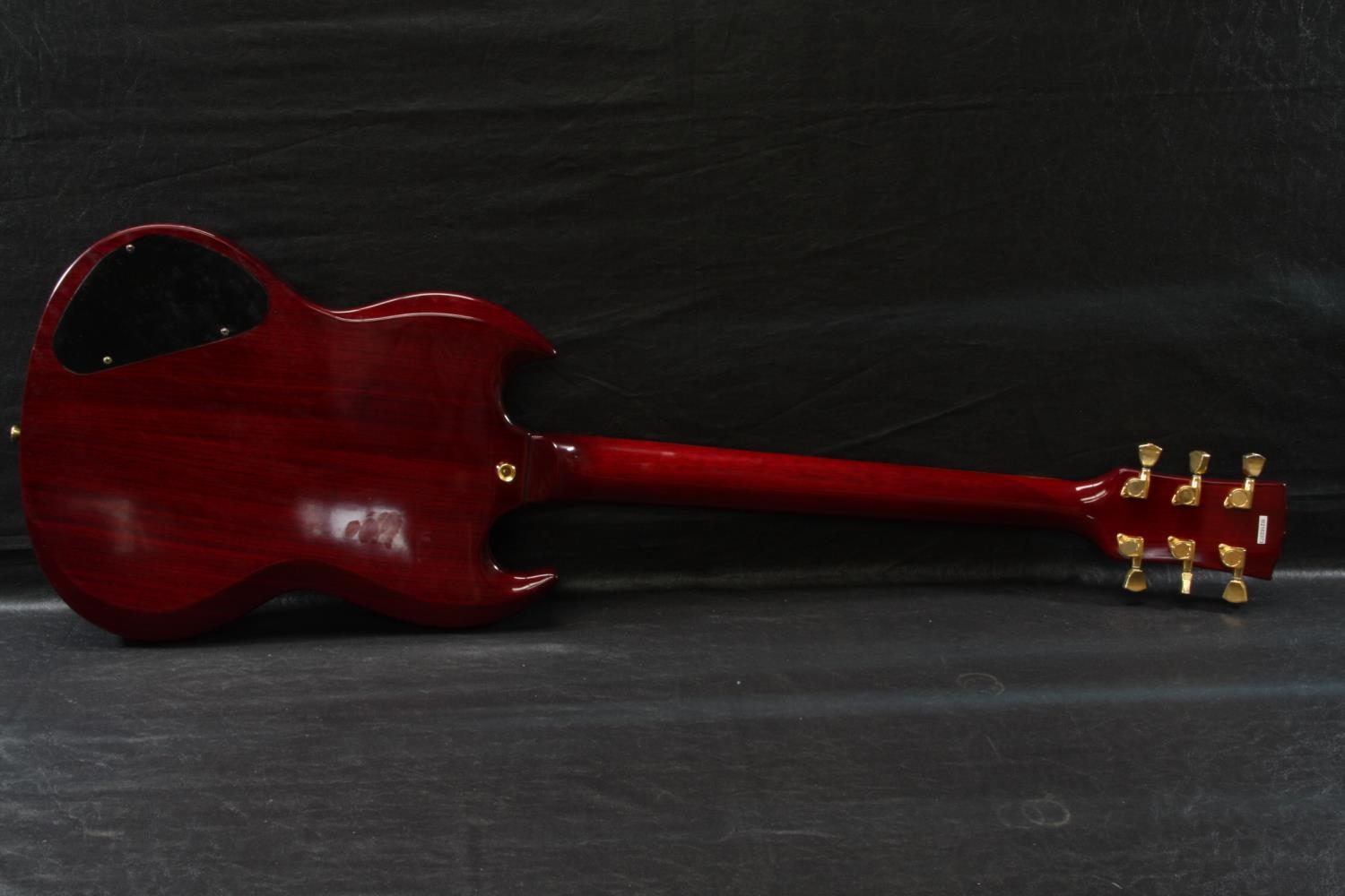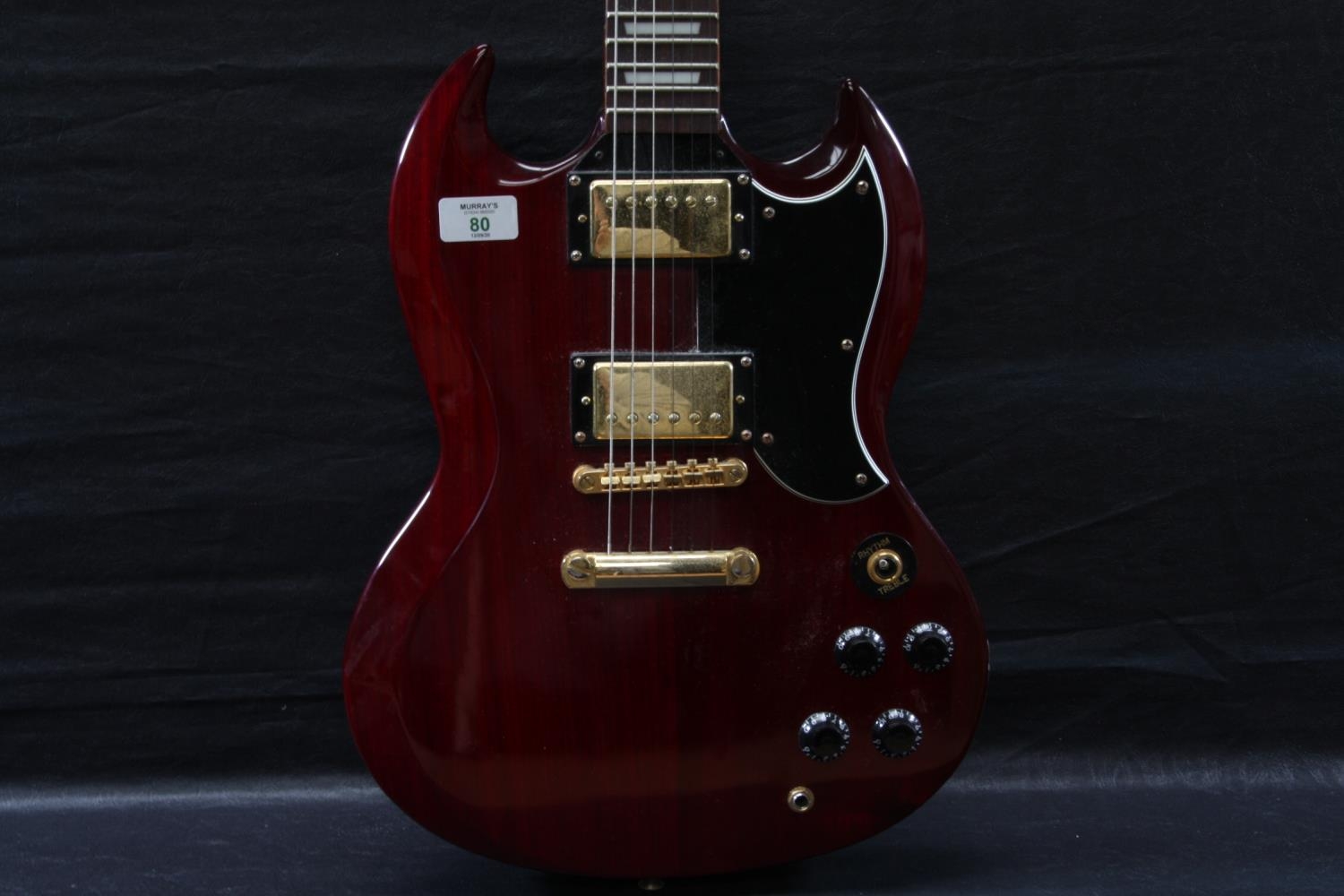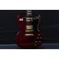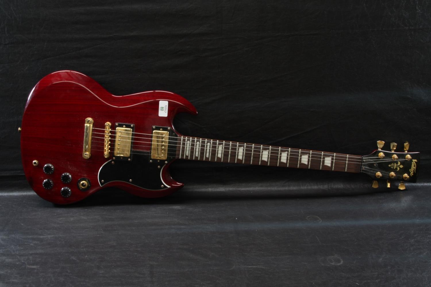 Vintage SG electric guitar, two humbucker pickups, three way toggle switch, four volume / tone pots and gold hardware