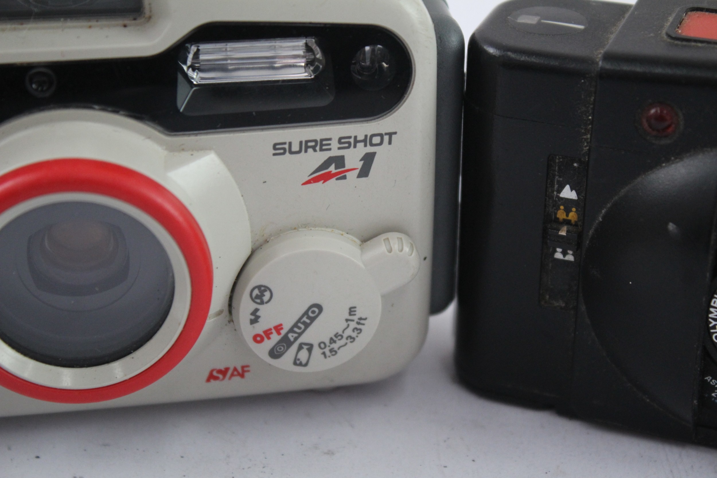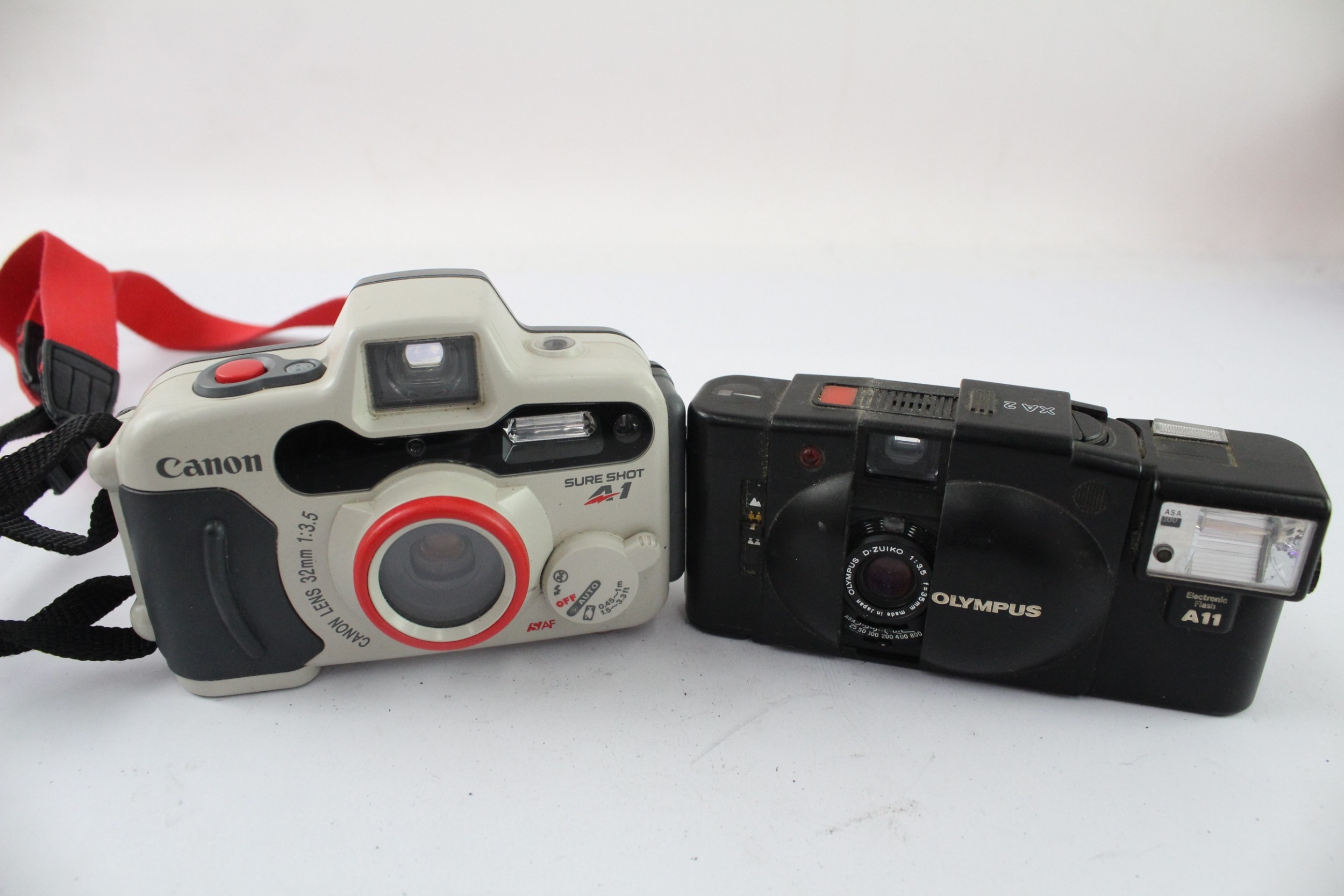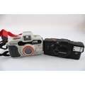 Two compact 35mm cameras, one Olympus XA2 viewfinder fitted with A11 flash and one Canon Sure Shot A-1 fully automatic underwater