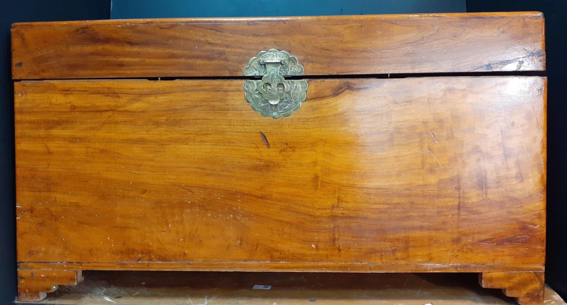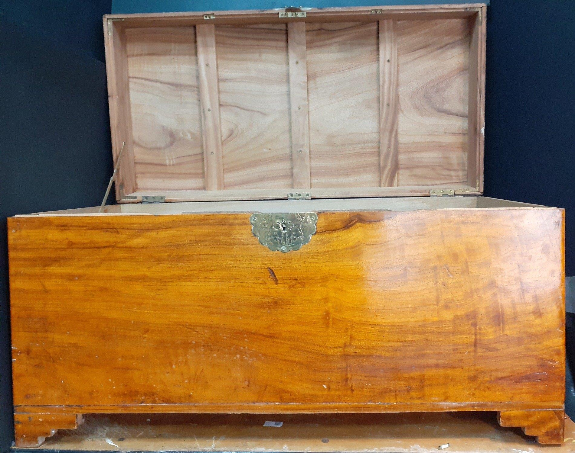 A quality hardwood storage chest with brass escutcheon.