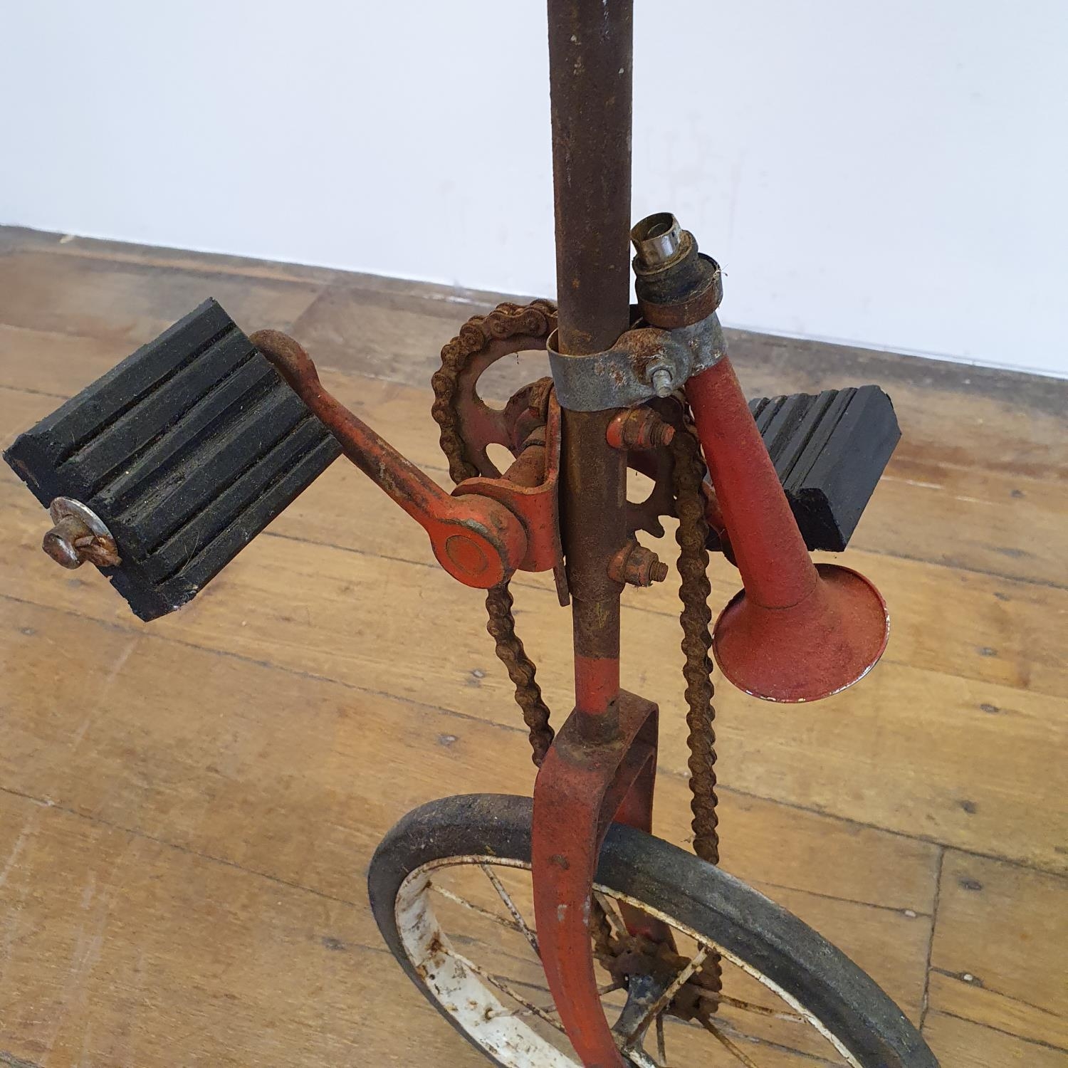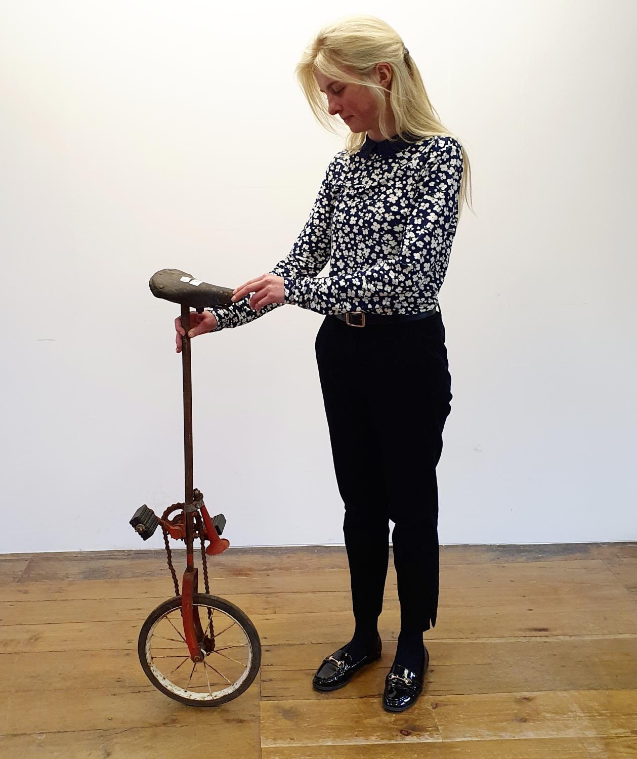 A red painted unicycle, probably 1960s