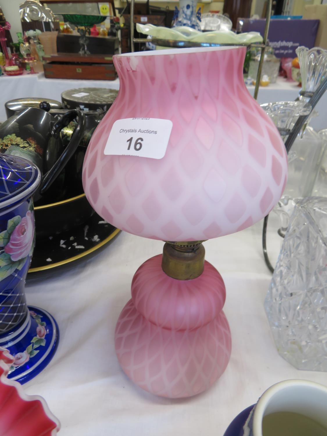 Queens glass with pink lattice decoration oil lamp
