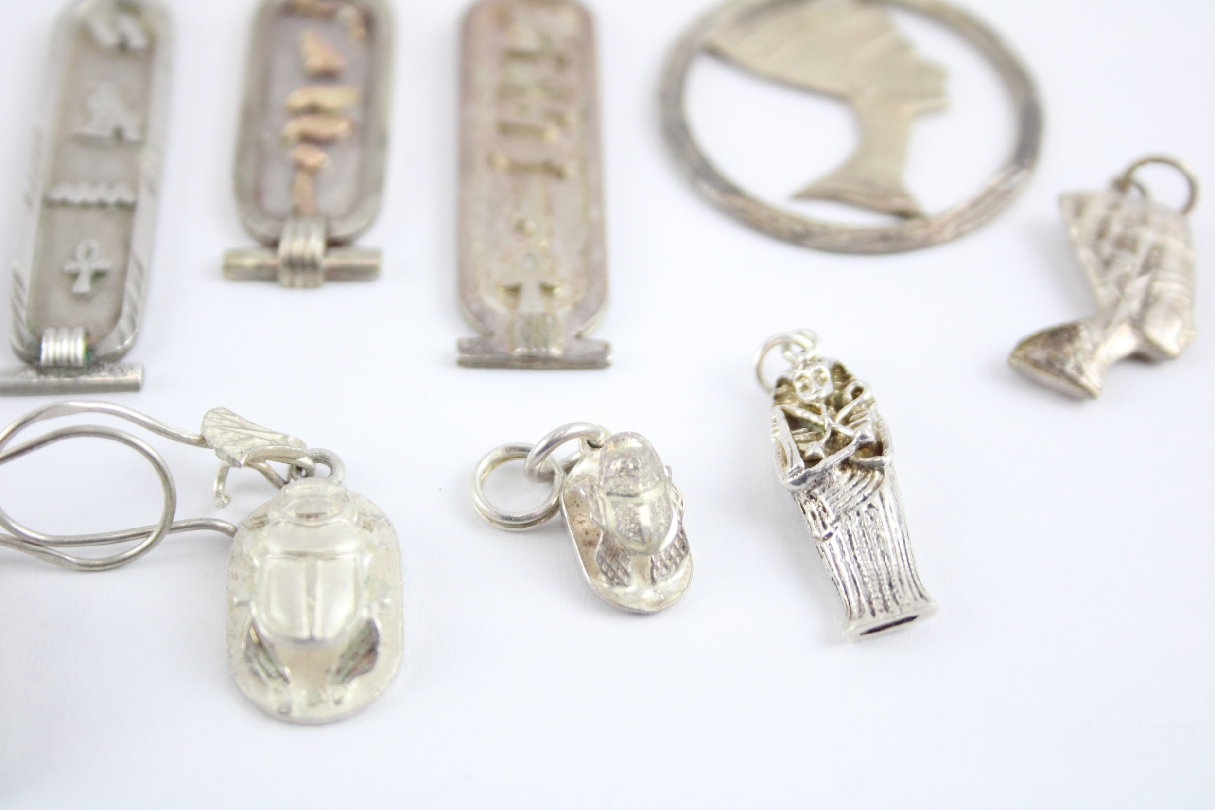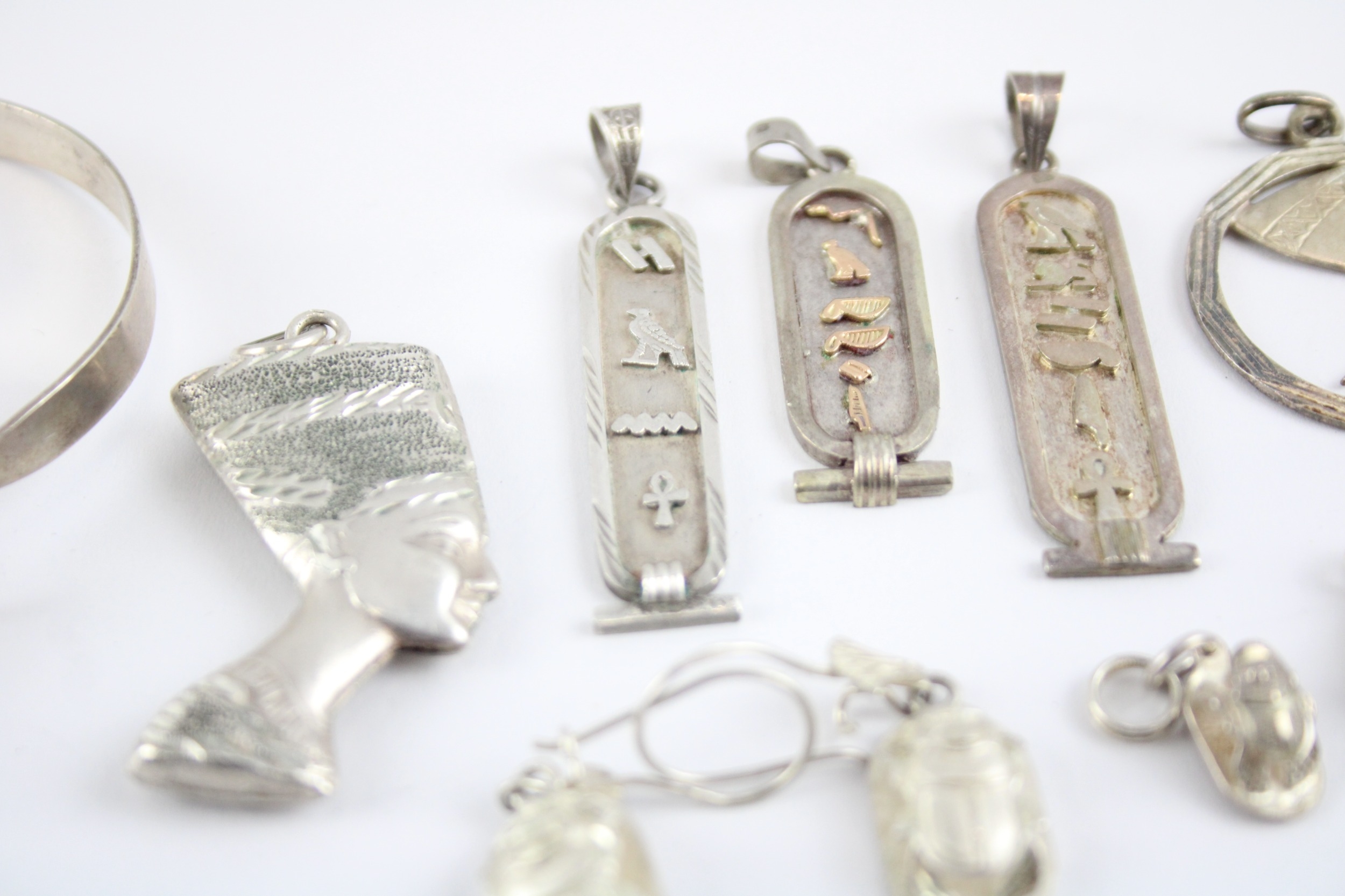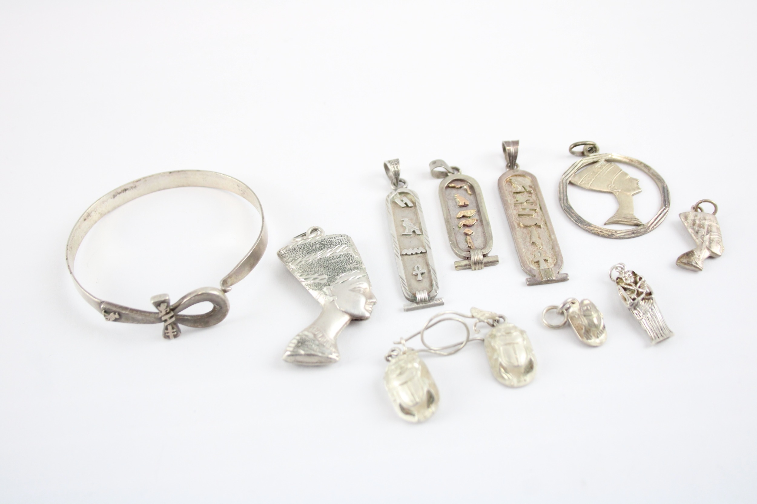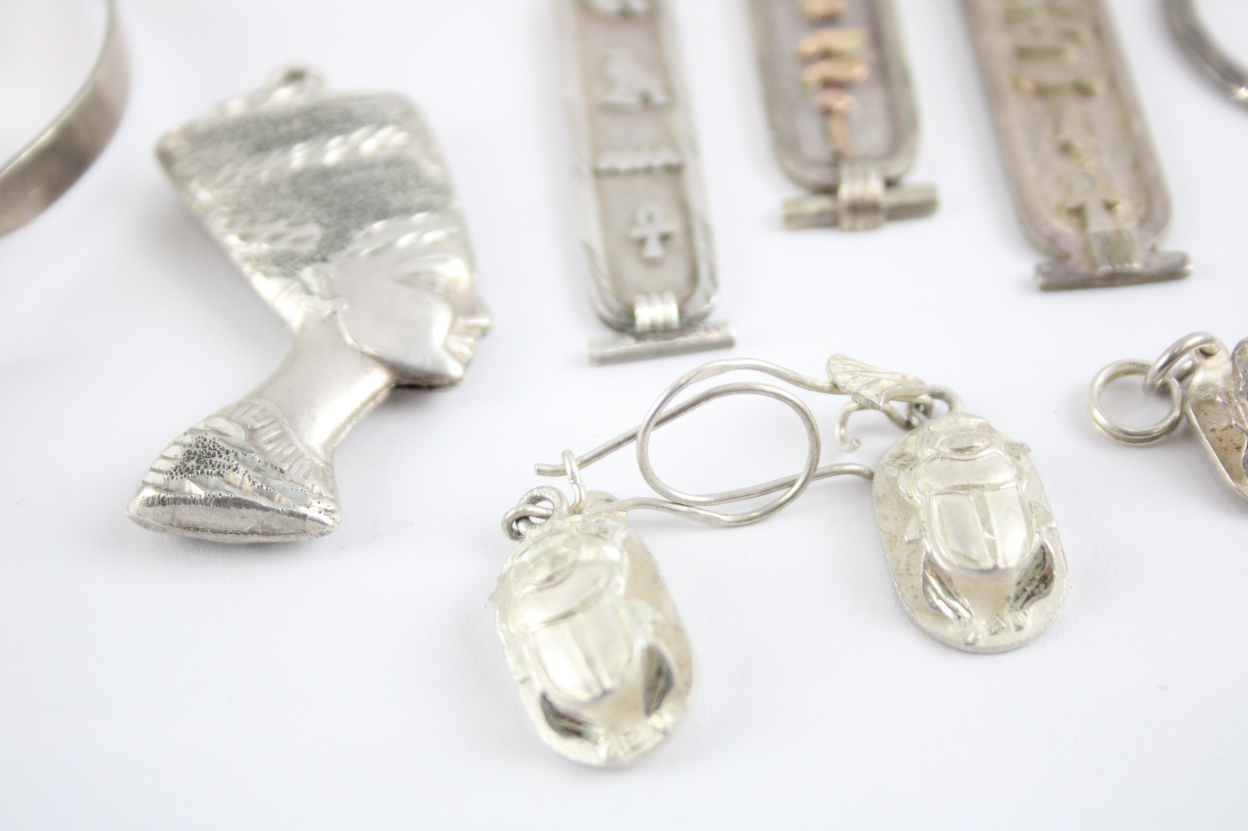Collection of Silver Egyptian Revival Jewellery, inc. Hieroglyphs, Scarab x 10 (61g)