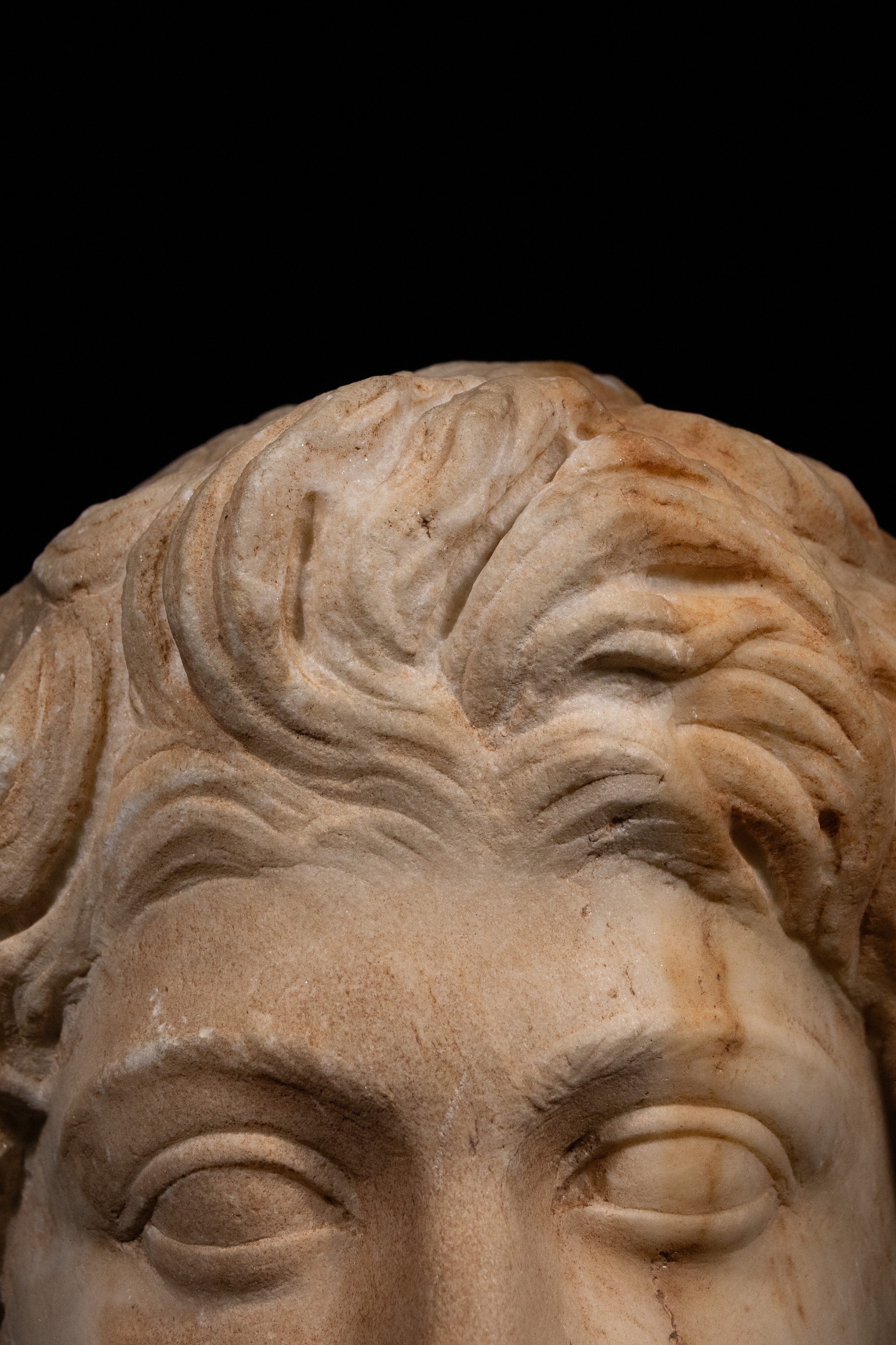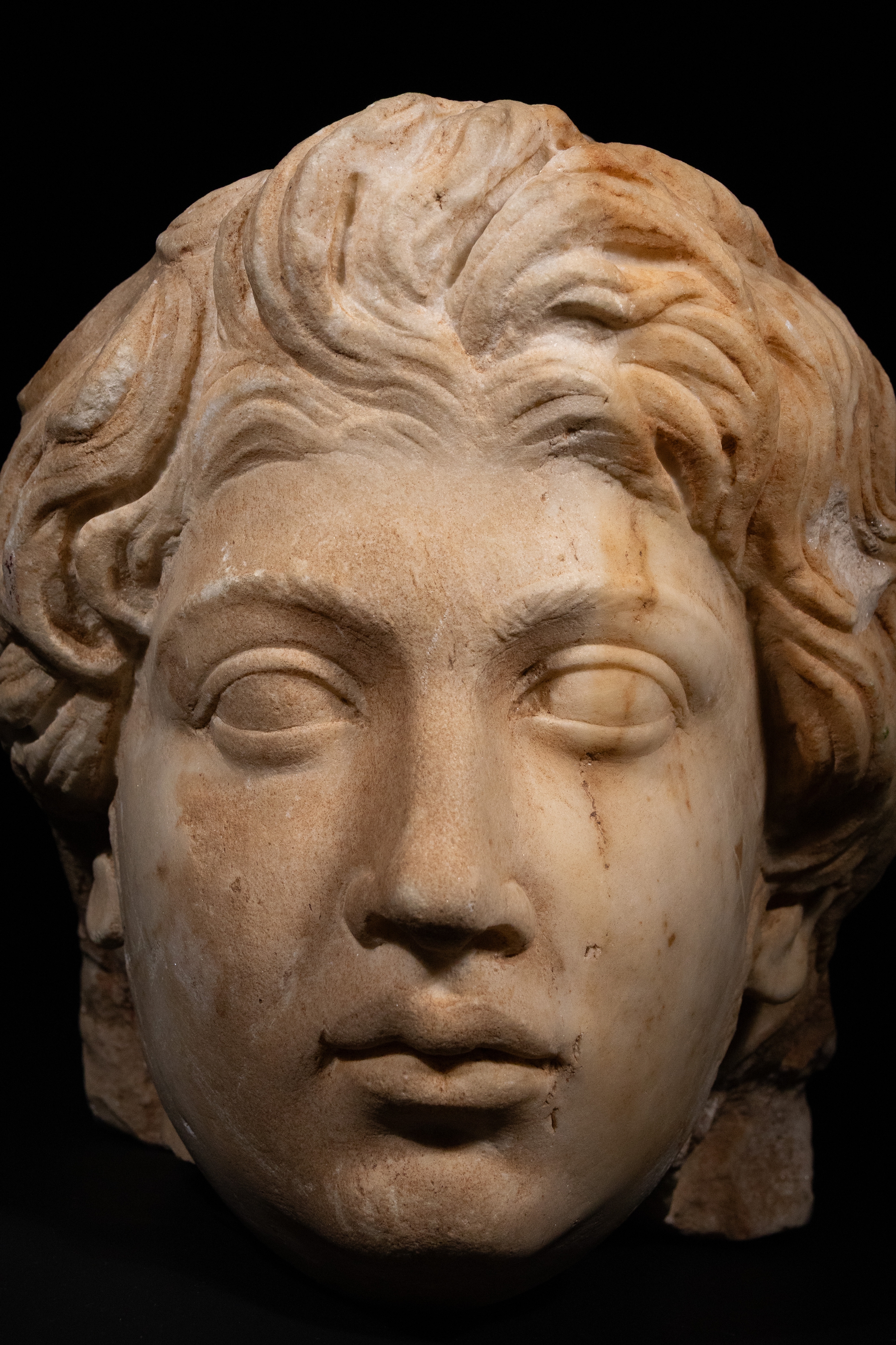 A Roman Marble Head Depicting Antinous, 2nd Century AD.