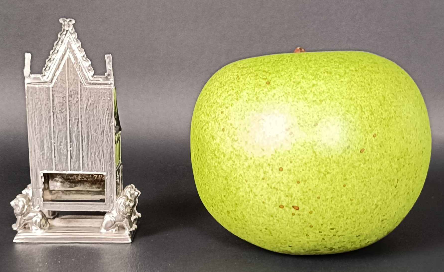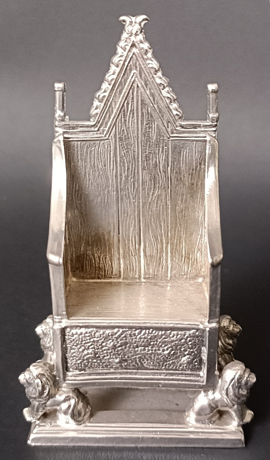 An Elizabeth II silver novelty model of a throne, 1.2 ozt, 7 cm high
