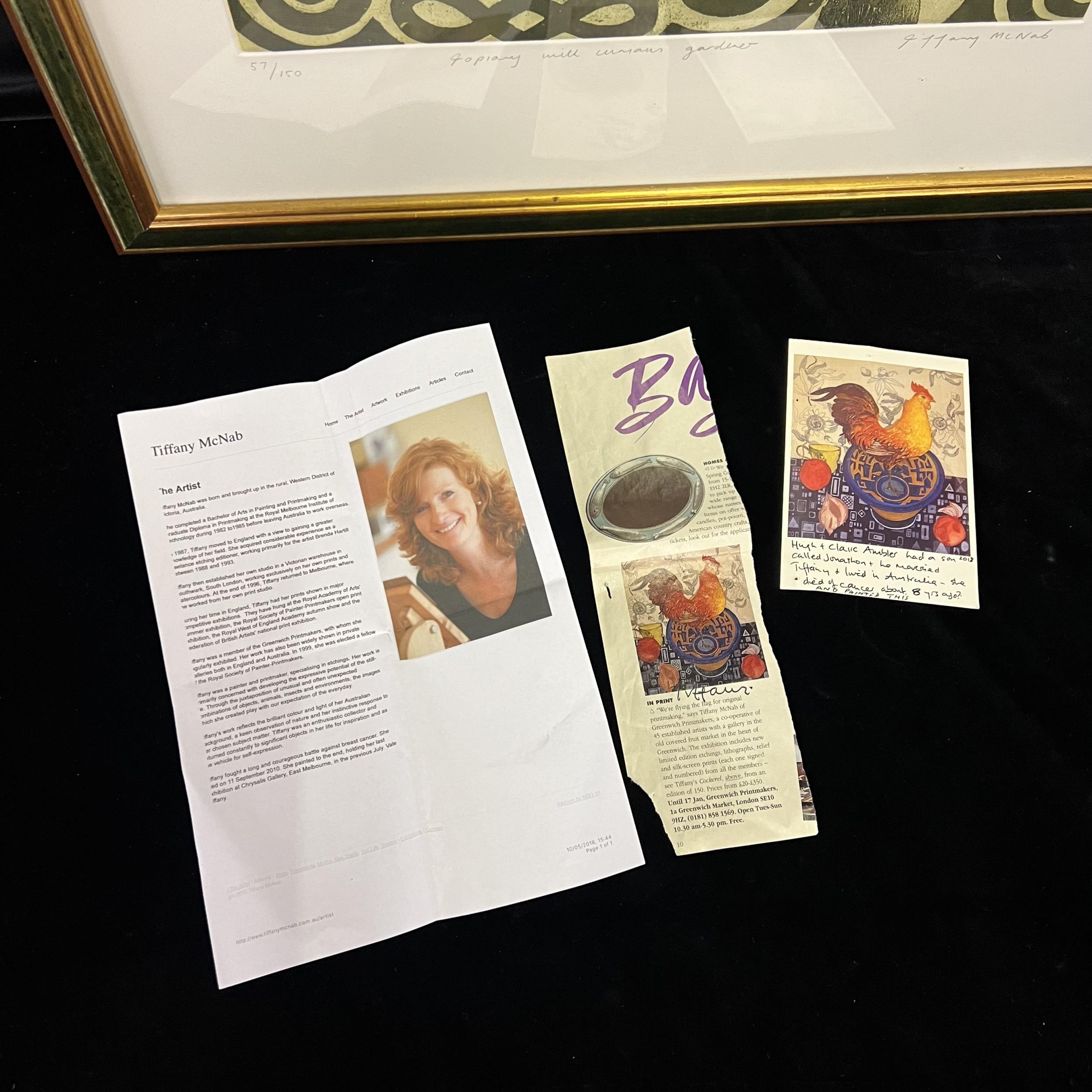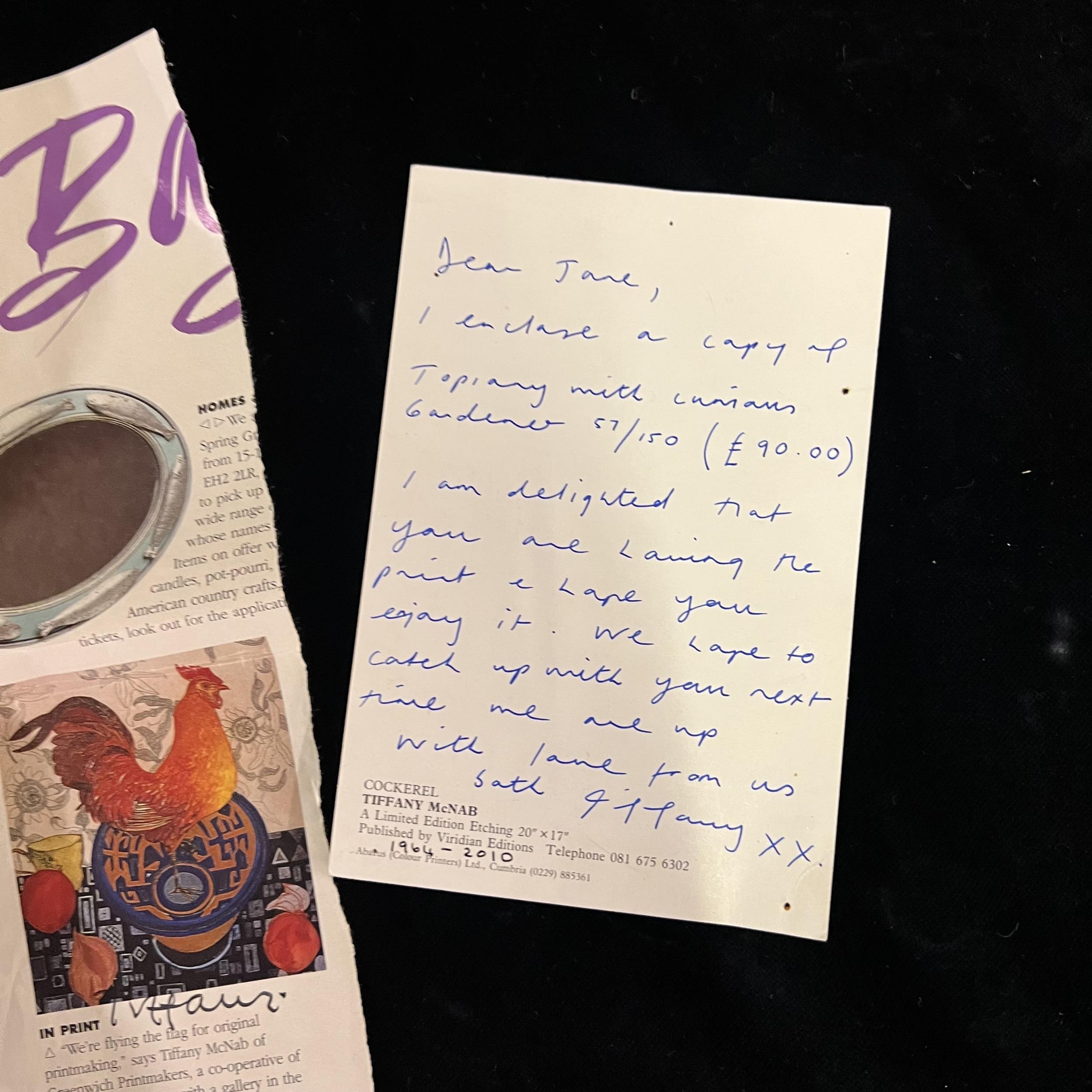Limited Edition Print titled “Topiary with Curian Gardner 57/150 by Tiffany McNab with signed postcard from artist