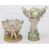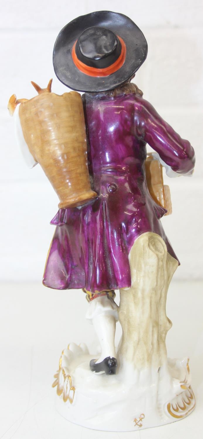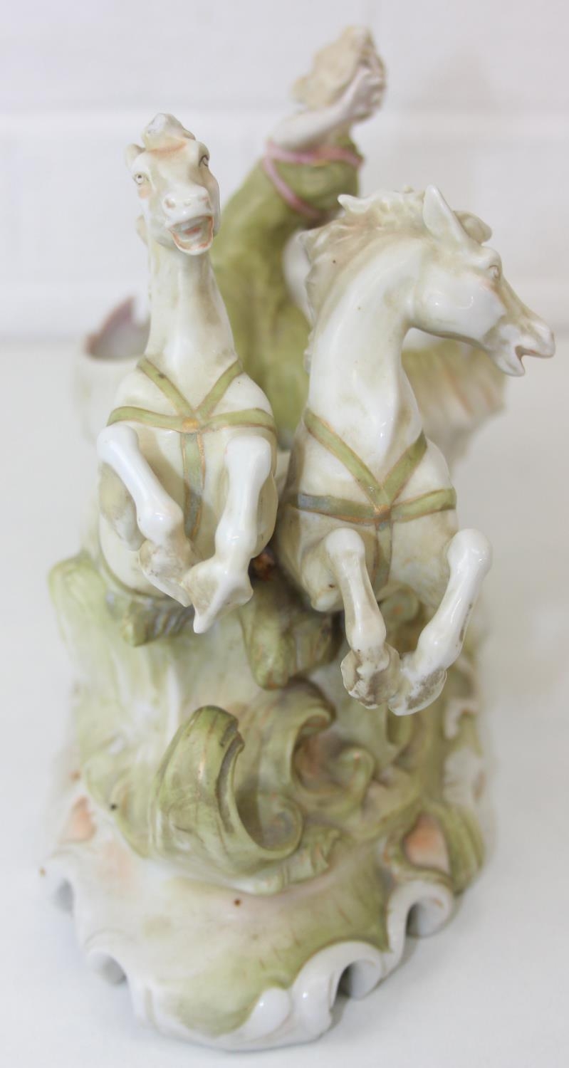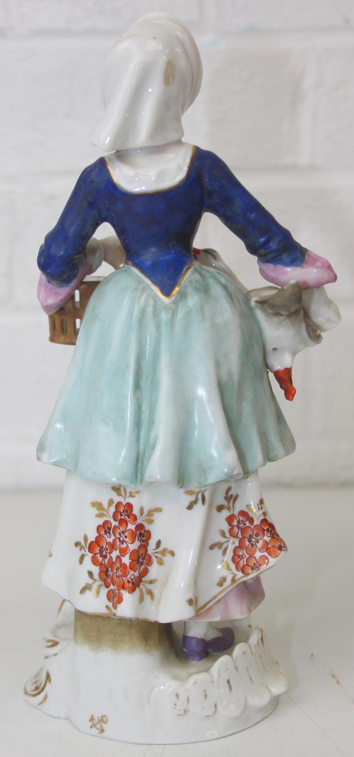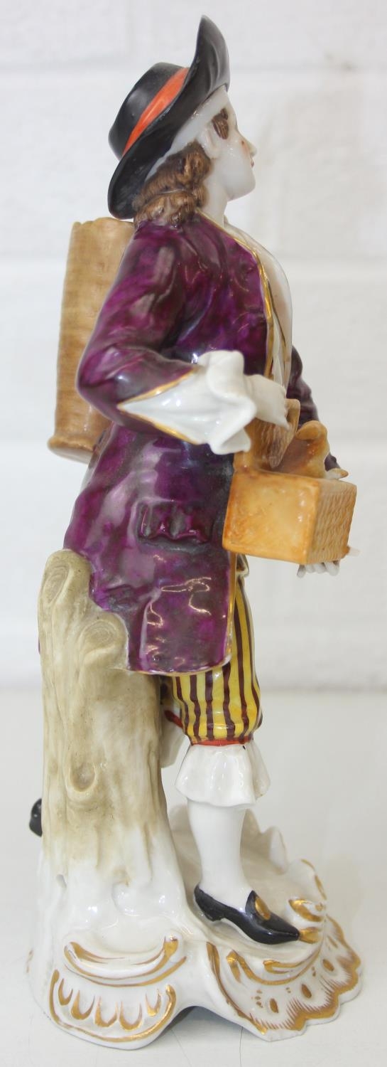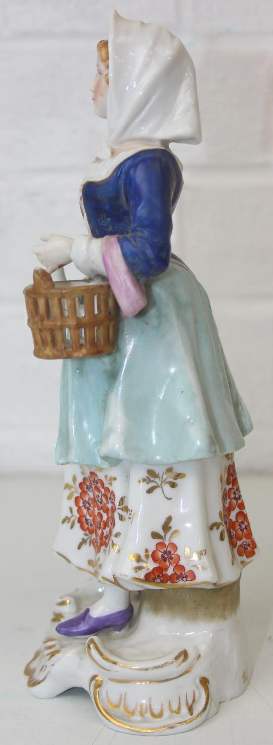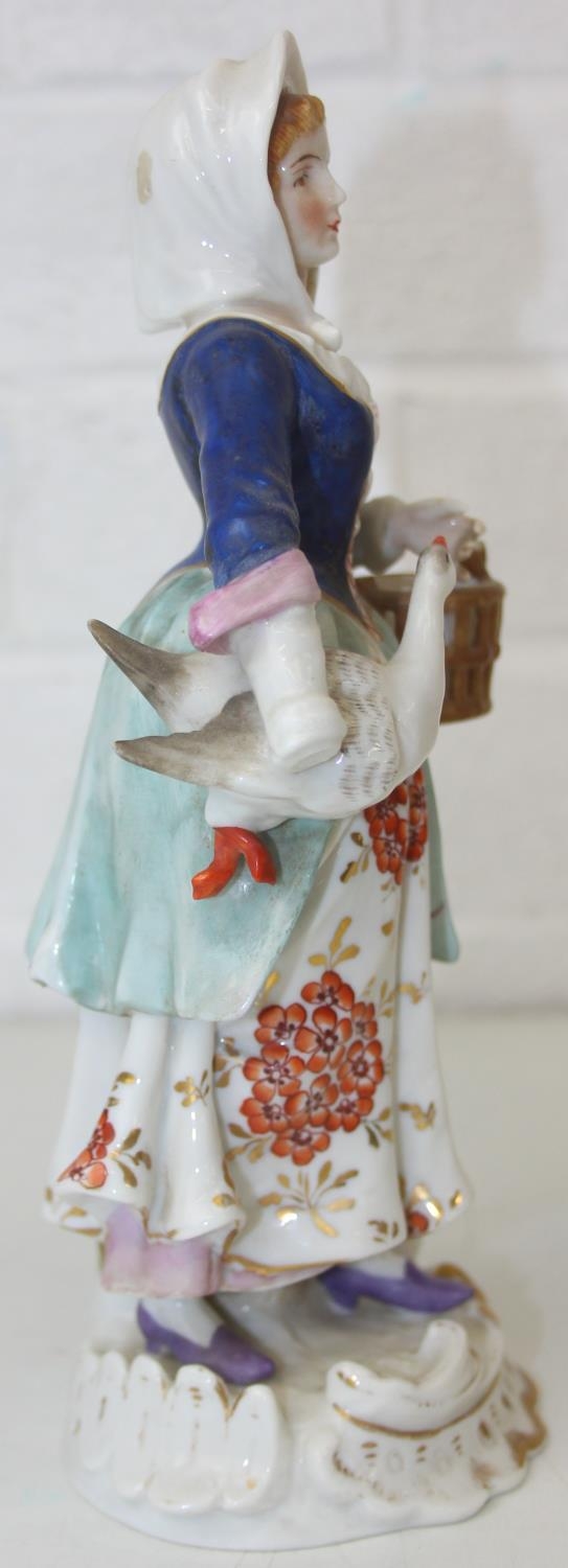 Three assorted antique porcelain figures, to inc a woman with horses and two figurines, all likely Continental, the two figures possibly Sitzendorf but bearing a Chelsea style gold anchor mark, the largest 25cm tall [3]