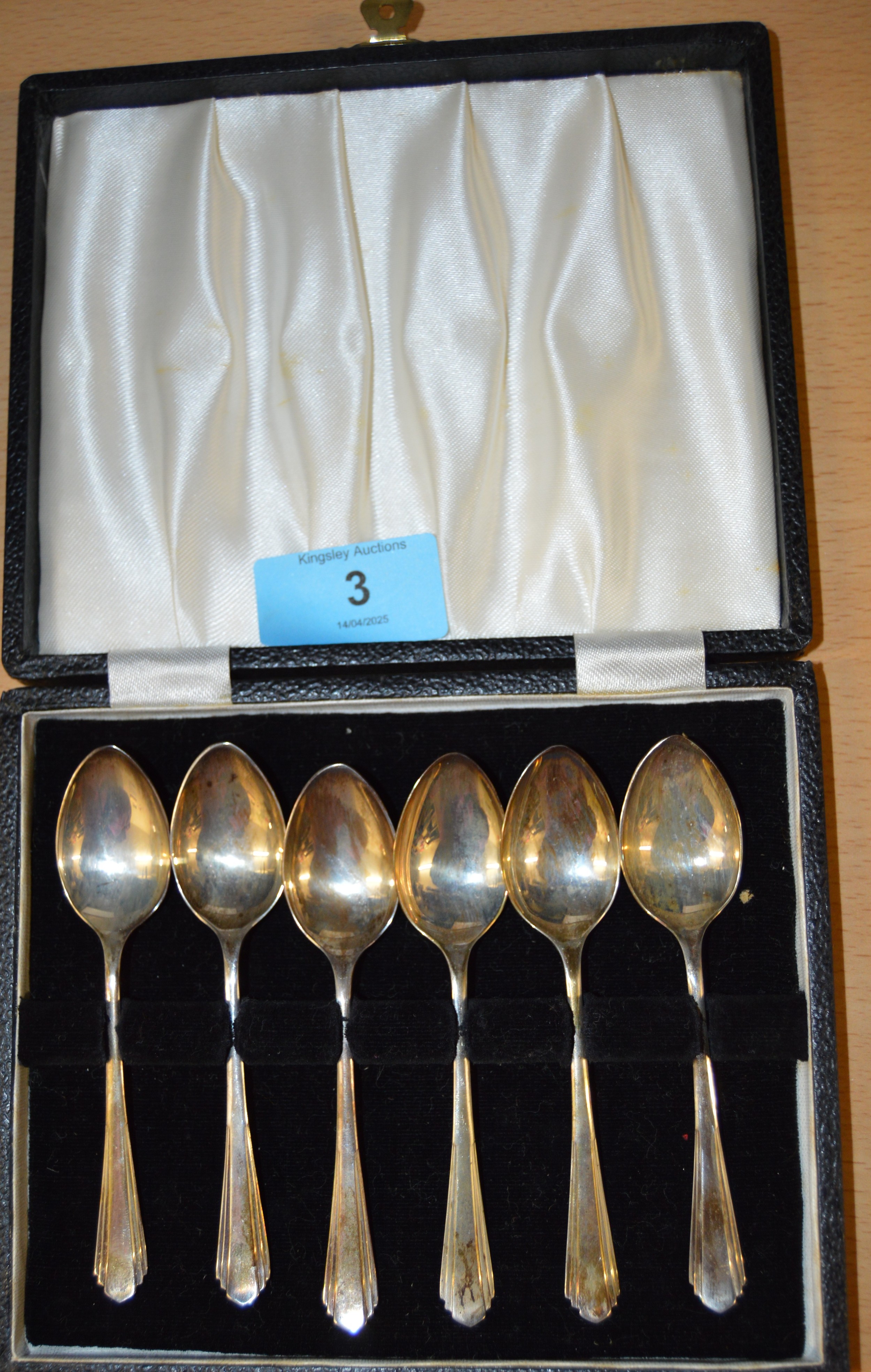 Cased Set of Six Silver Teaspoons. Sheffield Hallmark 1924. Weight 73 grams