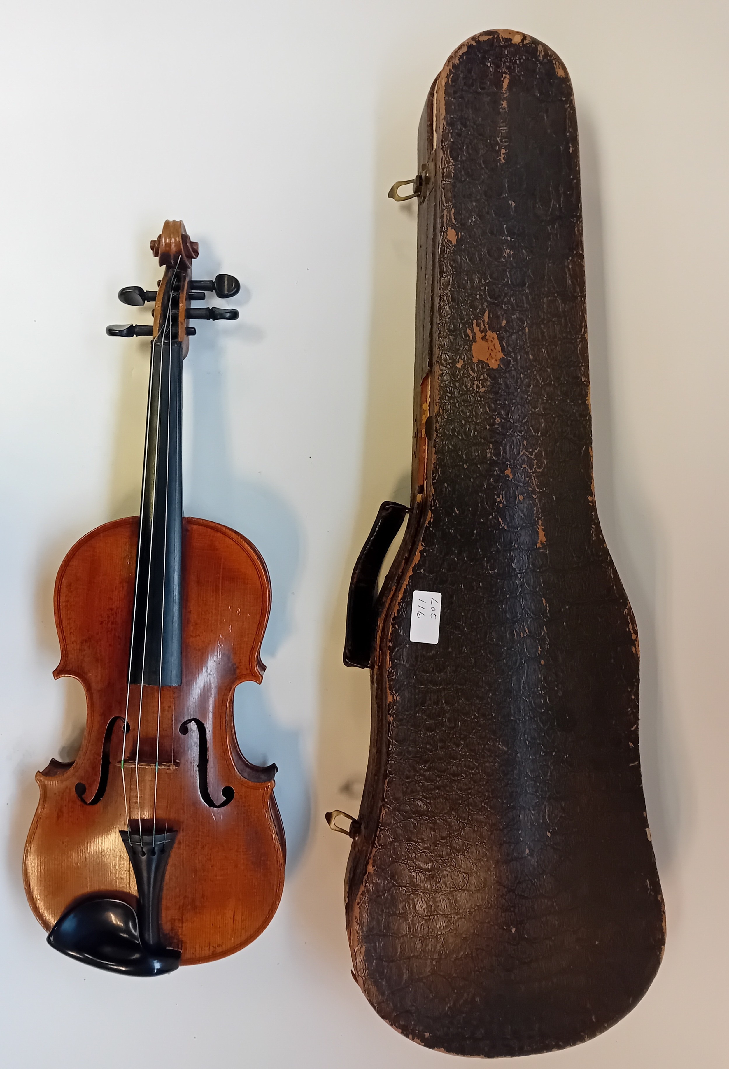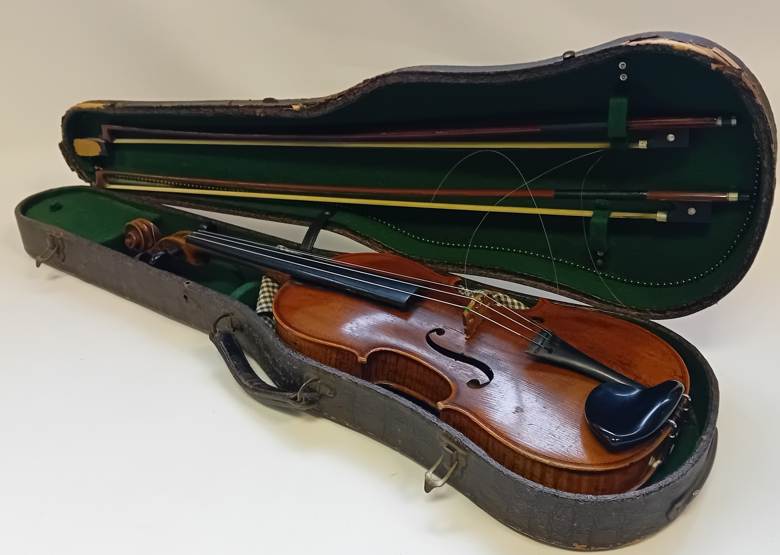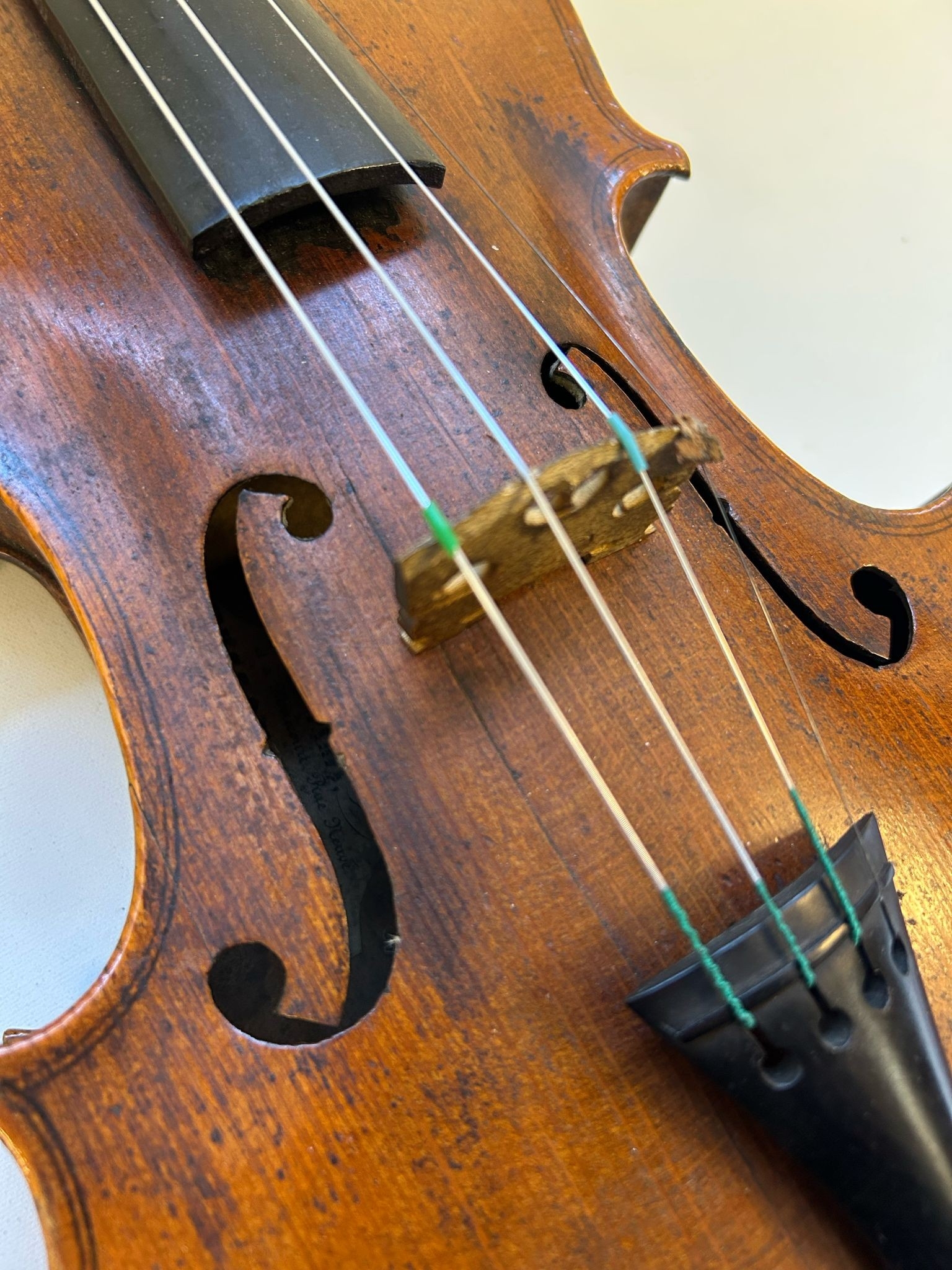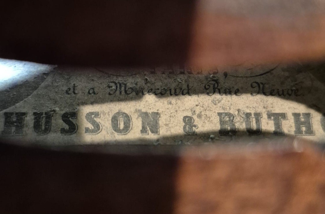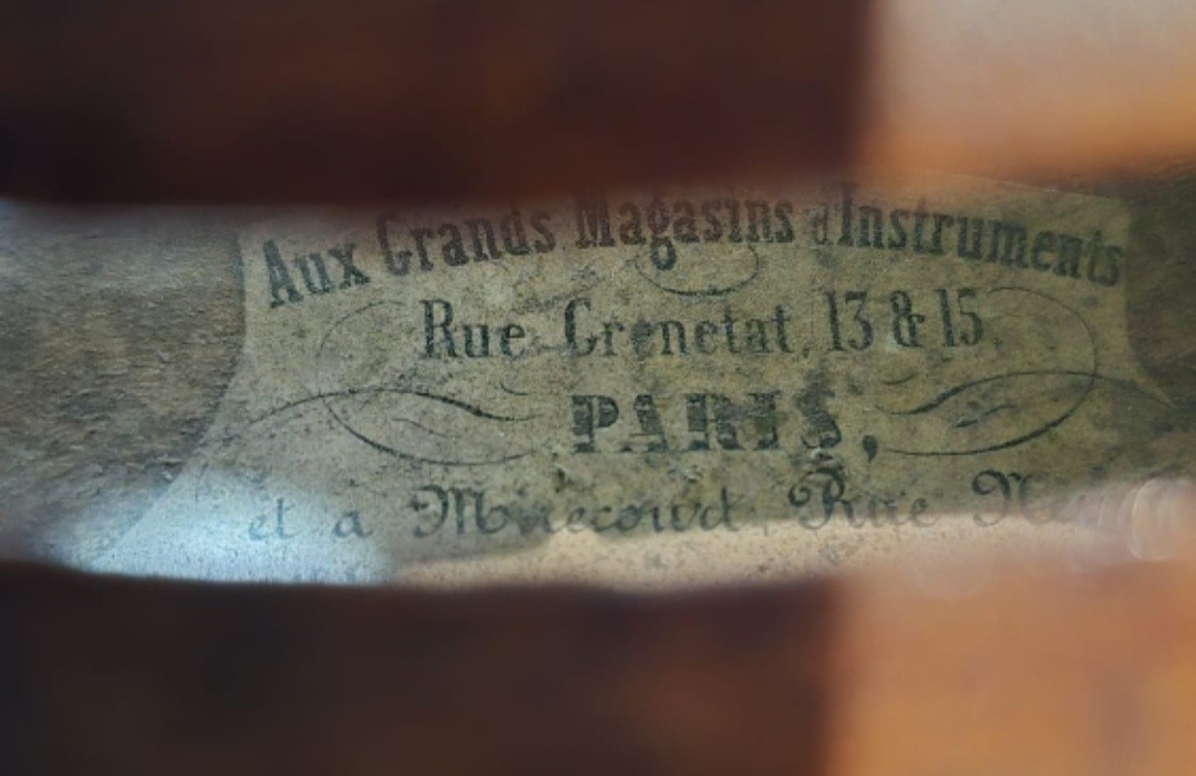 Husson & Buthod Violin label marked to the interior ''Aux Grands Magasins Instruments'', Dated 13.8.15 Paris.