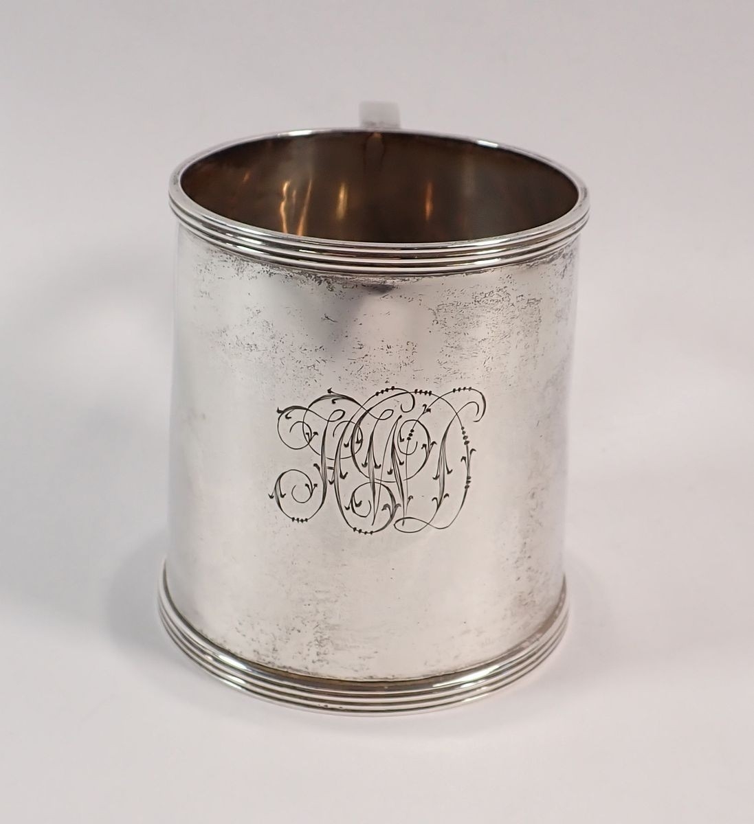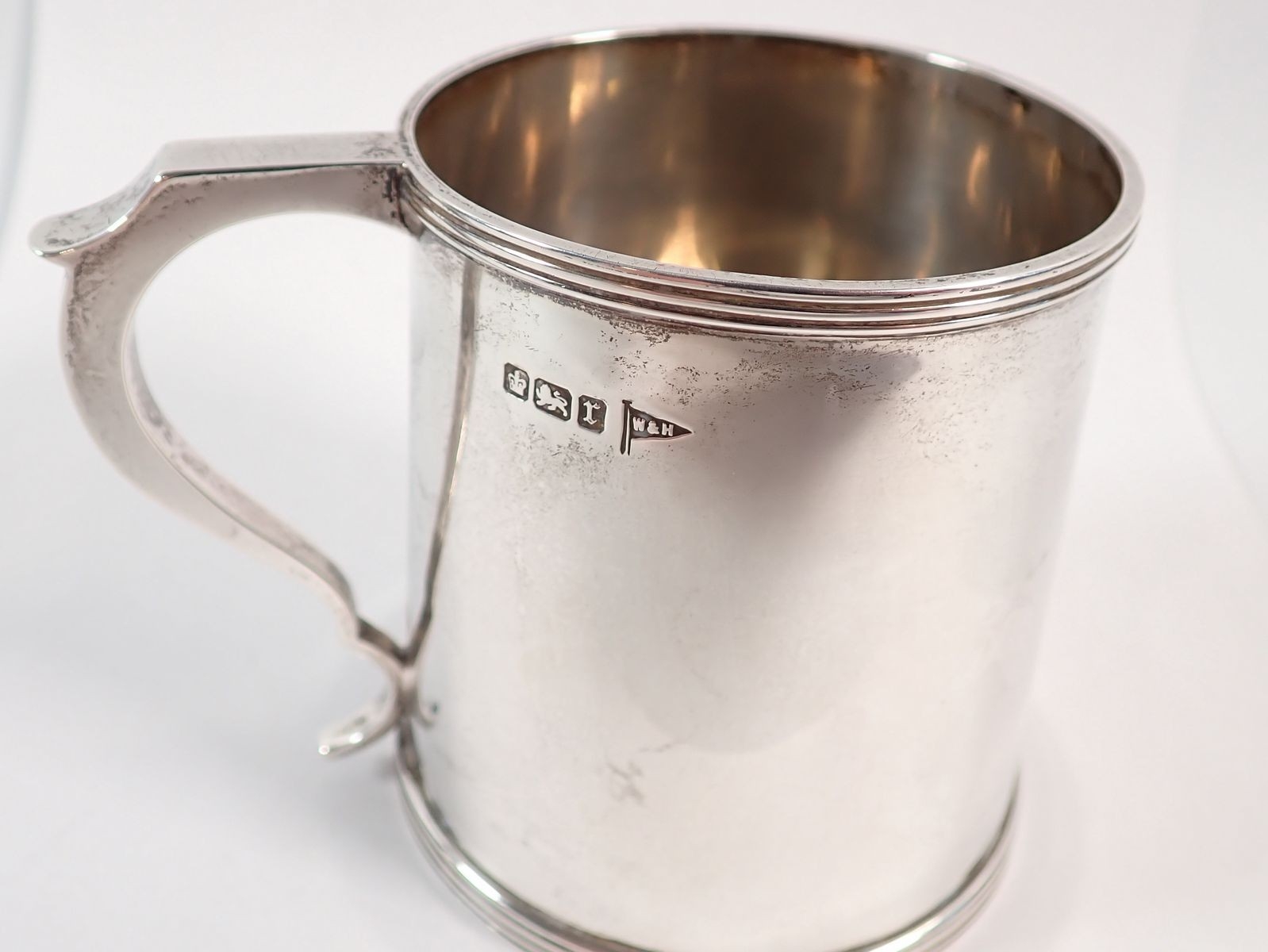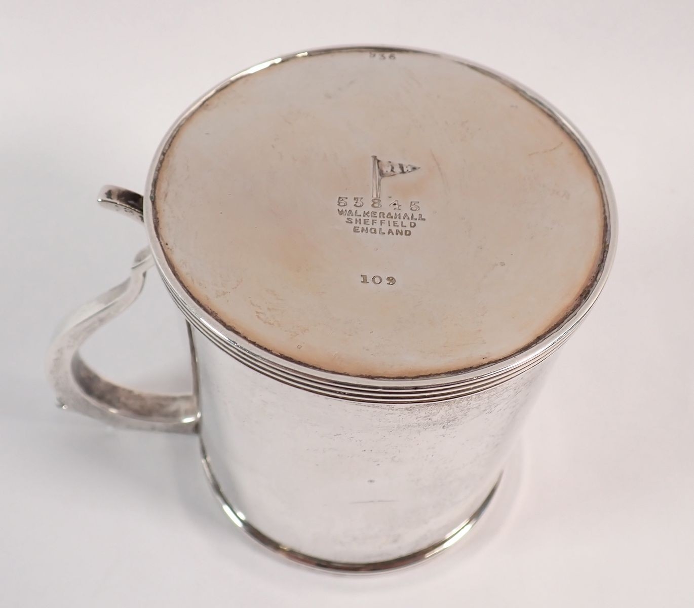 A silver small tankard engraved monogram by Walker & Hall, S...
