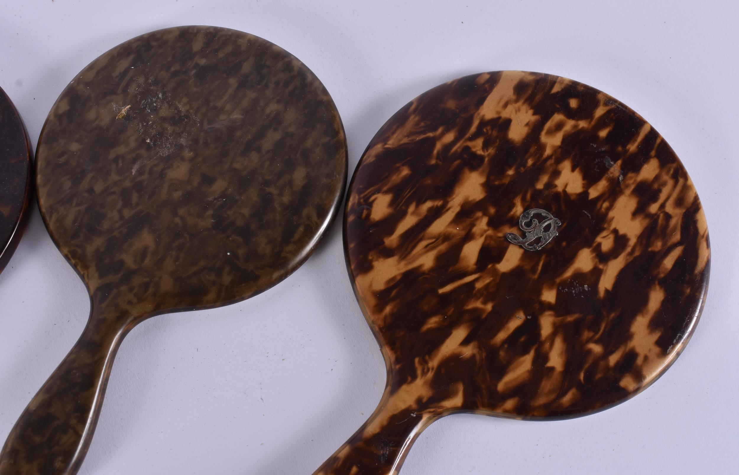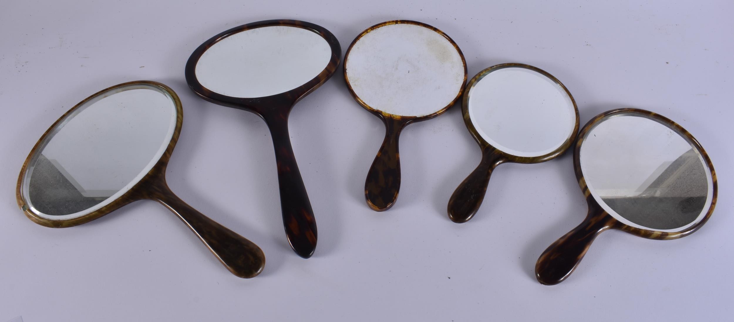 FIVE VINTAGE FAUX TORTOISESHELL VANITY MIRRORS. 34 cm long. (5)