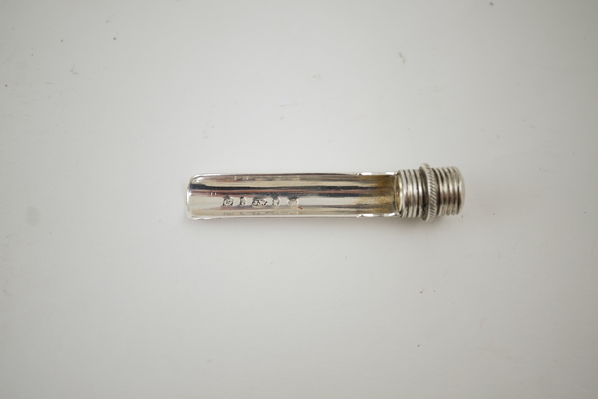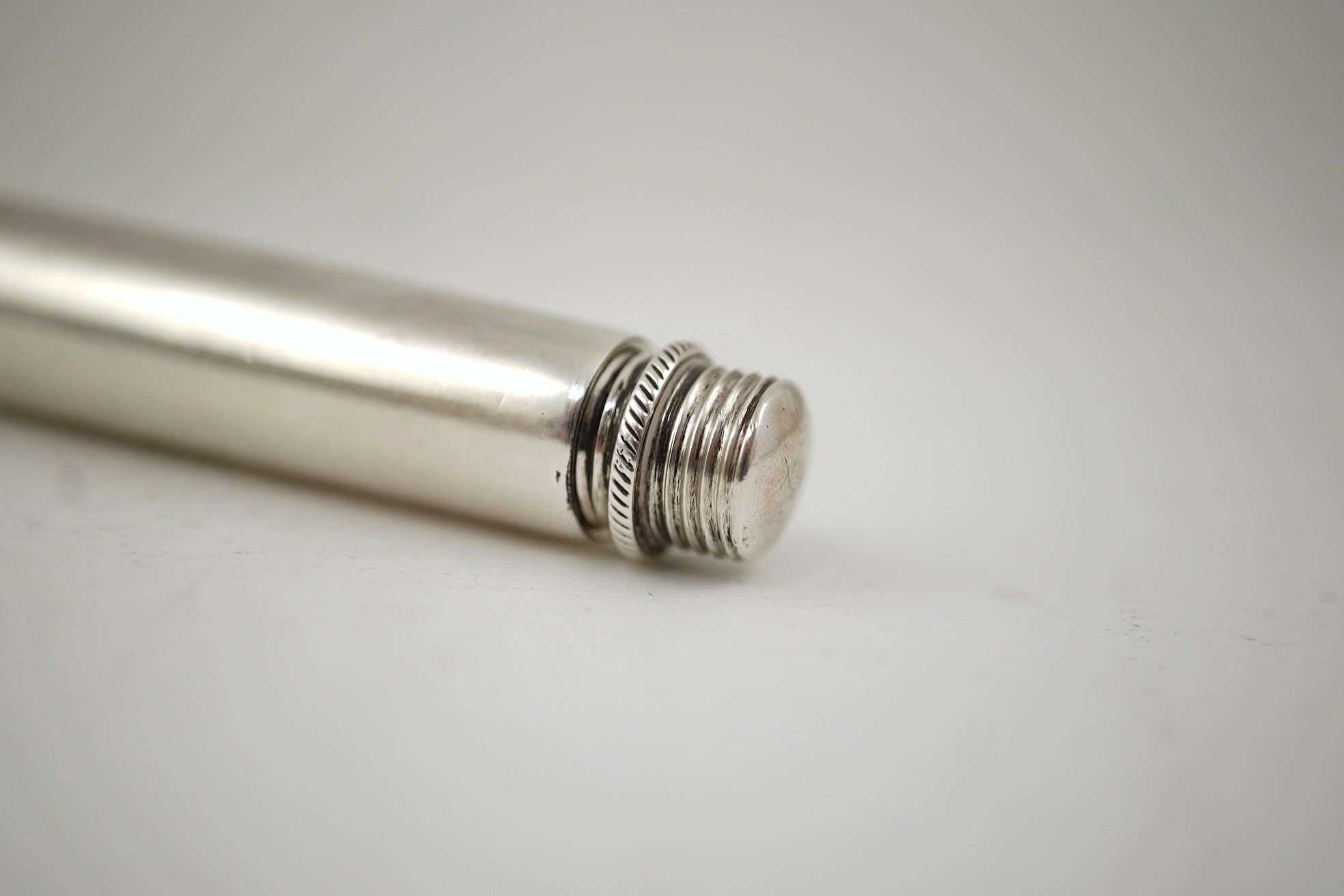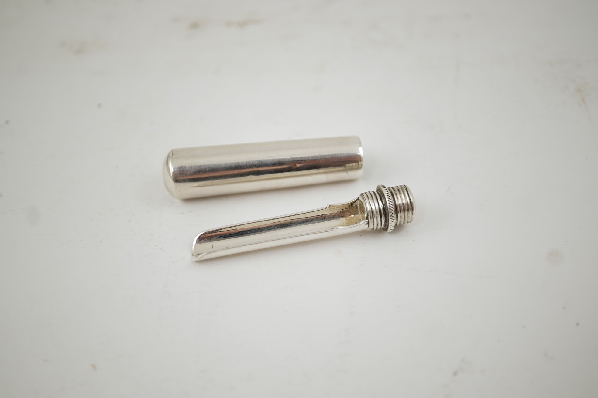 An early Victorian silver travelling apple corer, by Joseph Wilmore, Birmingham, 1839, cased 6cm.