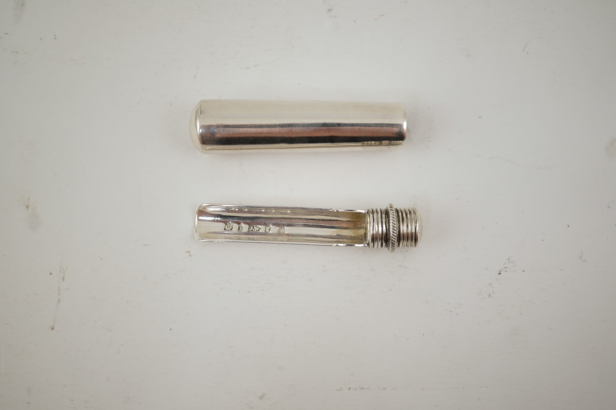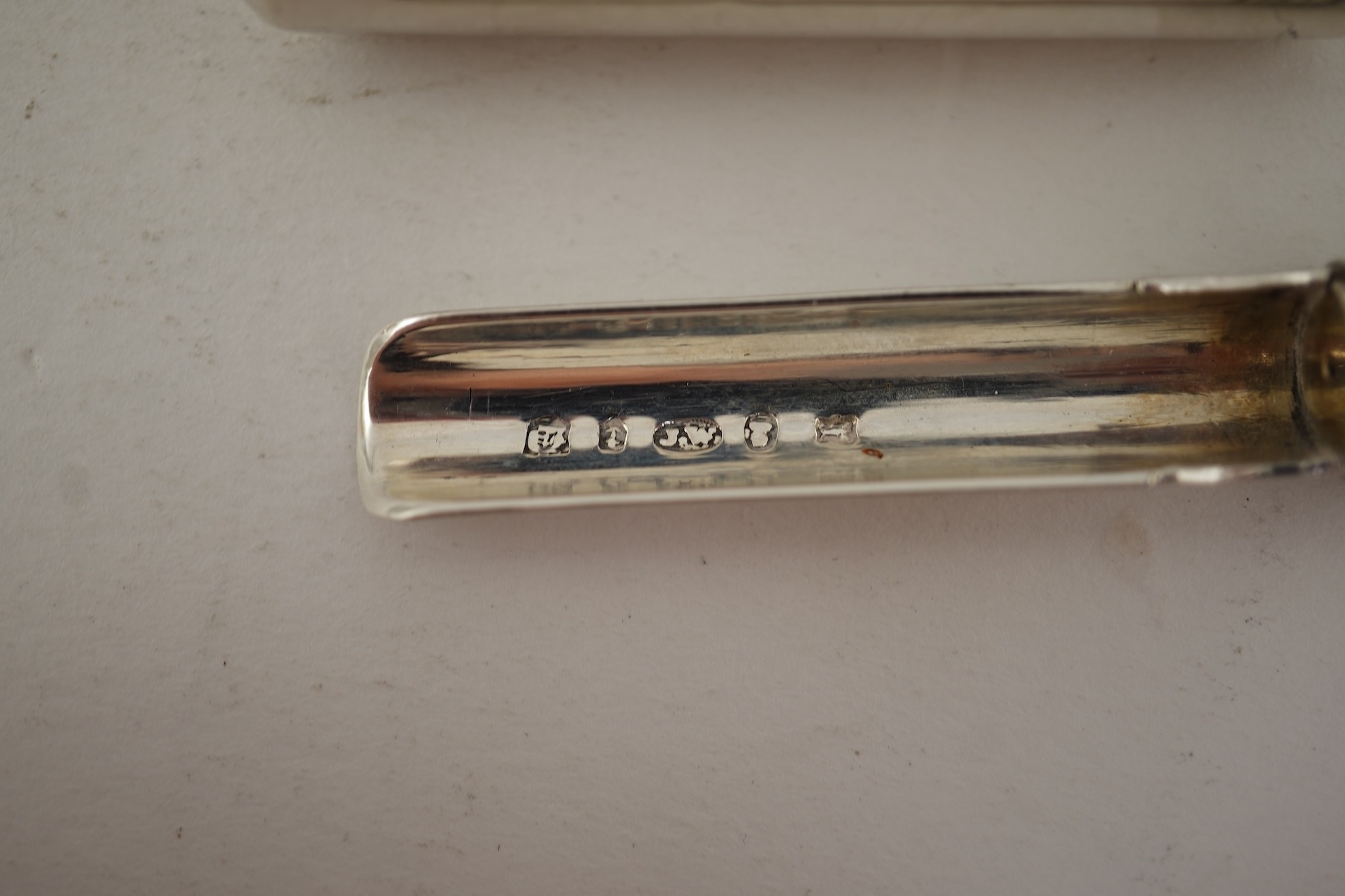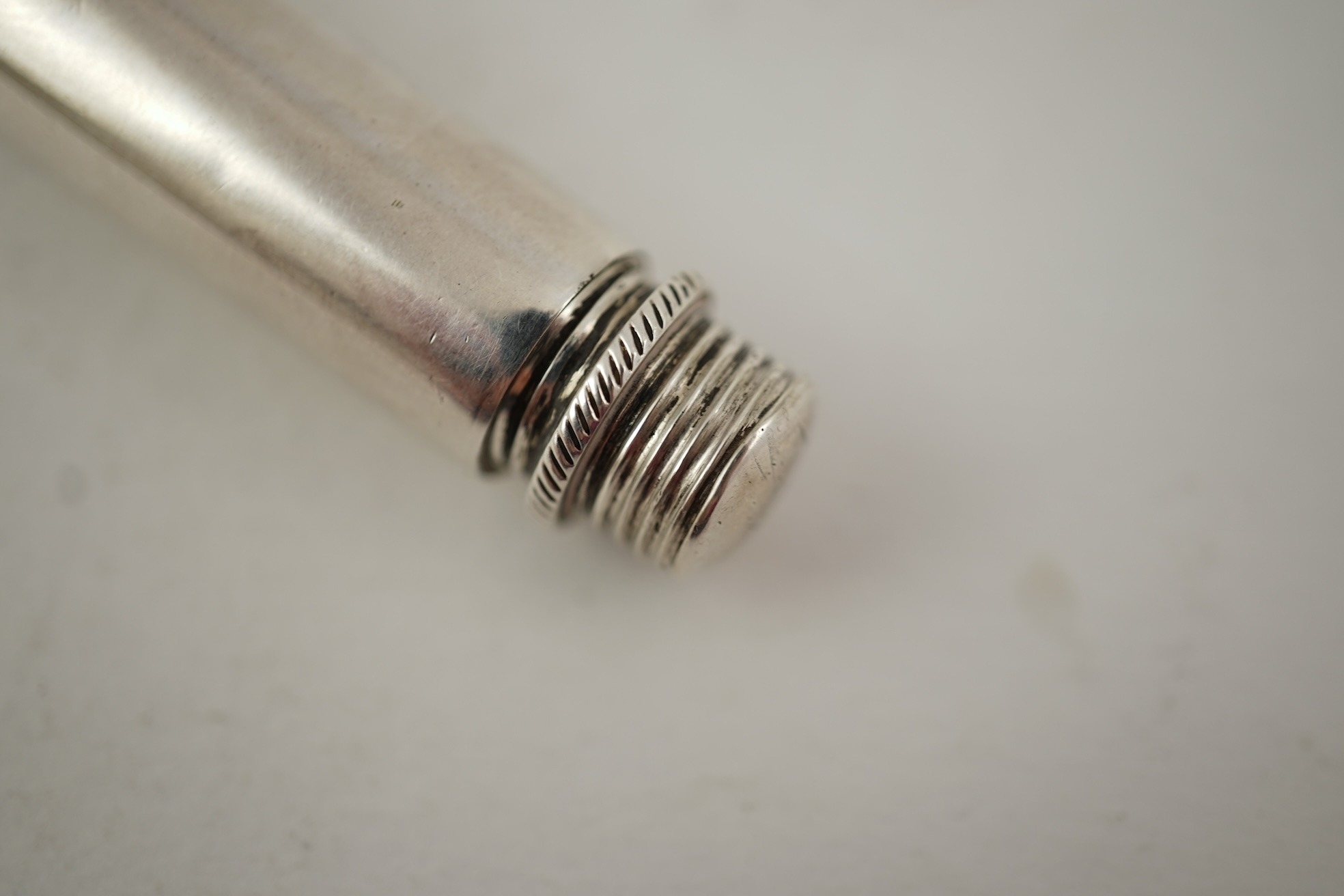An early Victorian silver travelling apple corer, by Joseph Wilmore, Birmingham, 1839, cased 6cm.