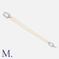 CARTIER. A Chandra Pearl and Diamond Collar in 18K white gol...
